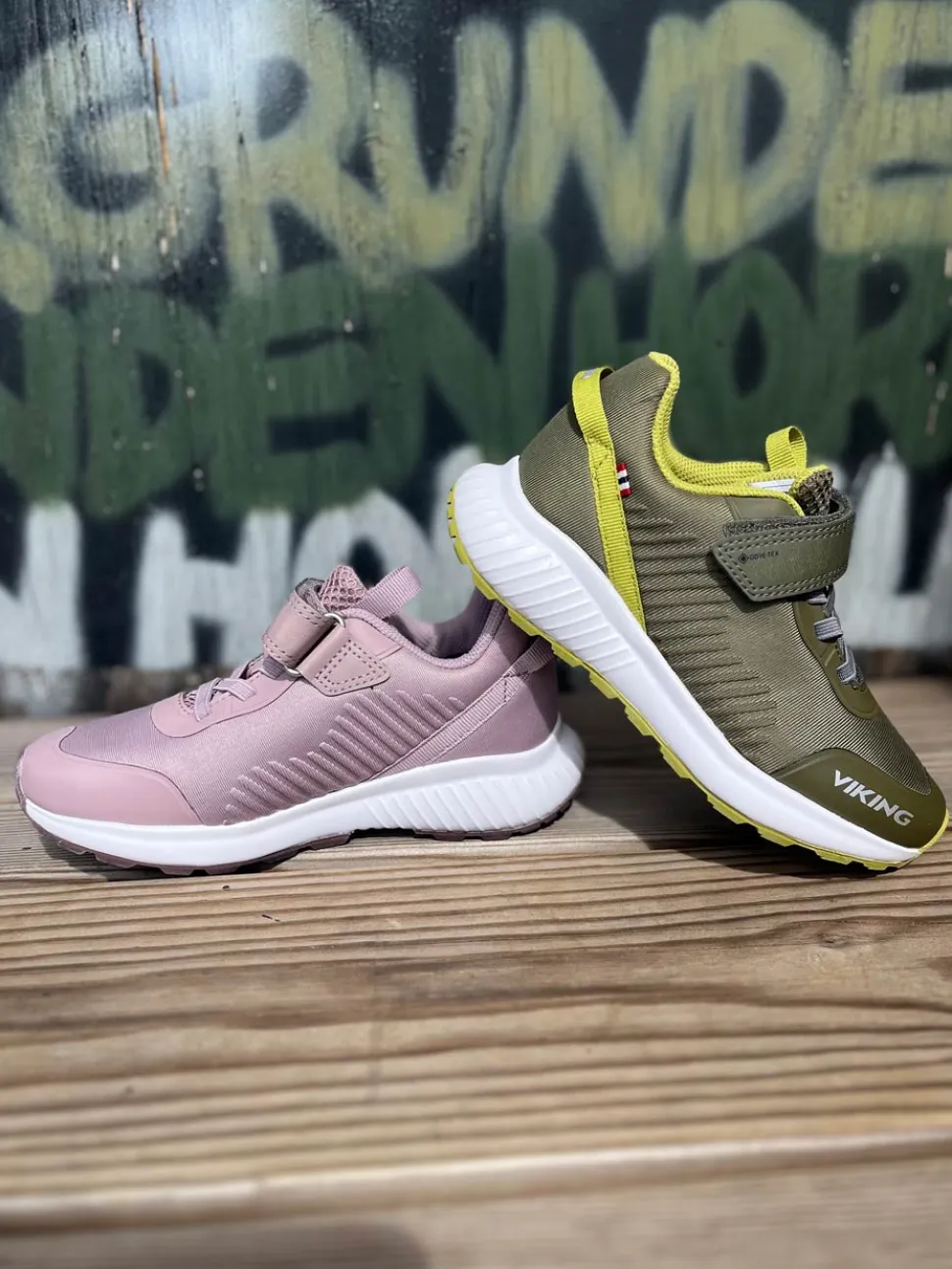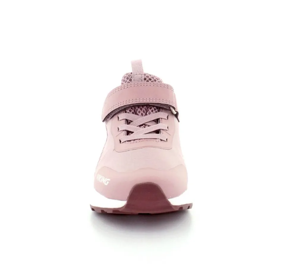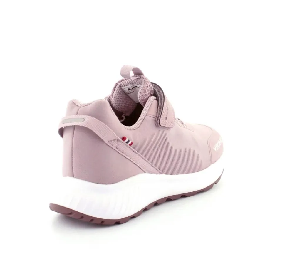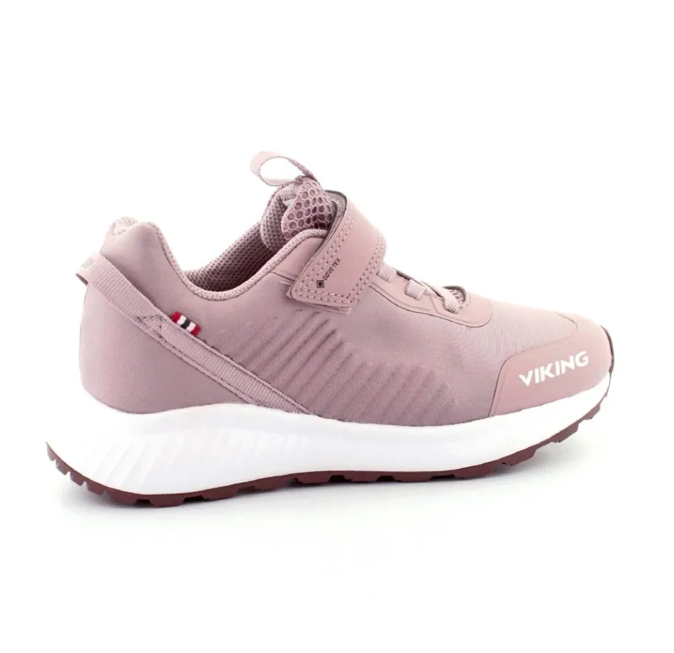 Super flot og god vandtæt sneakers fra Viking model Aery Tau Low GTX. Skoen er i en flot gl. rosa farve med både velcrorem og elastiksnøre. Nem at komme i og godt hold på foden. Aftagelige indlægssåler og gode gummisåler under bunden. Skoen kan vaskes på 30 grader skånevask.
