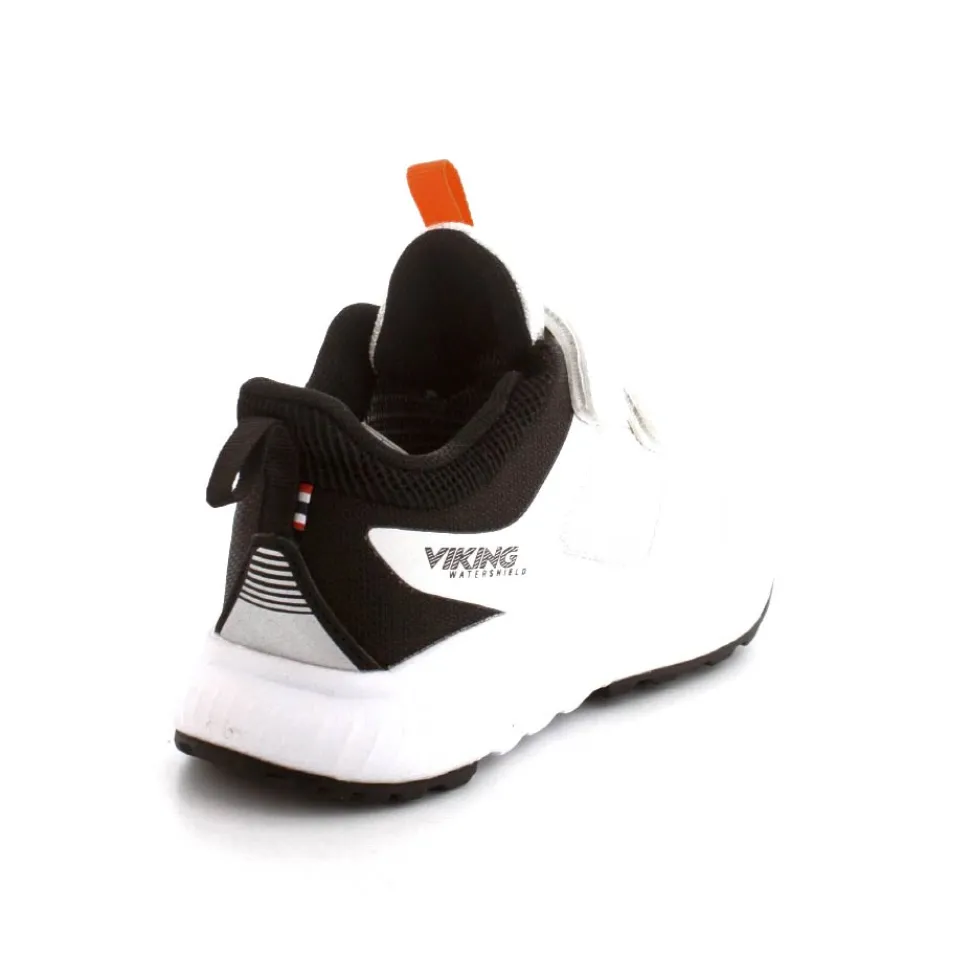 Super smart sneakers fra Viking model Aery Watershield i hvid med fede detaljer på. Skoen er vandtæt og med to regulerbare velcroremme. Den er let, god fast hælkappe og stødabsoberende såler under hele bunden. Og så kan den vaskes 30 grader skånevask.