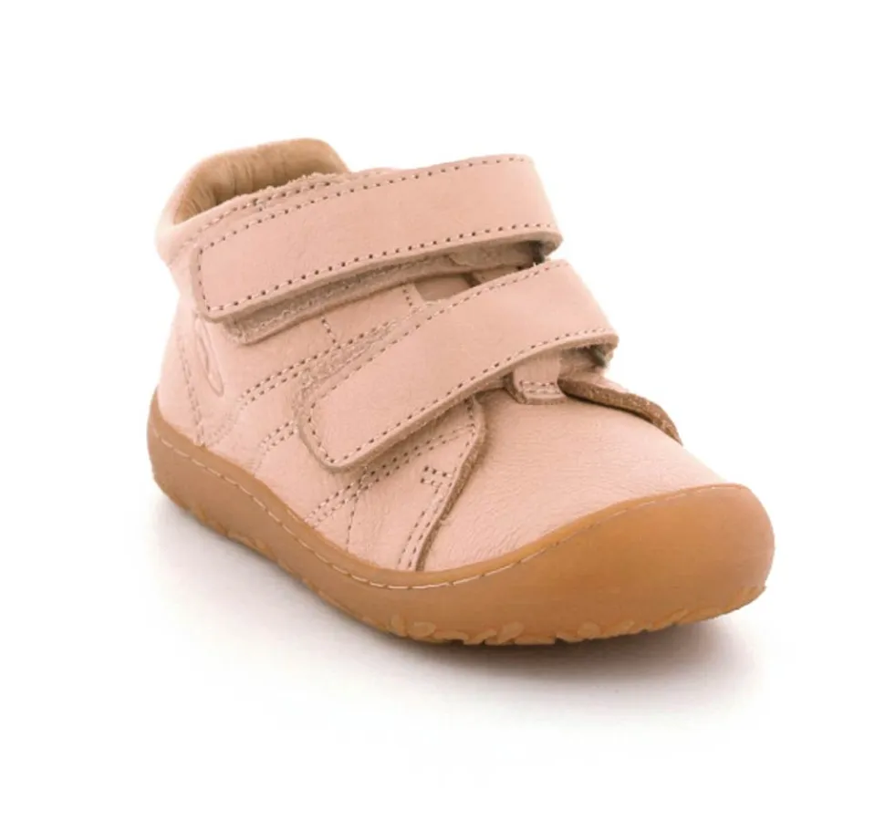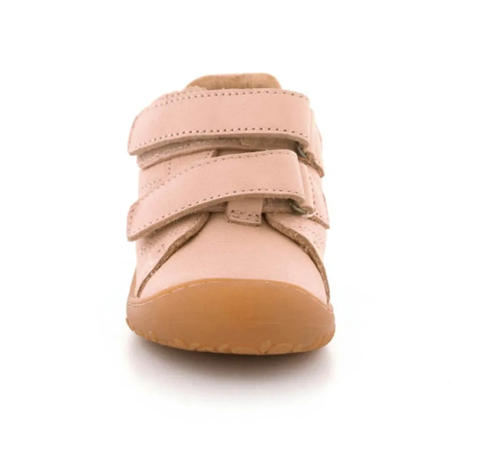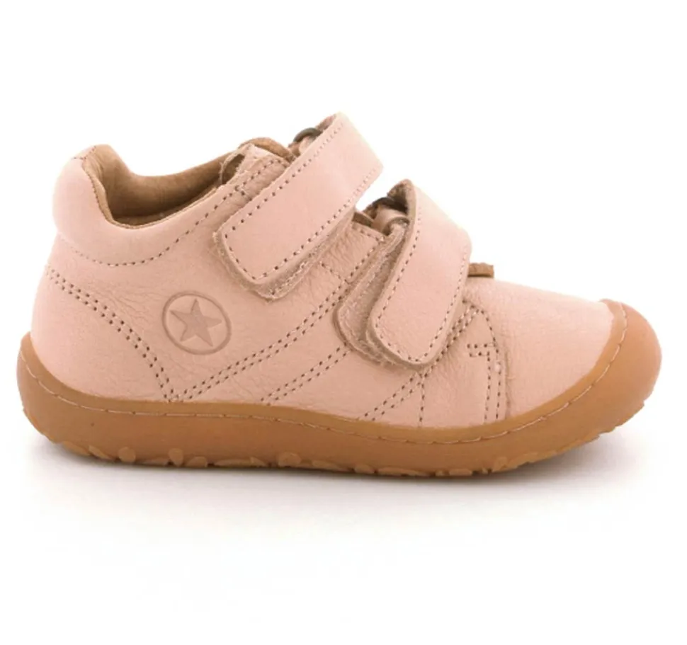 Rigtig god startersko fra Bisgaard model Barefoot i rosa farvet skind. Skoen har god fast hælkappe, to regulerbare velcroremme og går godt op og støtter barnets fod. Der er gummisåler under hele bunden og op om snuden for at beskytte skoen og foden. Skindfoer indeni og aftagelifge såler. Bløde fleksible gummisåler under bunden.