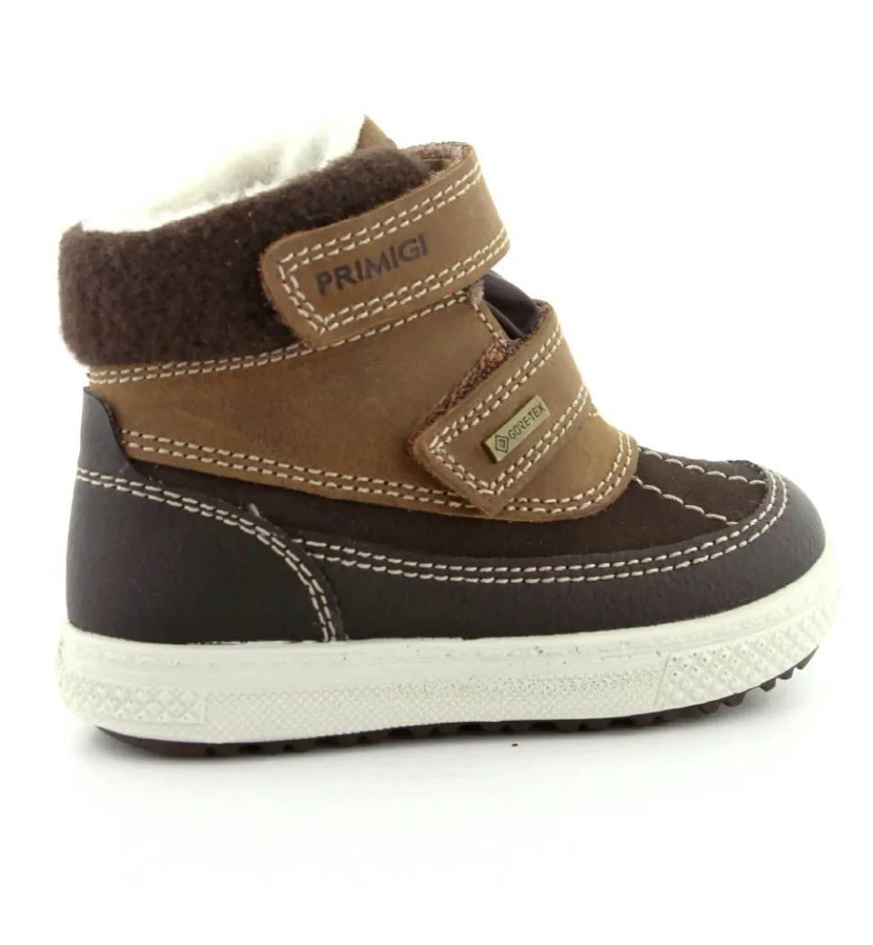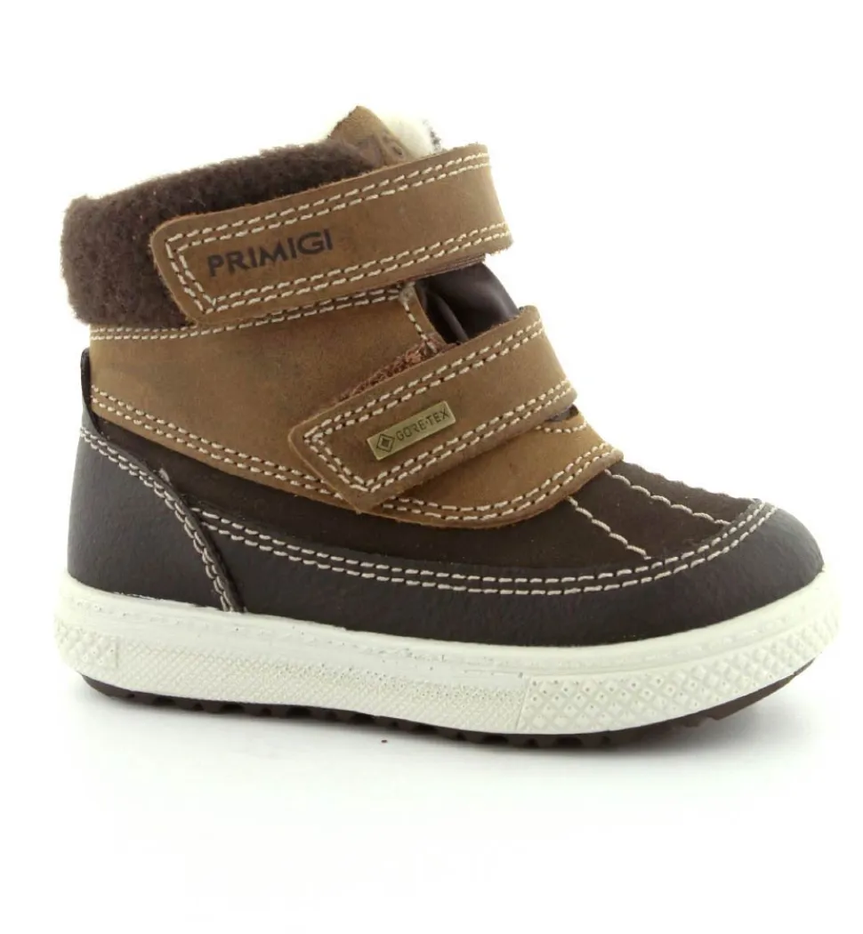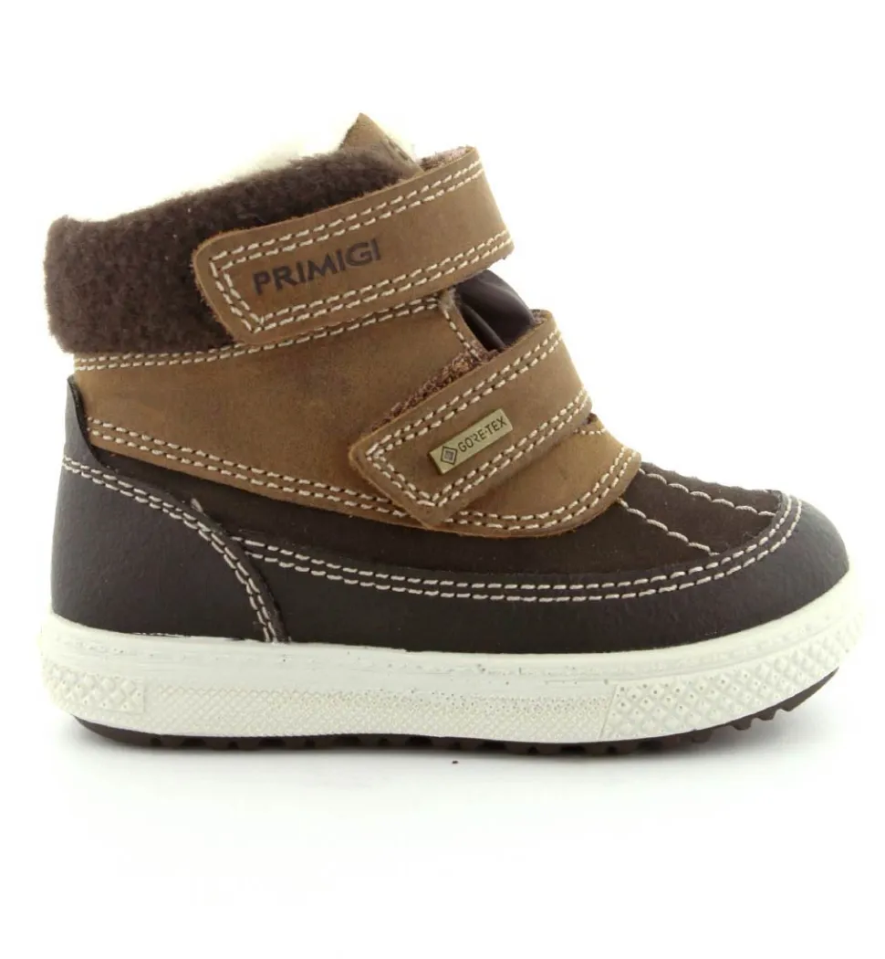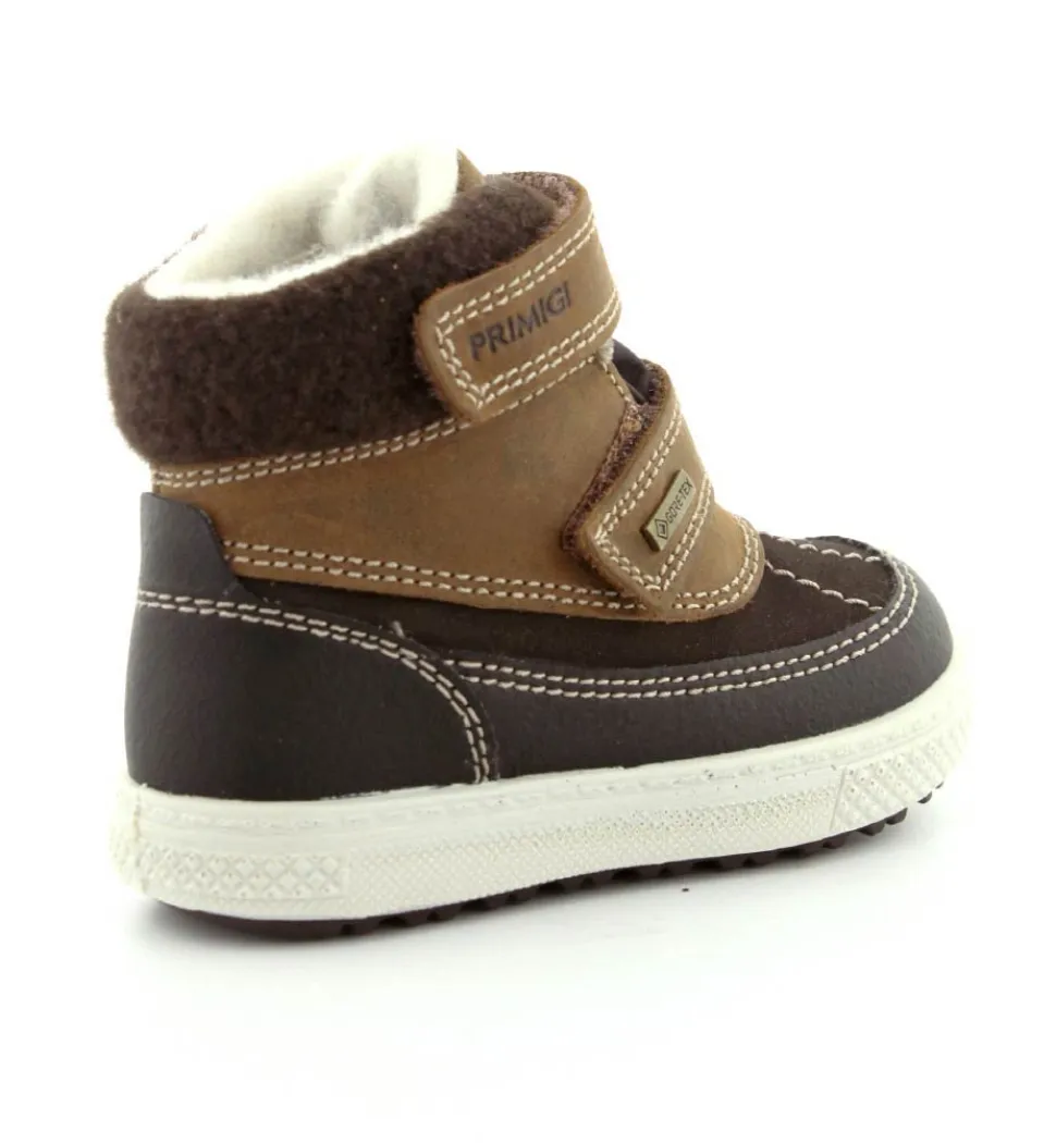 Skøn vinterstøvle fra Primigi i en flot mørkebrun udgave. Der er to regulerbare velcroremme, som er nemme at komme i og tilpasse. Støvlen er med varmt foer indeni og GoreTex membran, så den kan klare sne og kulde. Der er aftagelige indlægssåler og meget lette og stødabsoberende såler under hele bunden. Støvlen fra Primigi har et godt hold på foden og er meget nem at komme i. Støvlen rummer godt.