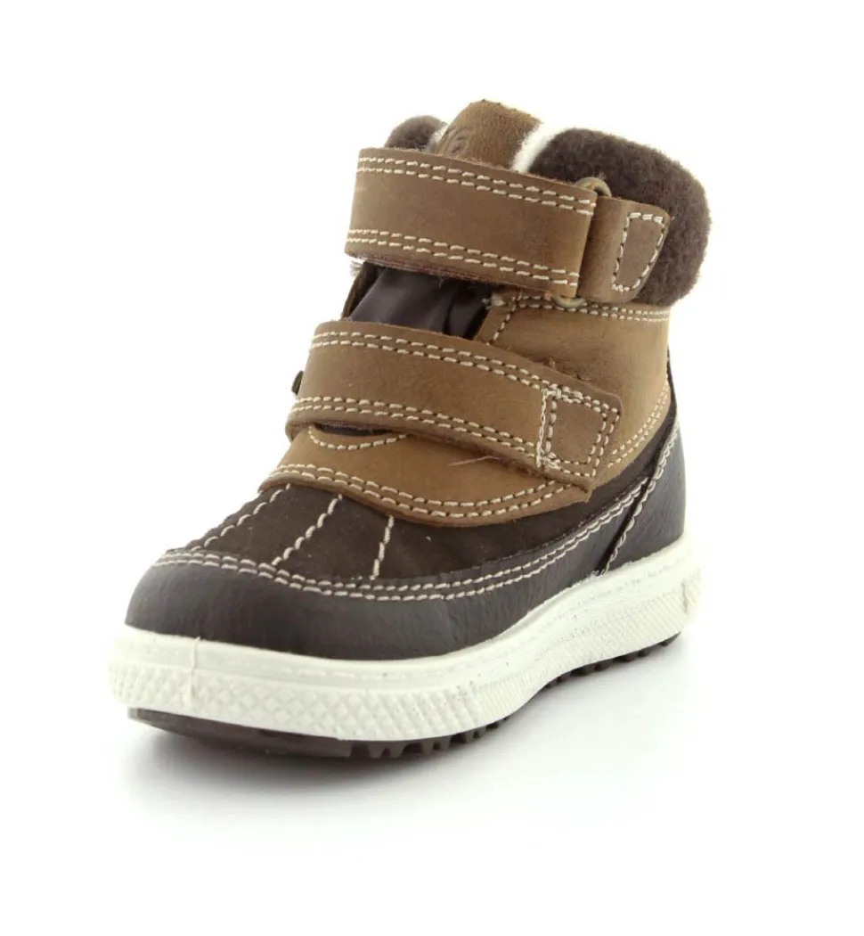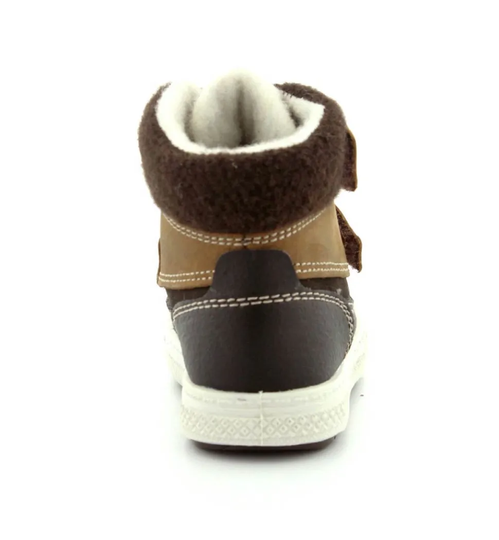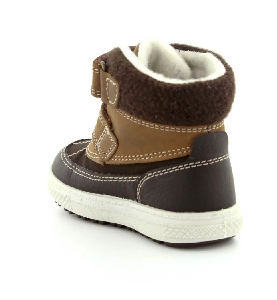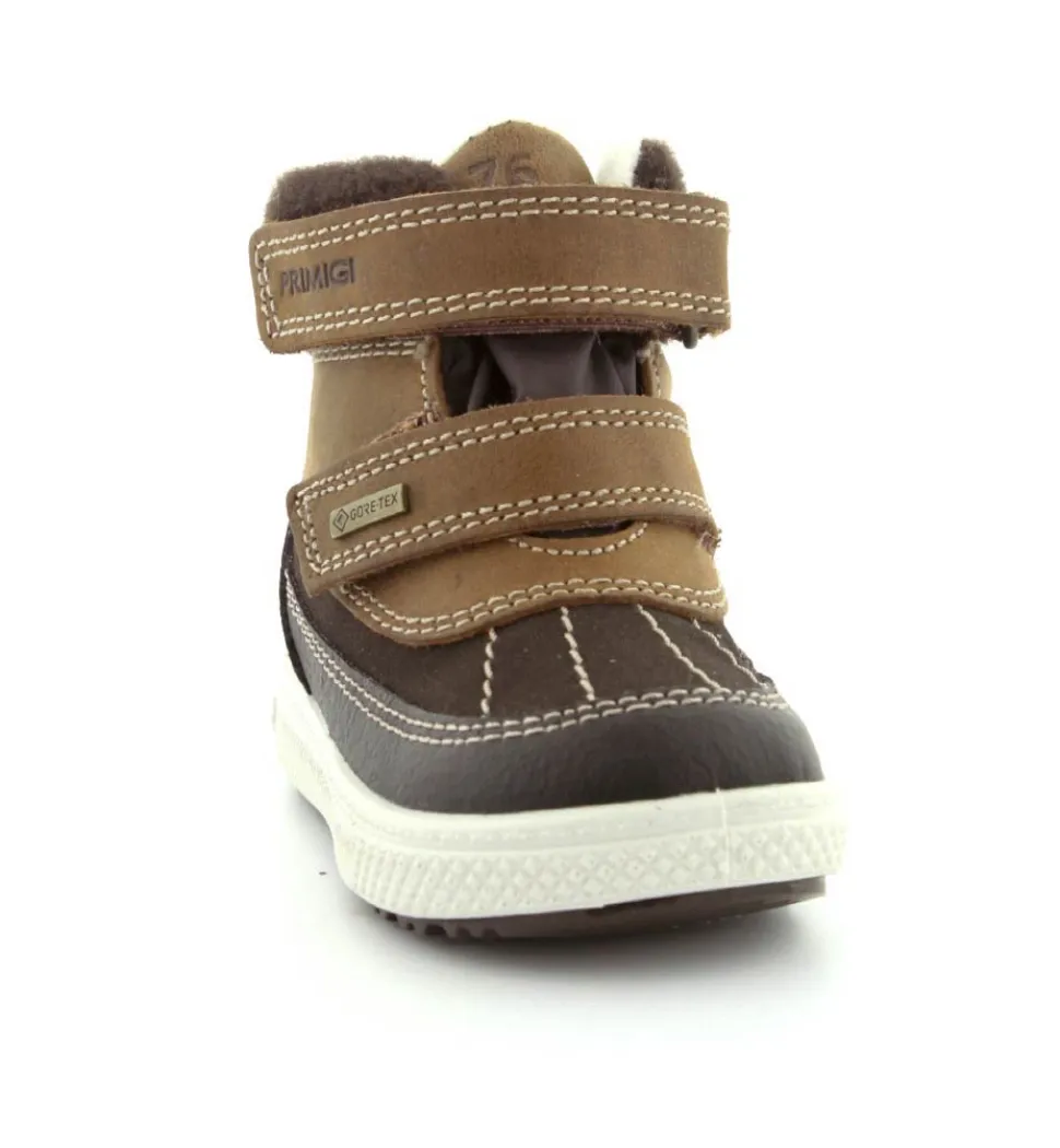 Skøn vinterstøvle fra Primigi i en flot mørkebrun udgave. Der er to regulerbare velcroremme, som er nemme at komme i og tilpasse. Støvlen er med varmt foer indeni og GoreTex membran, så den kan klare sne og kulde. Der er aftagelige indlægssåler og meget lette og stødabsoberende såler under hele bunden. Støvlen fra Primigi har et godt hold på foden og er meget nem at komme i. Støvlen rummer godt.