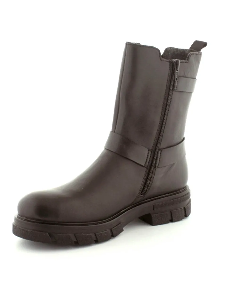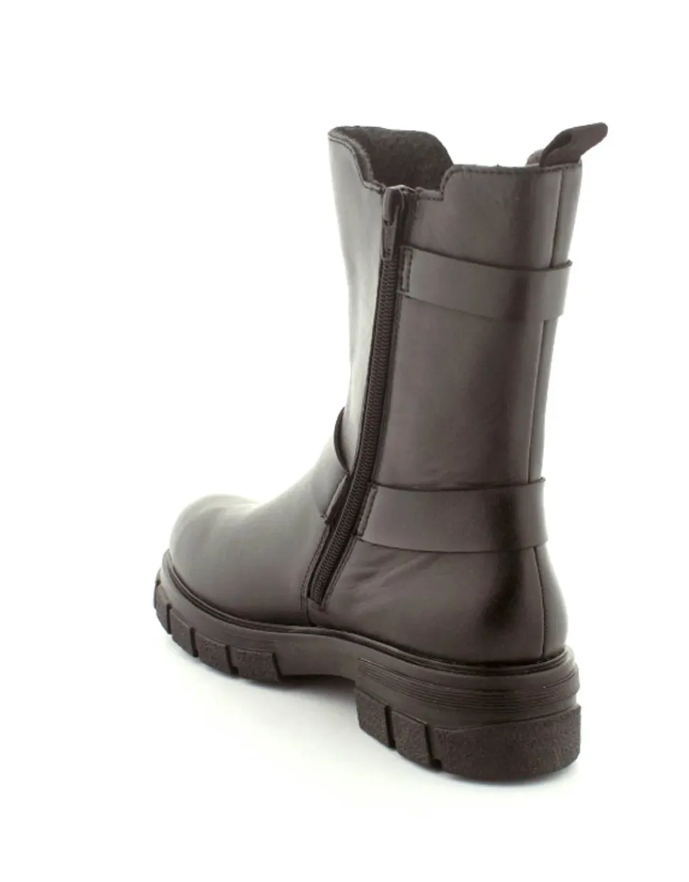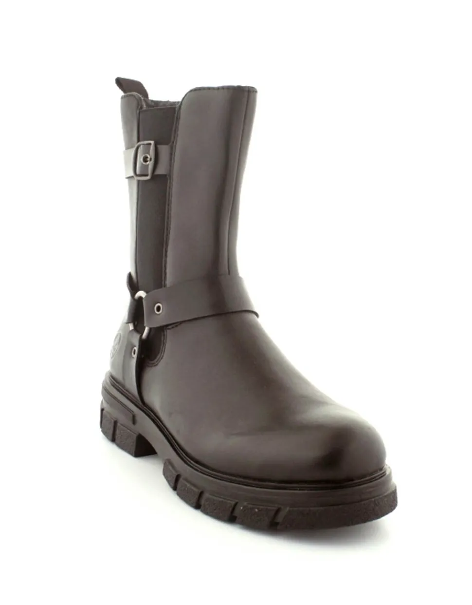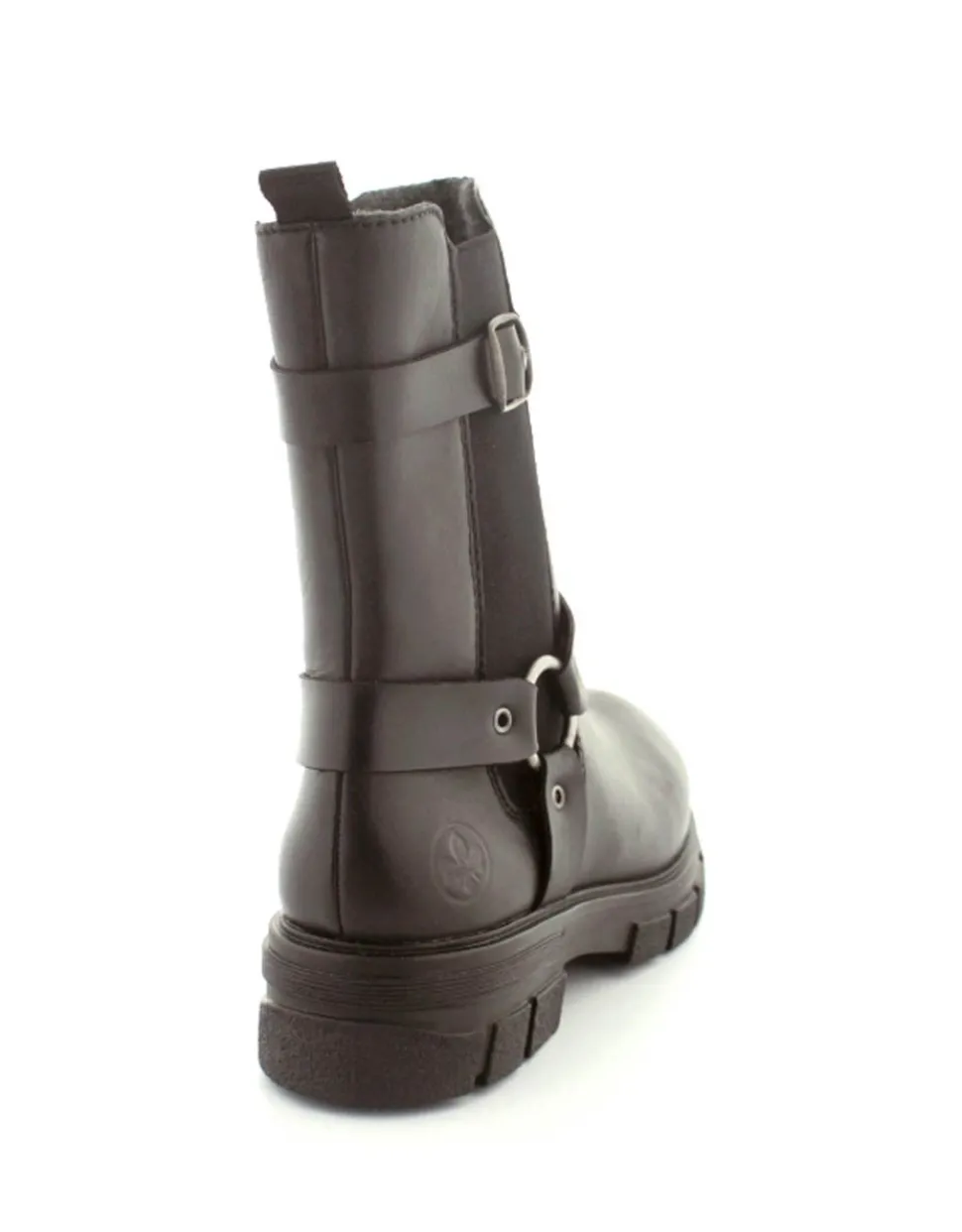Super smart bikerstøvle i skind fra Rieker. Støvlen er i sort med gode detaljer på siden. Der er elastik på ydersiden og lynlås på indersiden, så nem at få på. Gode solide gummisåler og dejlig lunt foer indeni.