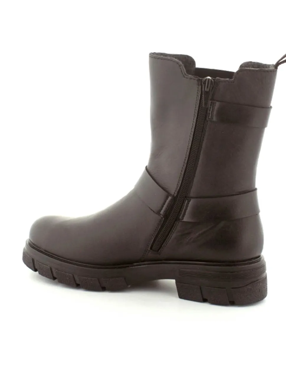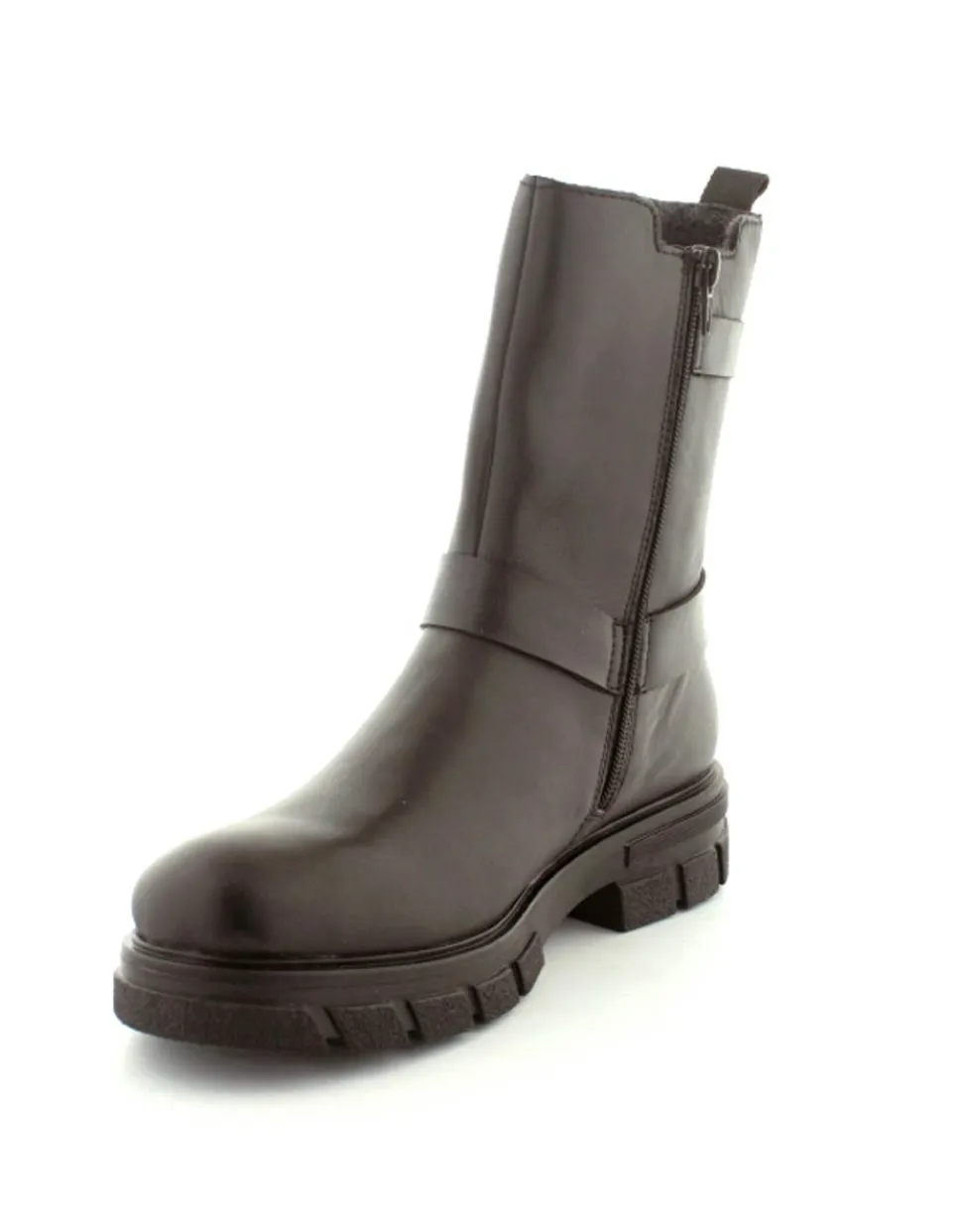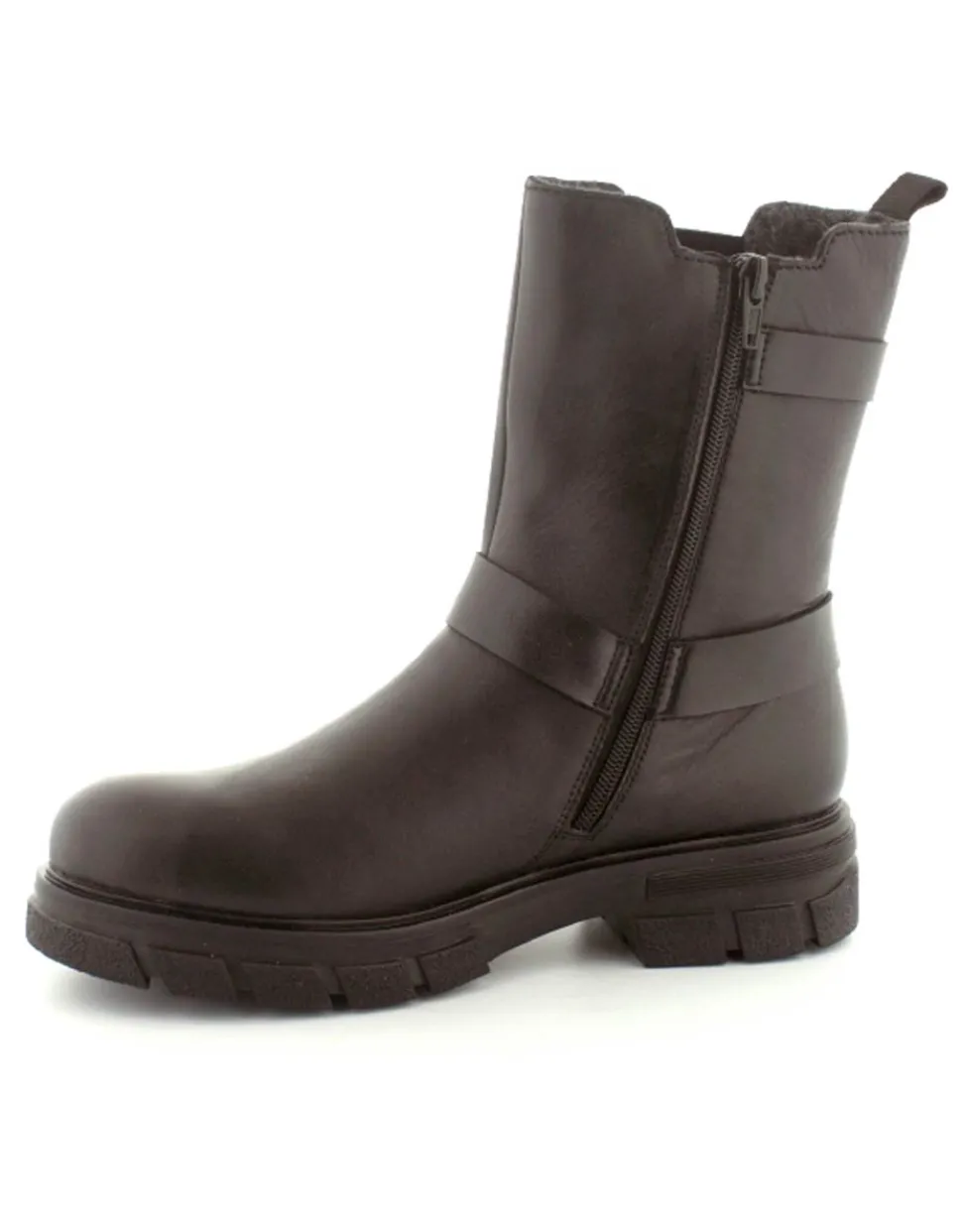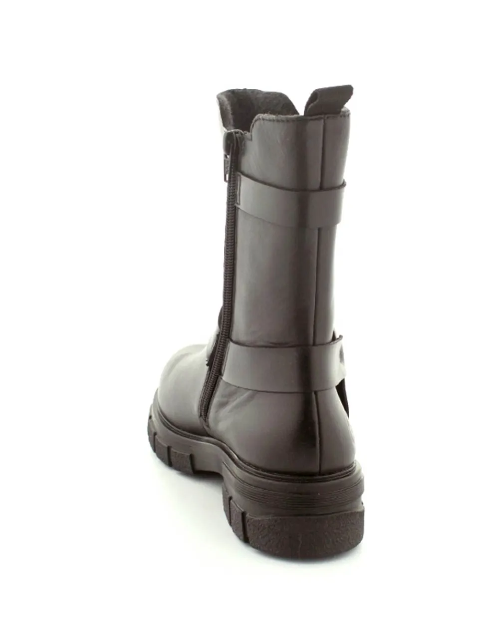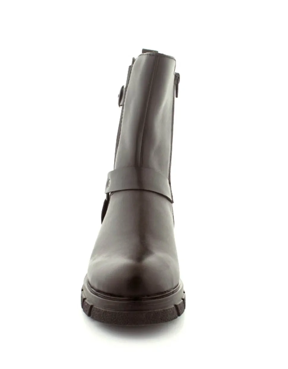 Super smart bikerstøvle i skind fra Rieker. Støvlen er i sort med gode detaljer på siden. Der er elastik på ydersiden og lynlås på indersiden, så nem at få på. Gode solide gummisåler og dejlig lunt foer indeni.
