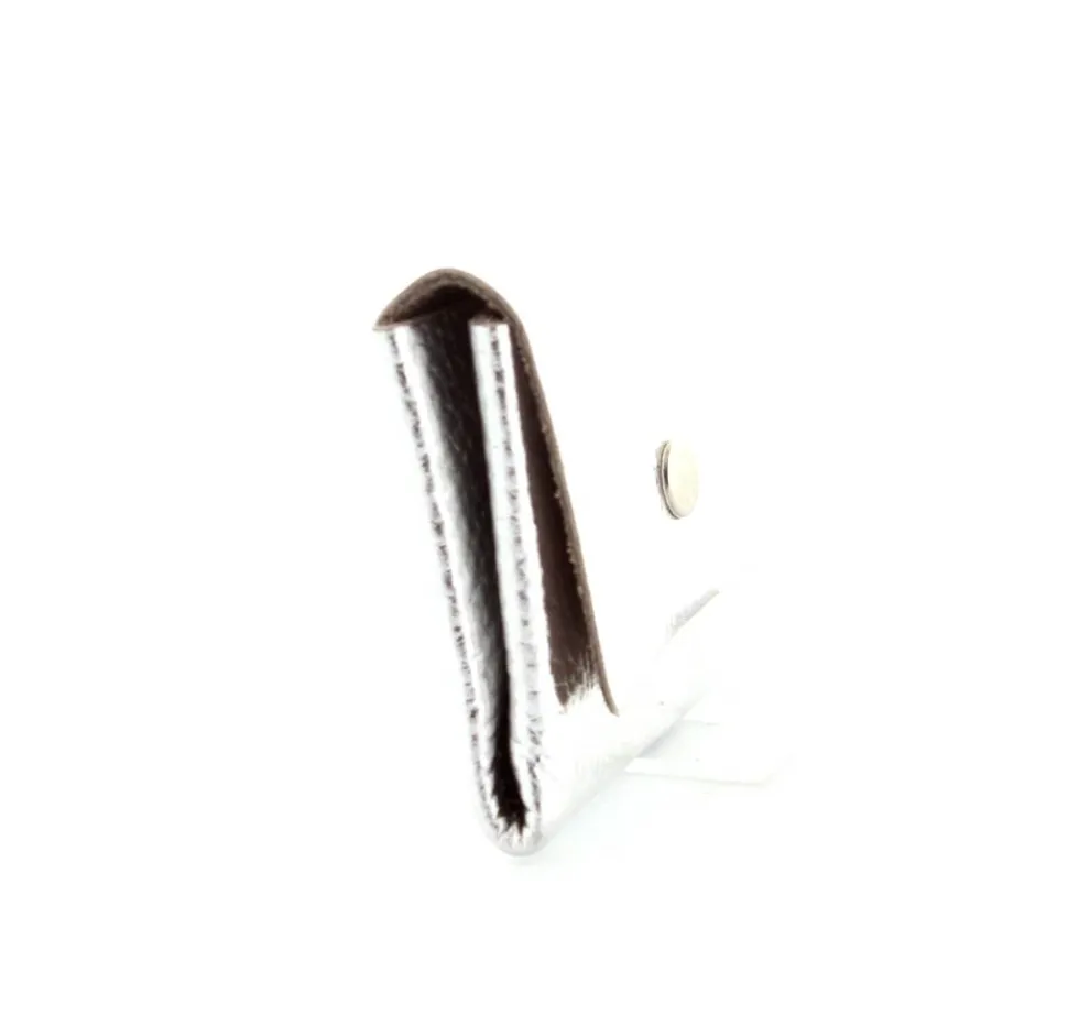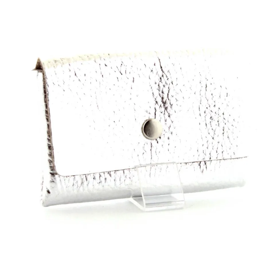 Lille skind pung til kreditkort i sølvfarvet skind.