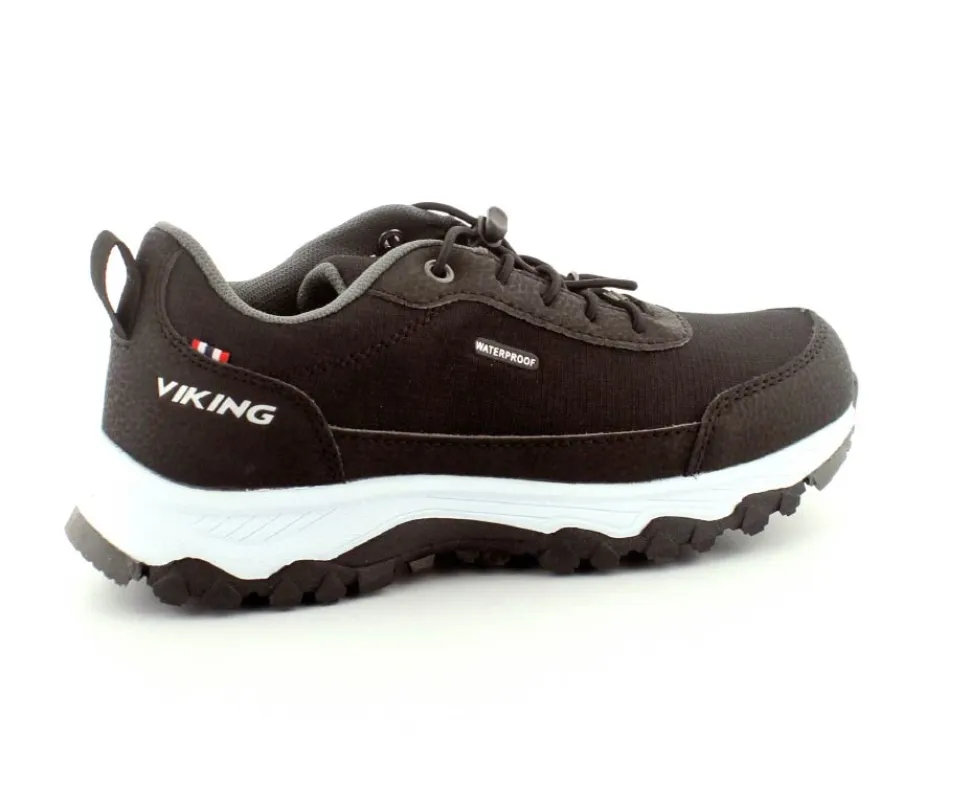 Rigtig god tonsersko fra Viking, model Crude Low Waterproof i sort tekstil. Skoen er med elastiksnøre, så den er hurtig at få på, og den er vandtæt. Gode robuste gummisåler under hele bunden.