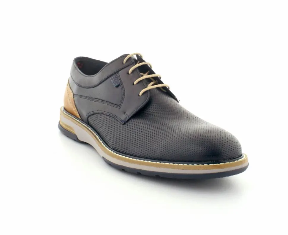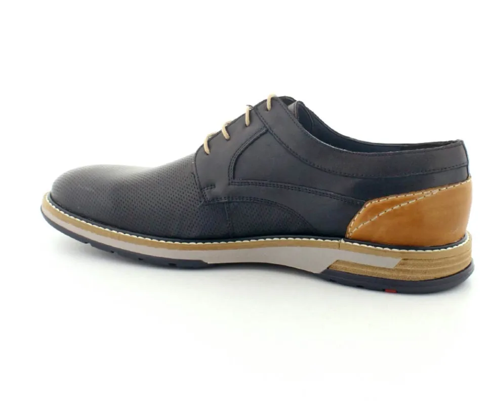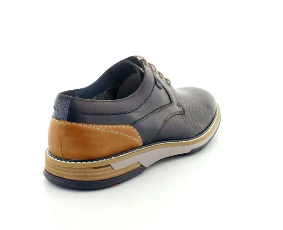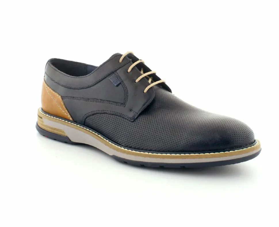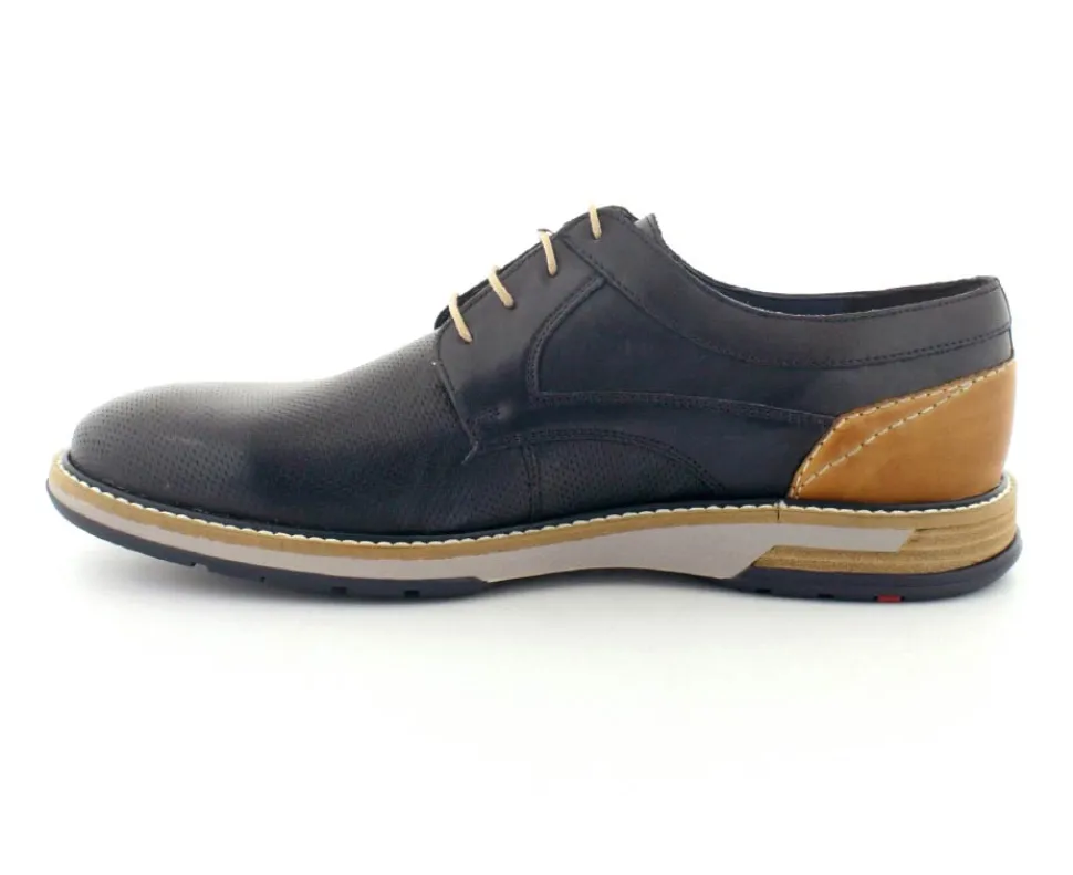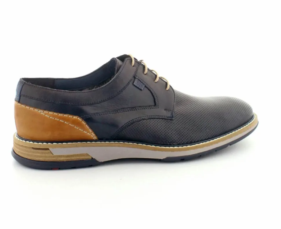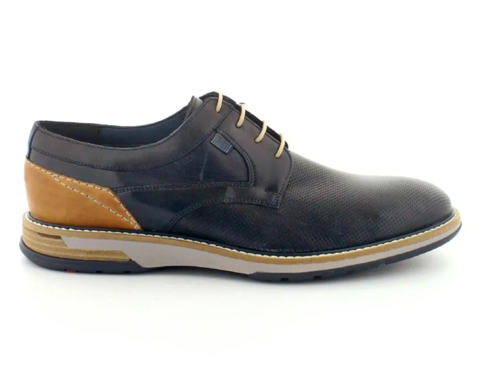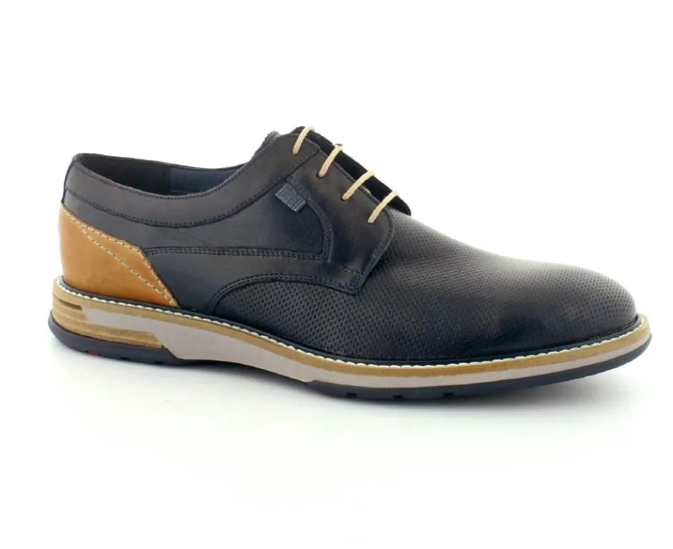Flot og stilfuld snøresko fra LLoyd model Edgar i mørkeblå skind med cognacfarvet detaljer på. Super lækker og blød bund.