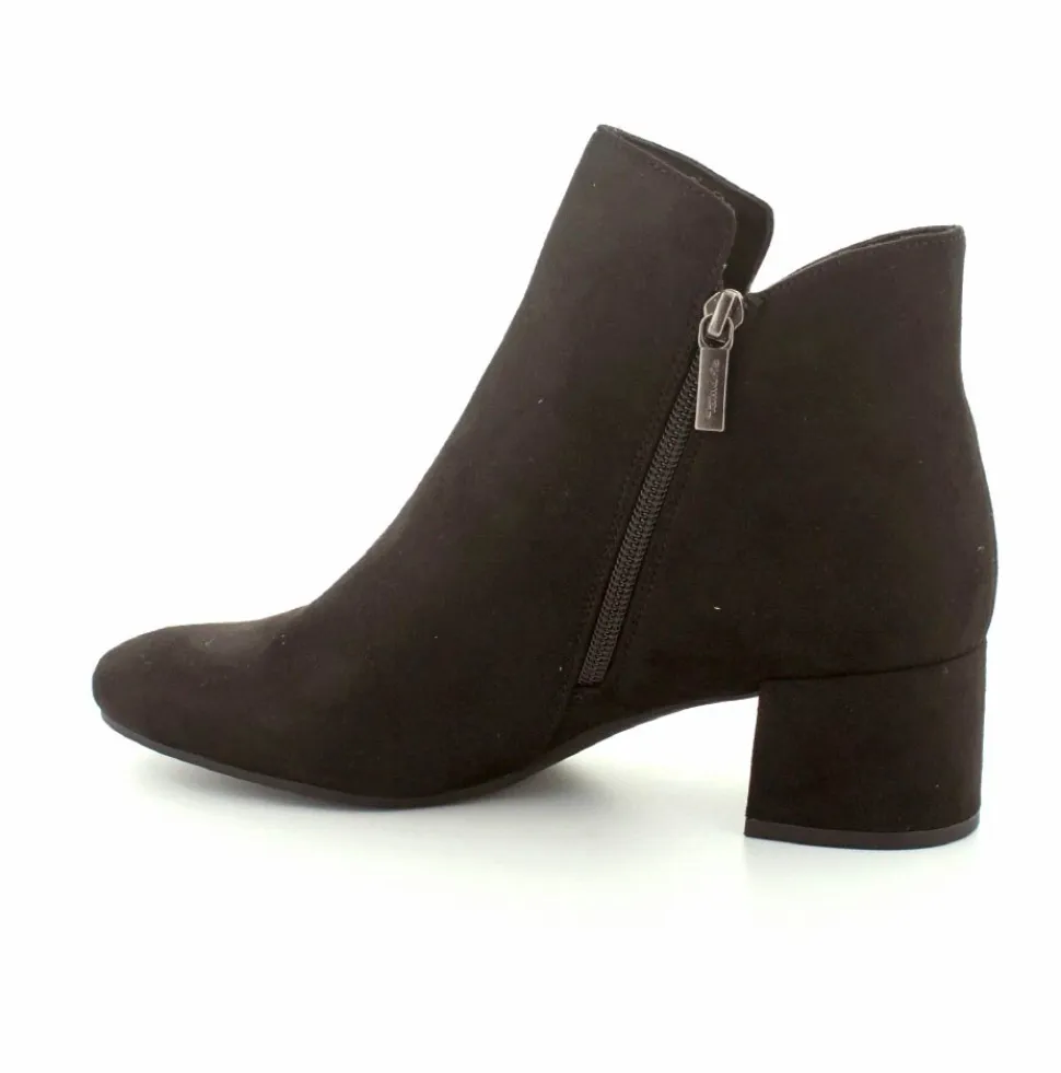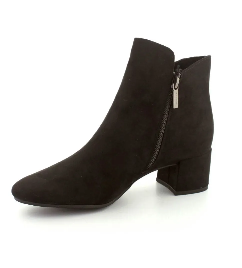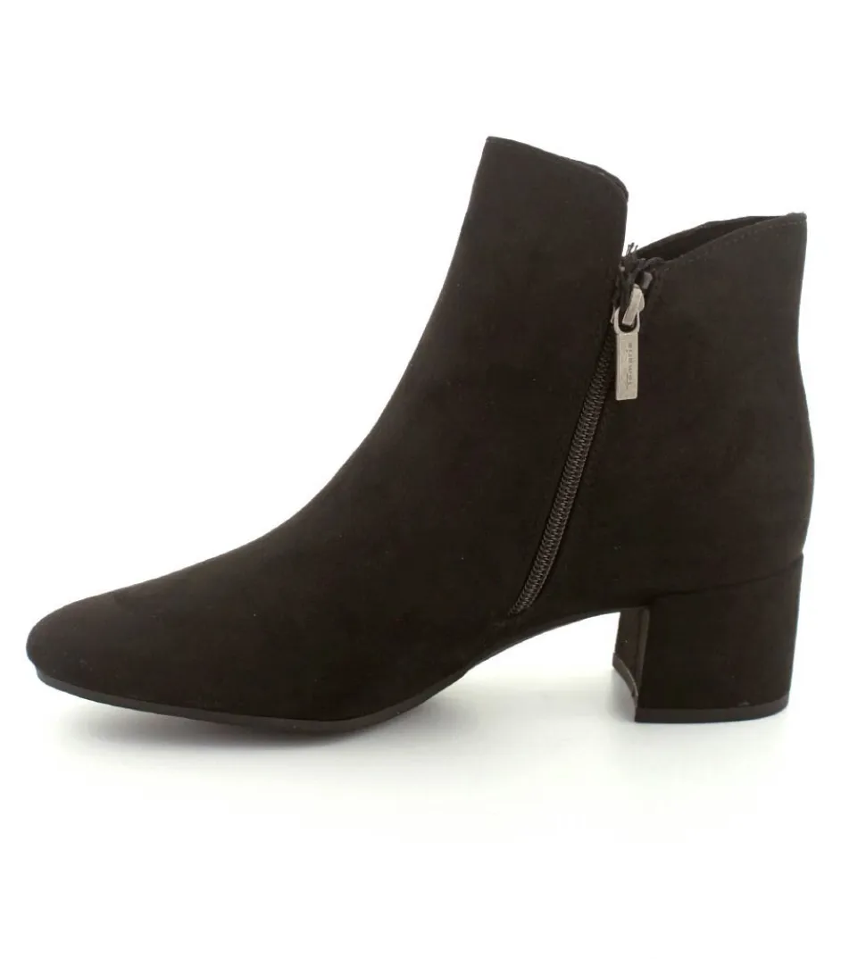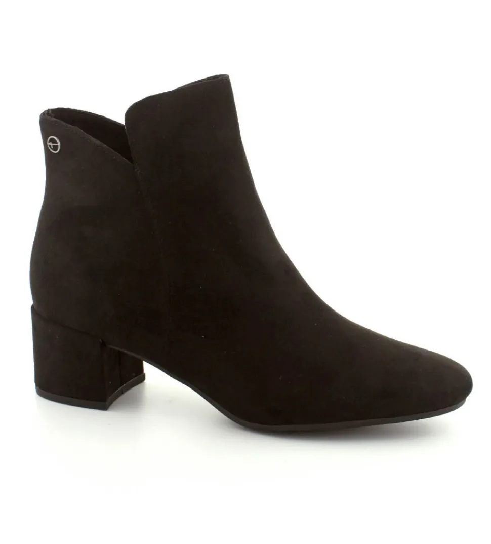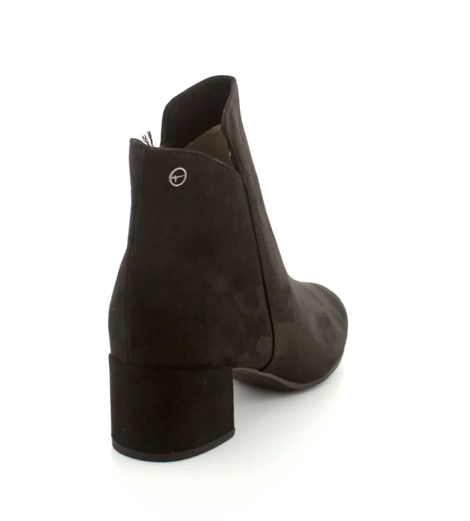 Flot og klassisk støvlet fra Tamaris i sort imiteret ruskind. Støvlen har en flot skæring ved anklen og har lynlås på indersiden. Nem lille blokhæl at gå på og bløde fleksible såler under forfoden. Støvlen fra Tamaris har en blød “Touch It” indersål, der former sig efter foden når man går.