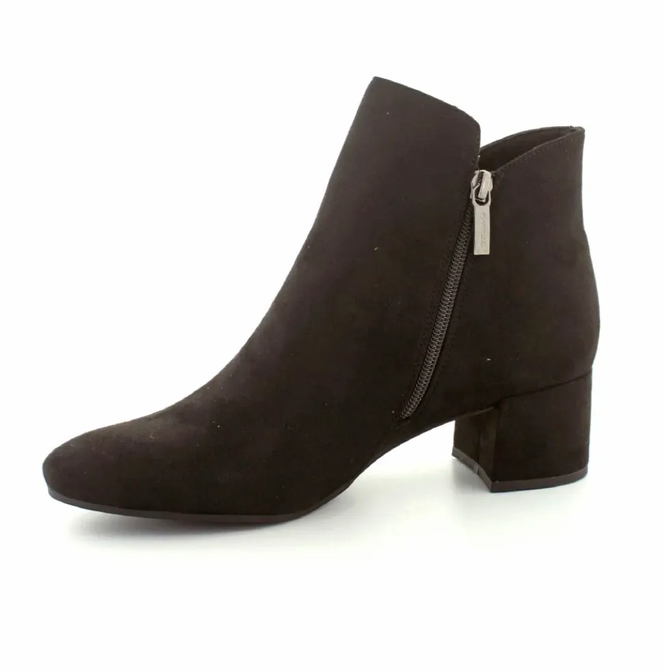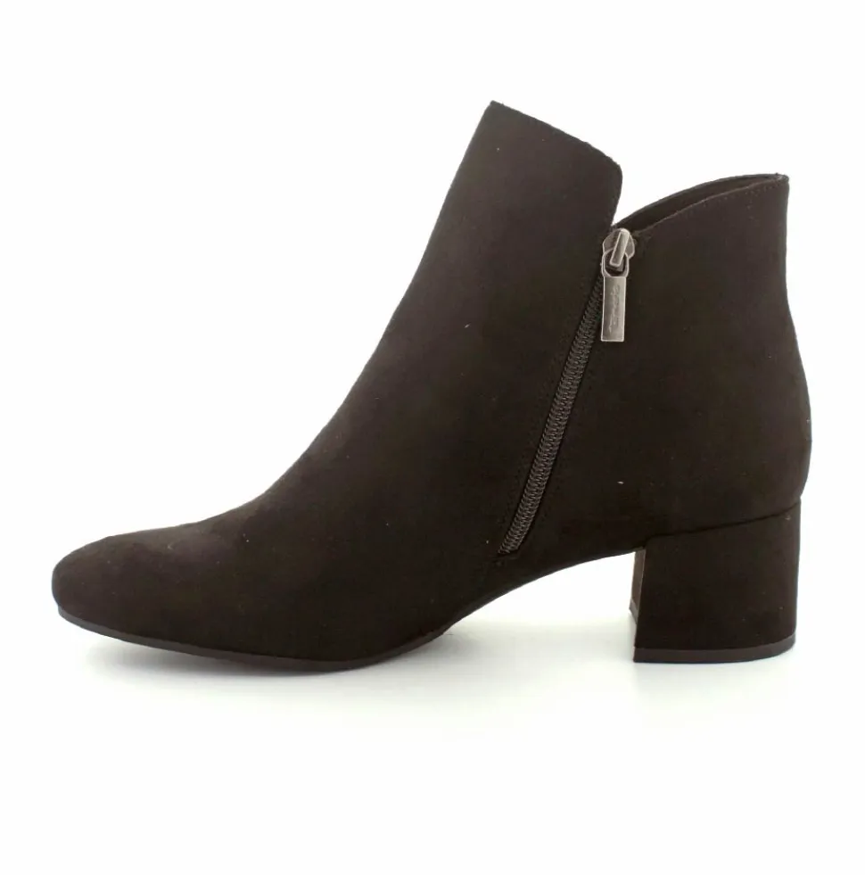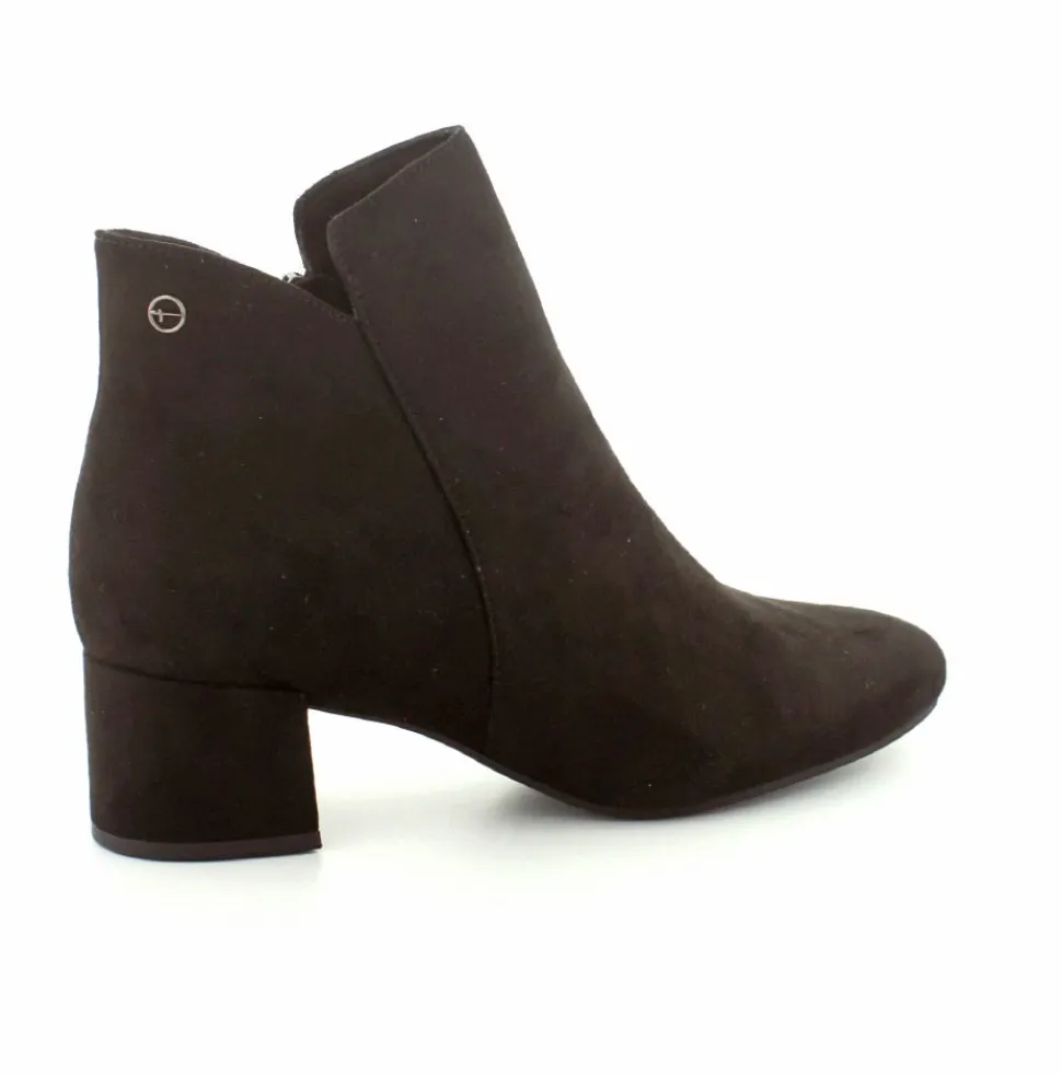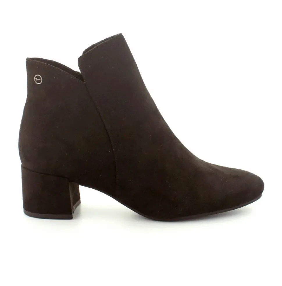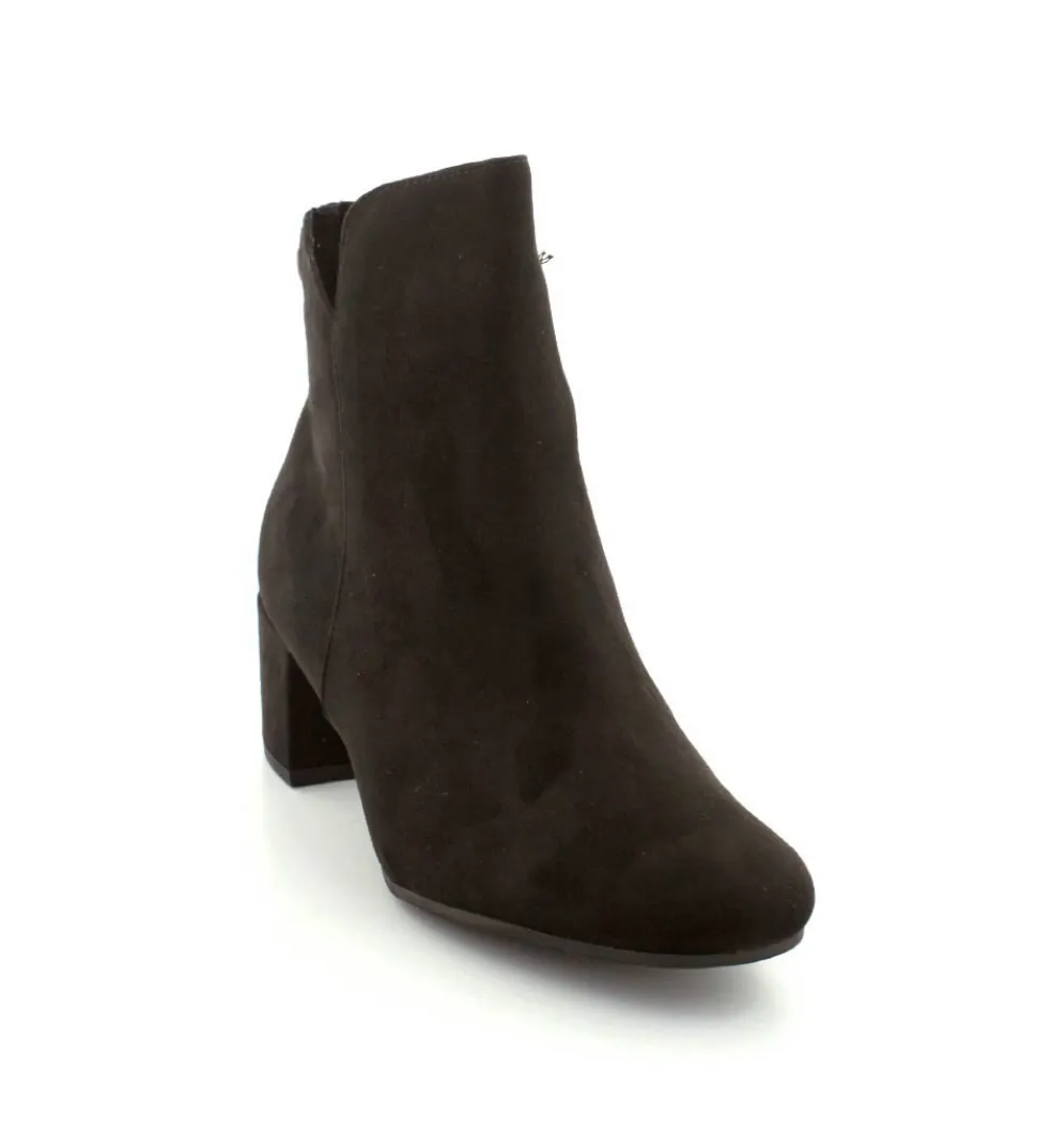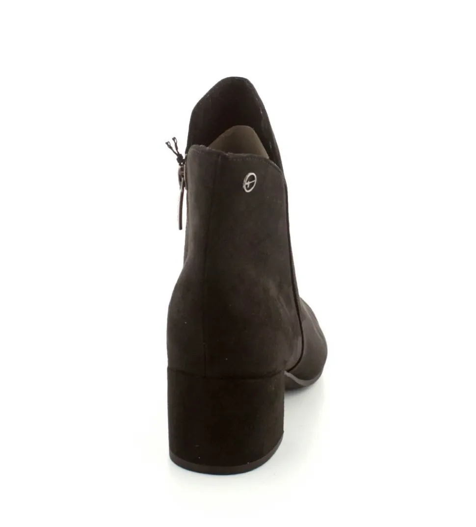 Flot og klassisk støvlet fra Tamaris i sort imiteret ruskind. Støvlen har en flot skæring ved anklen og har lynlås på indersiden. Nem lille blokhæl at gå på og bløde fleksible såler under forfoden. Støvlen fra Tamaris har en blød “Touch It” indersål, der former sig efter foden når man går.