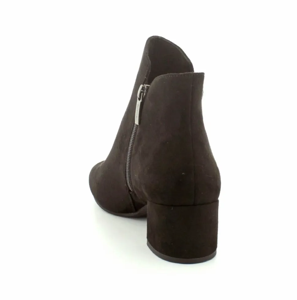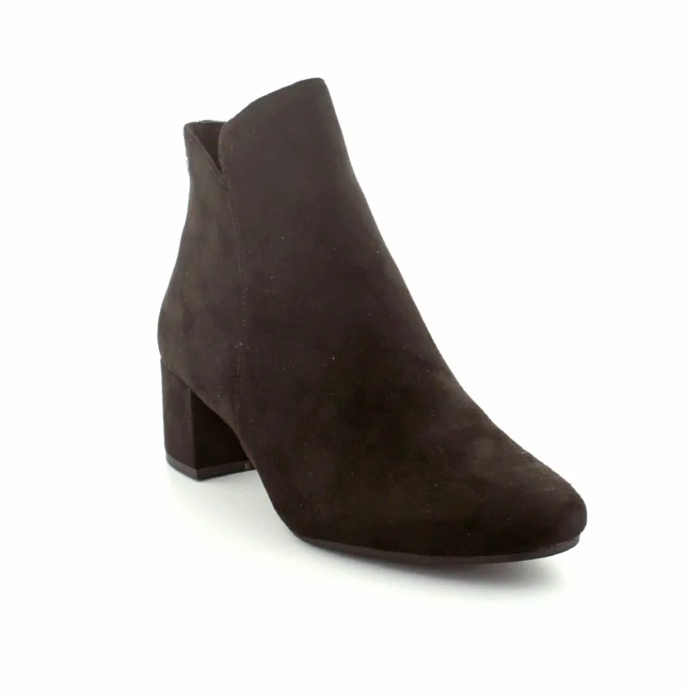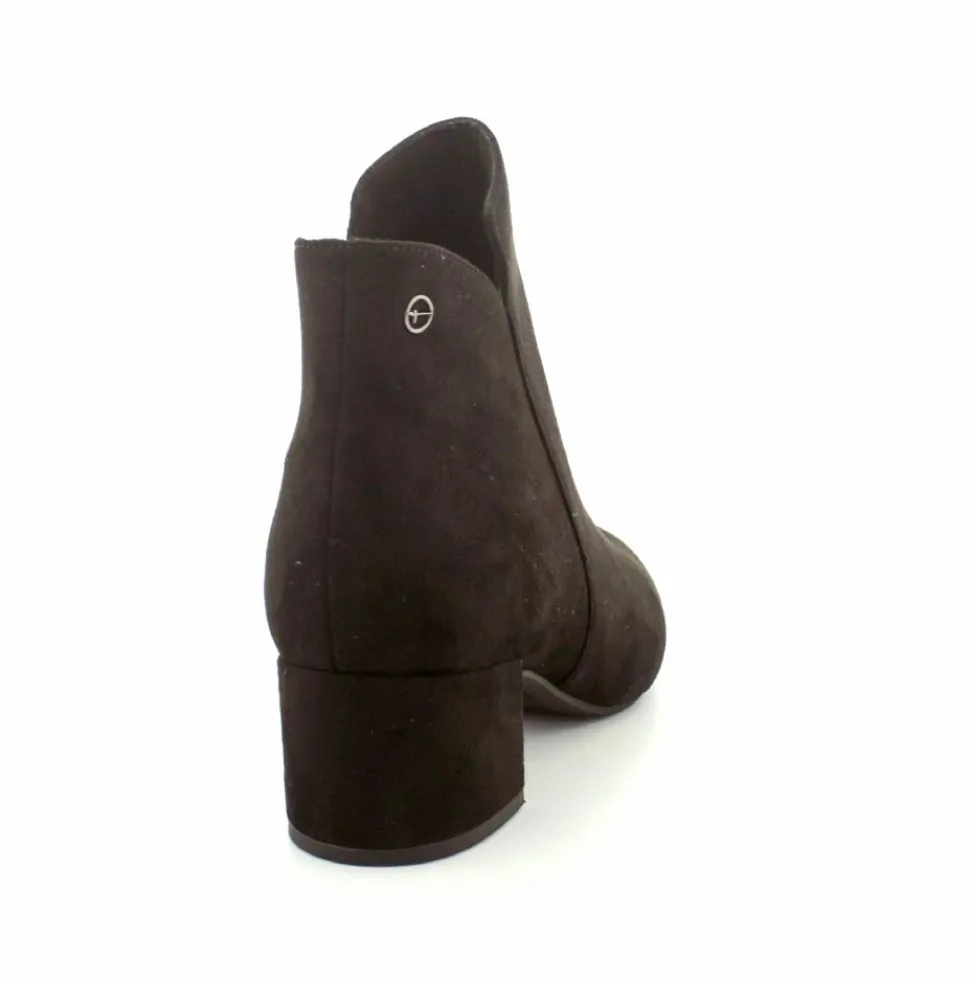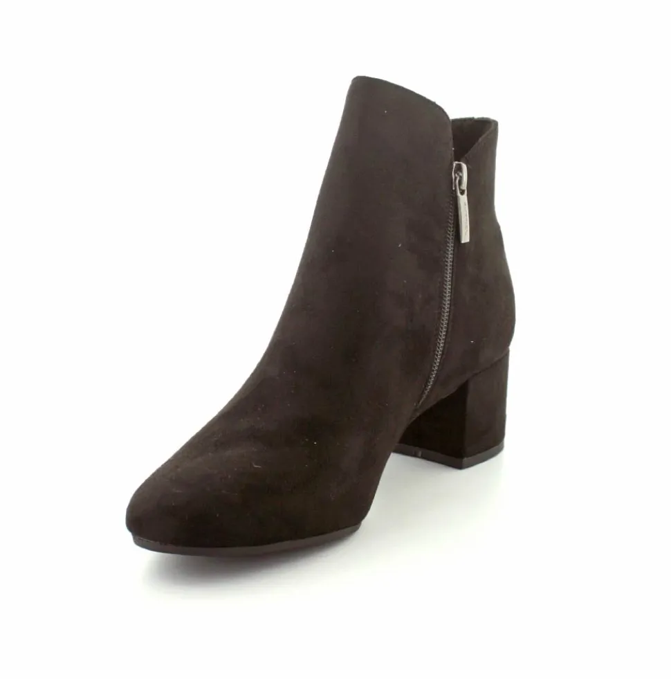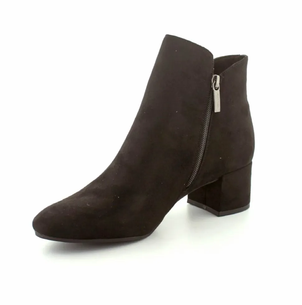 Flot og klassisk støvlet fra Tamaris i sort imiteret ruskind. Støvlen har en flot skæring ved anklen og har lynlås på indersiden. Nem lille blokhæl at gå på og bløde fleksible såler under forfoden. Støvlen fra Tamaris har en blød “Touch It” indersål, der former sig efter foden når man går.