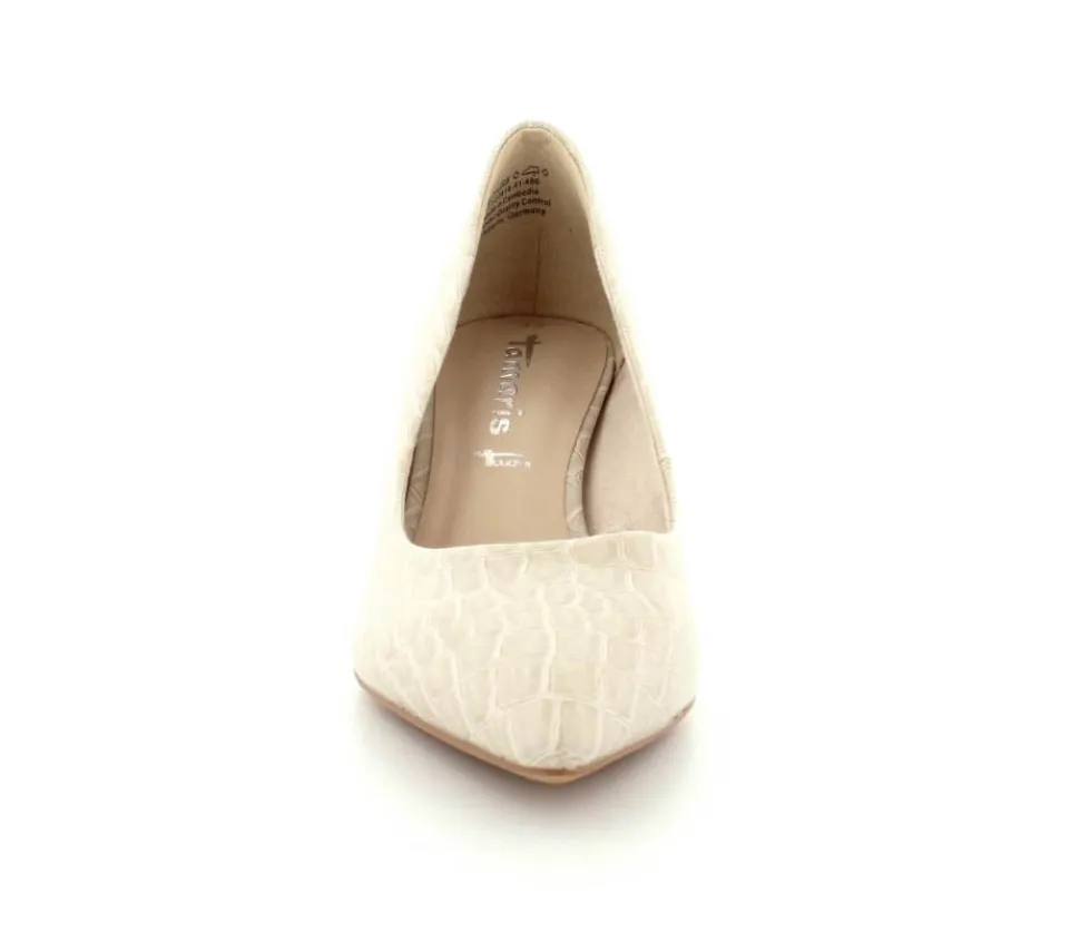 Flot og elegant pump fra Tamaris i lys crocolak. Skoen er med en lille stilethæl og spids snude. Bløde “Touch It” såler indeni.