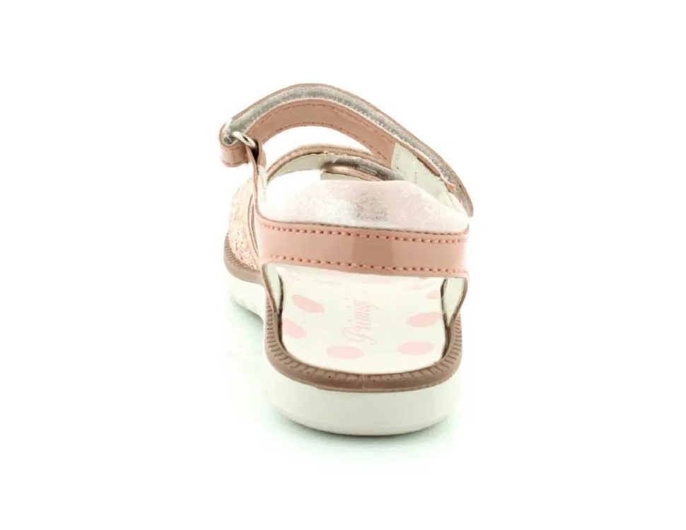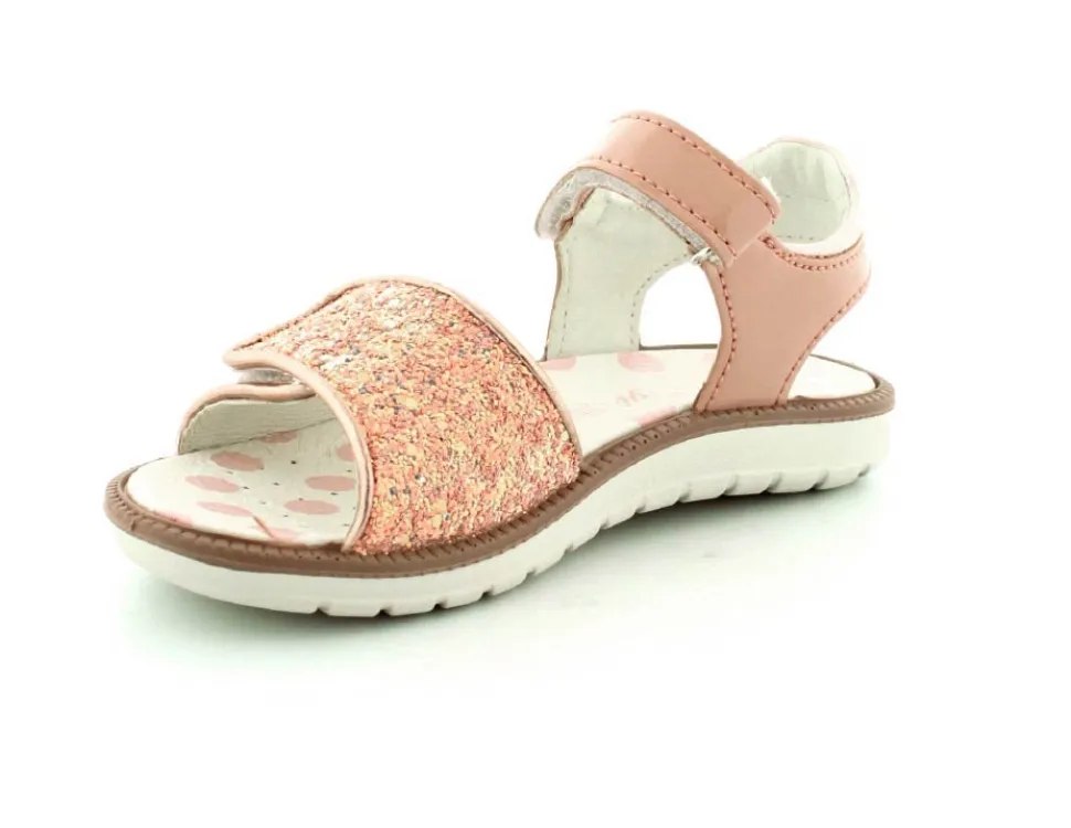 Super fine sandaler fra Primigi i rosa farvet lak og masser af glimmer på fronten. Sandalen er med to regulerbare velcroremme, så den kan tilpasses fodens bredde. Sandalen fra Primigi er med blødt skindfoer indeni og har meget lette, bløde og stødabsoberende såler under hele bunden.