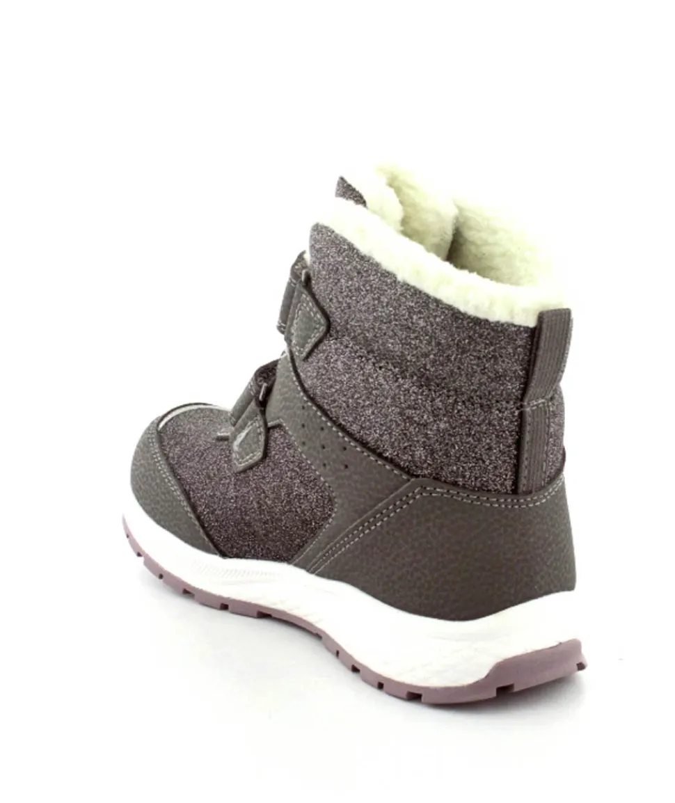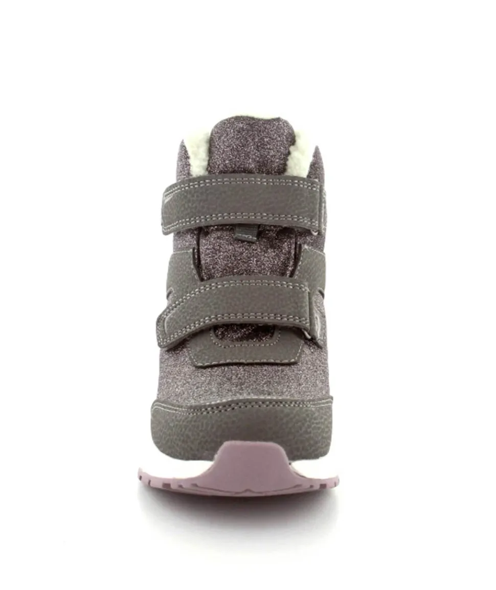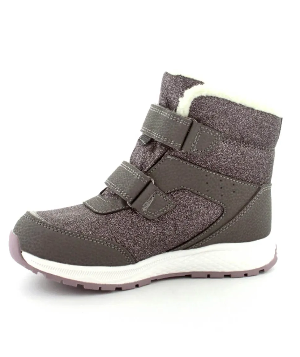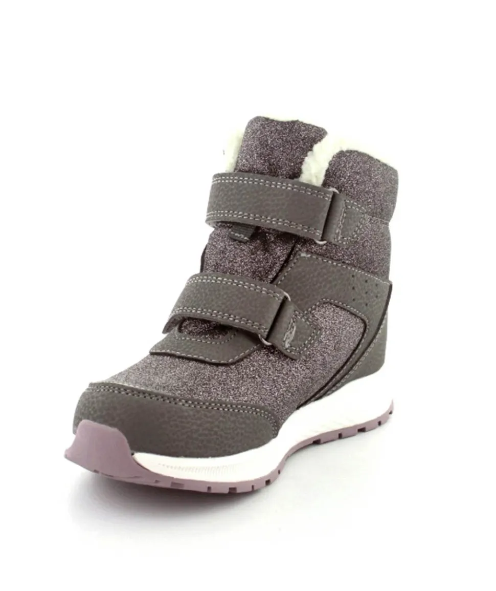 Super smarte vinterstøvler fra Viking model Equip Warm i metallic farve fyldt med glitter på. Støvlen er varmt foeret og med tex membran, så den kan klare sne og kulde. Der er to regulerbare velcropremme og gode fleksible gummisåler under hele bunden.