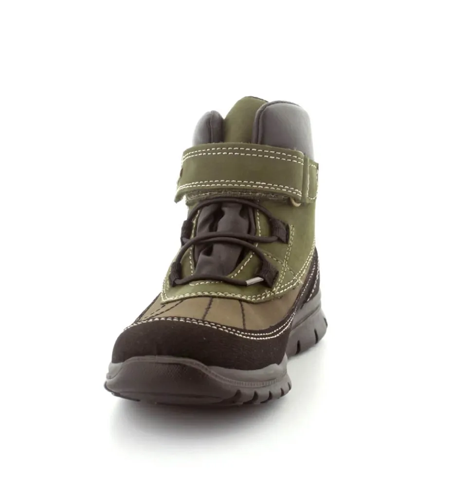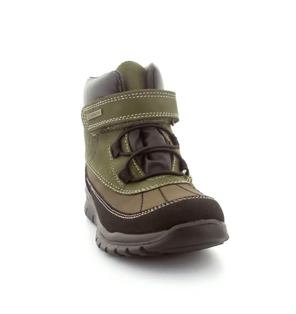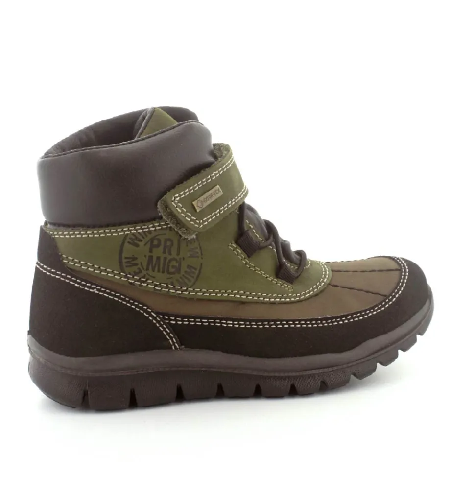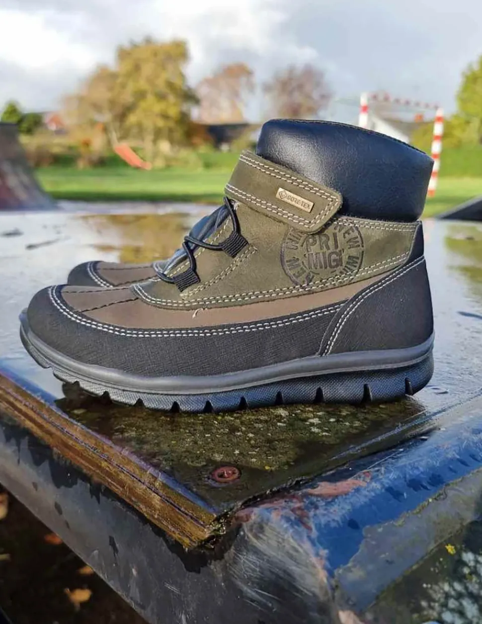 Super smarte vinterstøvler fra Primigi i en flot armygrøn farve. Støvlerne er lette at komme i med elastiksnøre og velcrorem. Super godt hold på foden, dejlig varmt foer og så er den med GoreTex membran, så den er vandtæt.