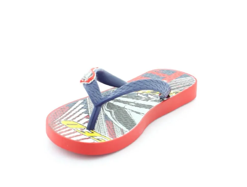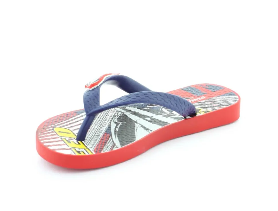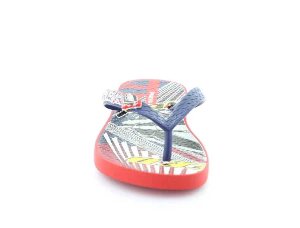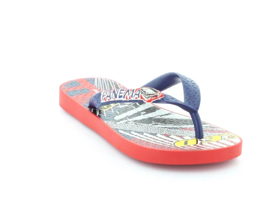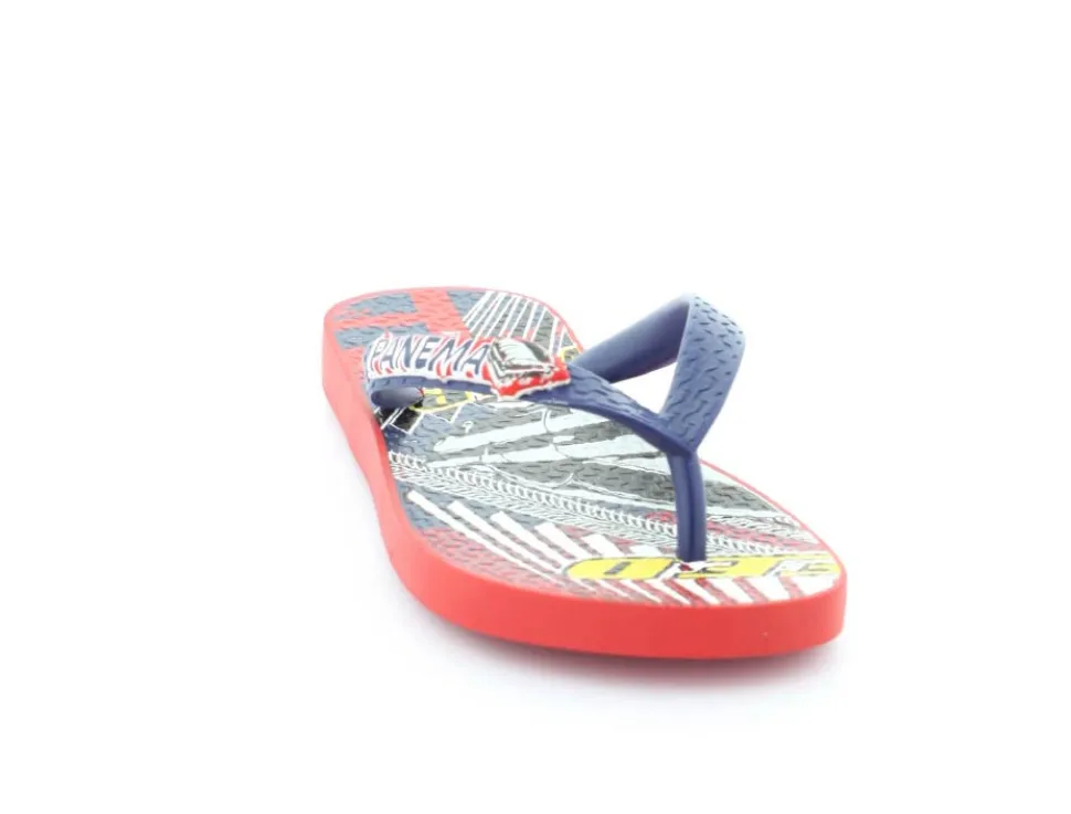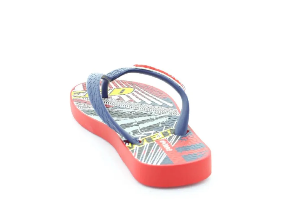 Super smart blå klip klap til drengene fra Ipanema med flotte røde detaljer på. Sandalen er lavet i det blødeste gummimateriale, der har stødabsoberende såler, og de er 100 % recycle. Sandalen fra Ipanema er super god til ferien, når der er meget varmt eller i svømmehallen. Sandalen er meget lille i størrelsen.
