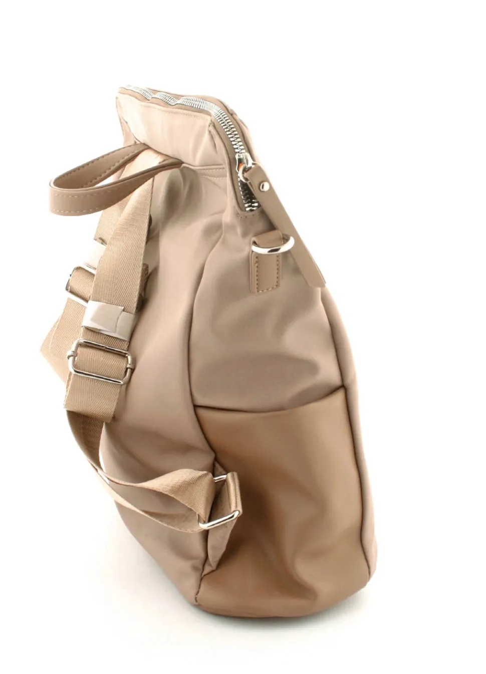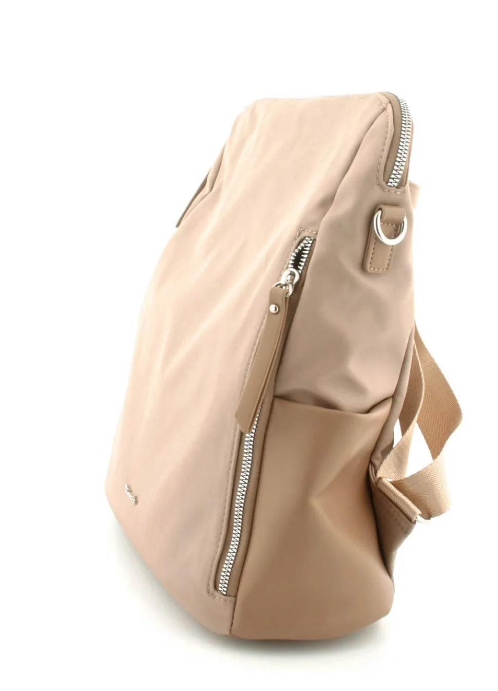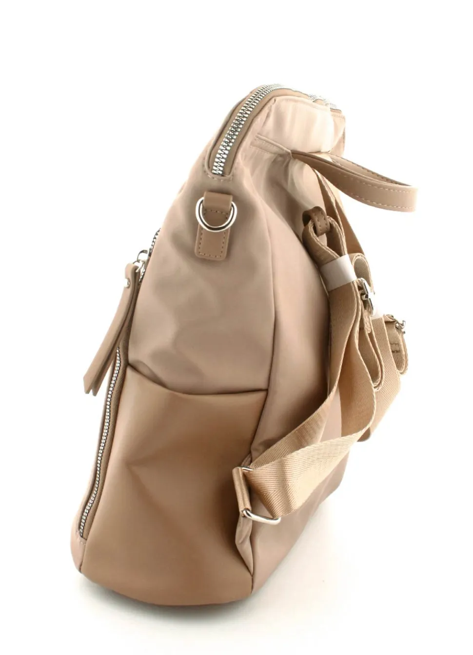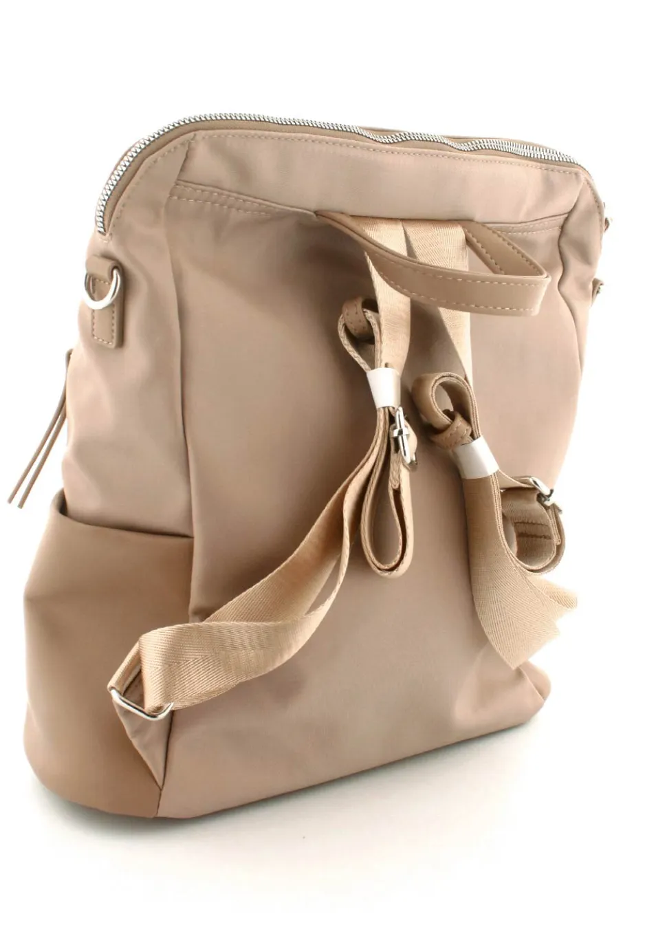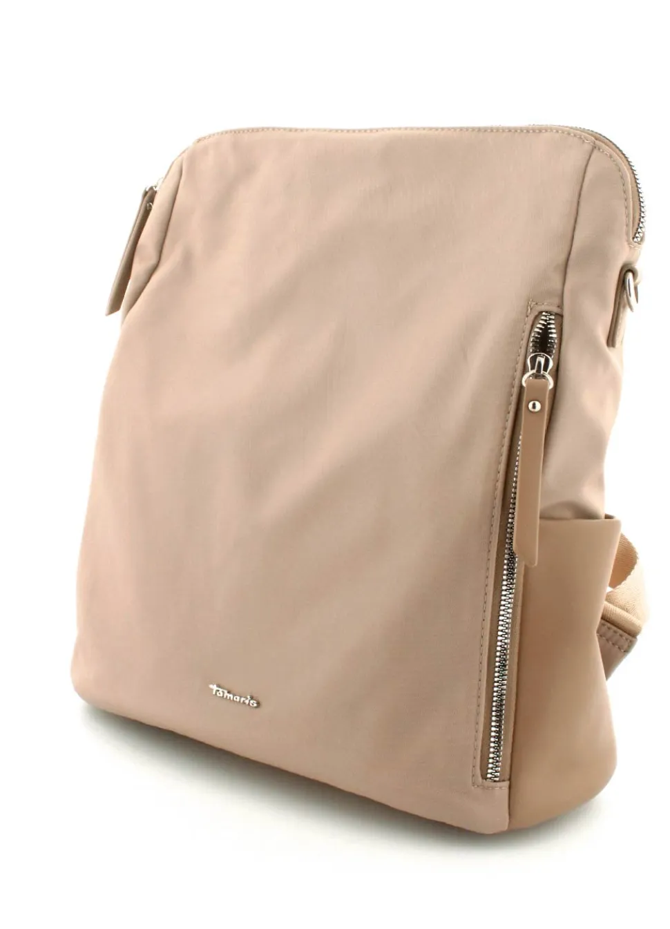 Super flot rygsæk fra Tamaris mosel Larissa i et flot sandfarvet nylonmateriale. Tasken kan også bruges som crossover, da der medfølger en lang regulerbar skulderrem, der kan klikkes på. Der er mange gode rum i tasken.