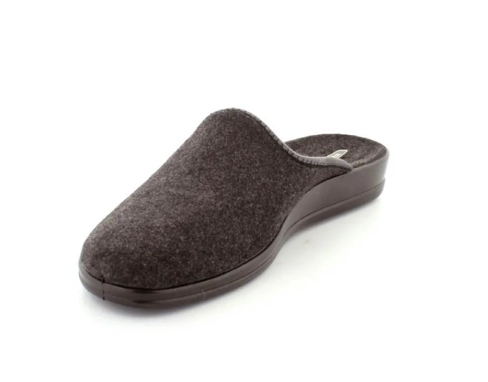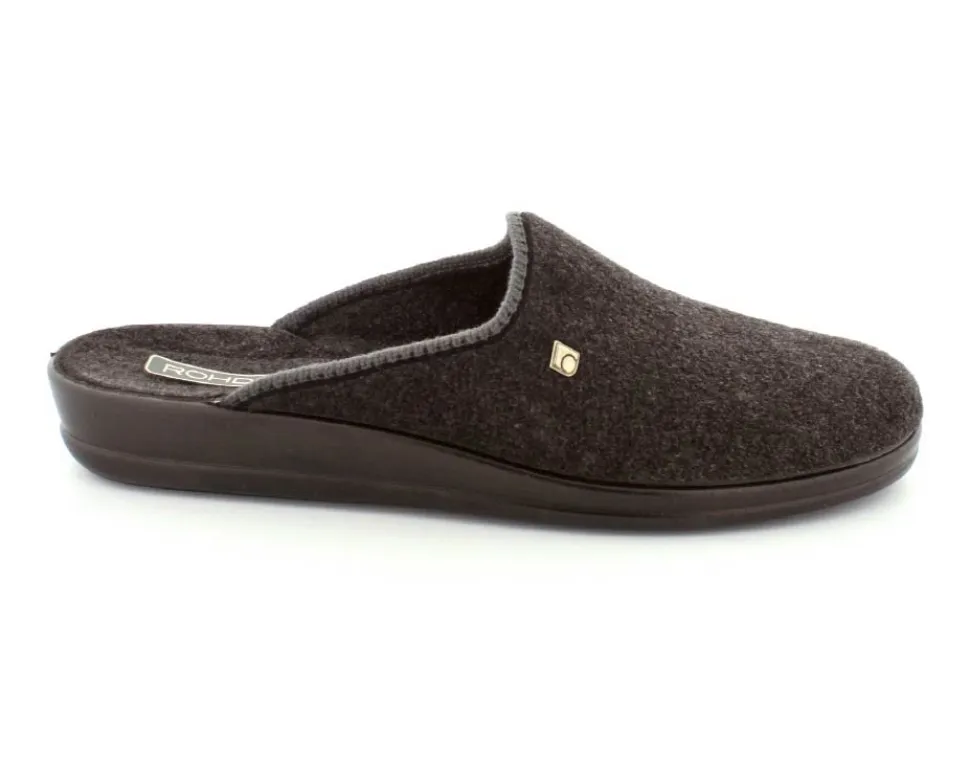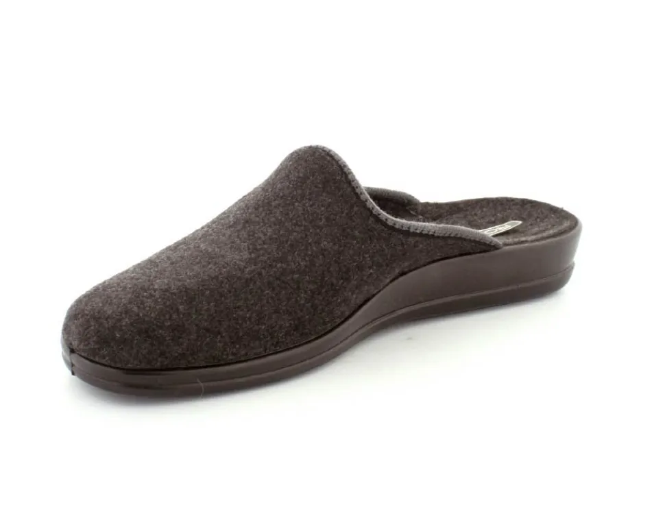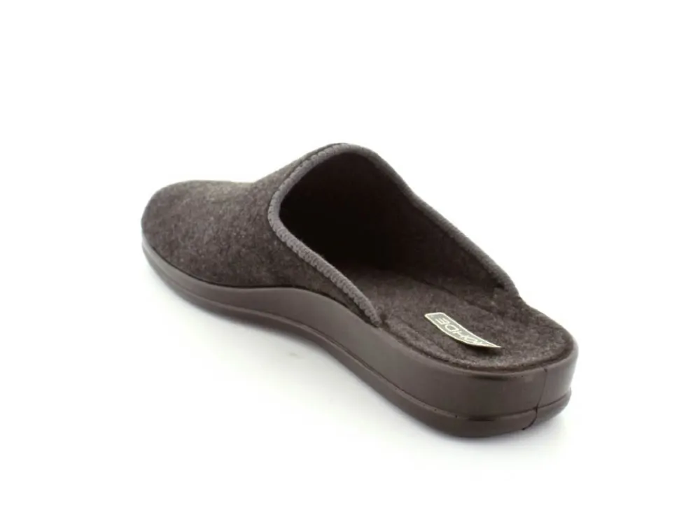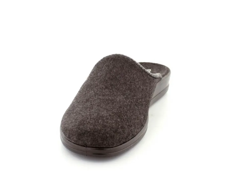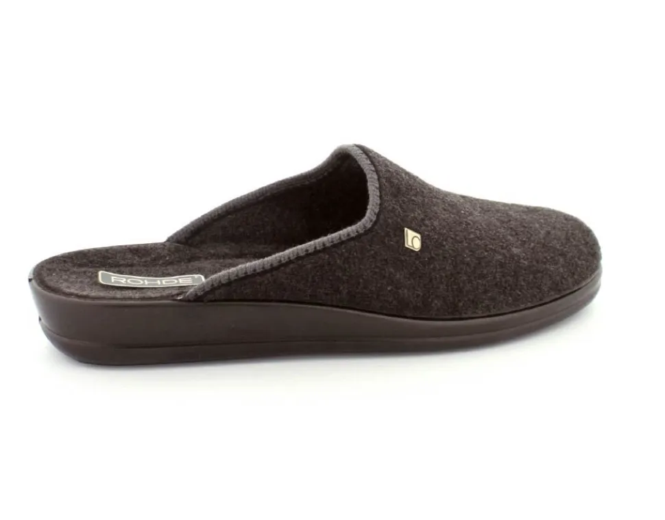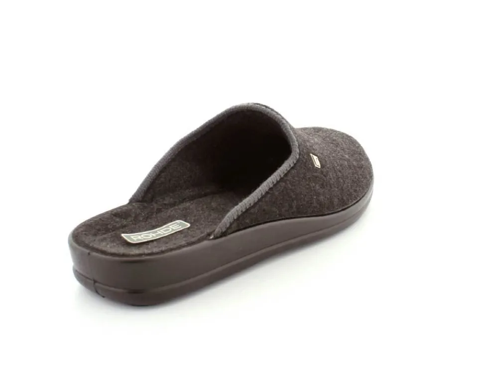 Klassisk hjemmesko fra Rohde i mørkegråt tekstil. Skoen er lige til at smutte i og har en blød fleksibel gummibund. Skoen er lidt til den lille side.
