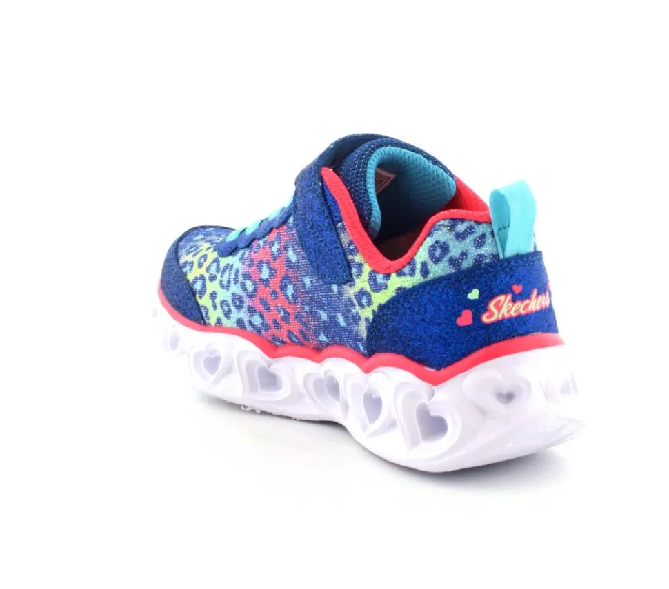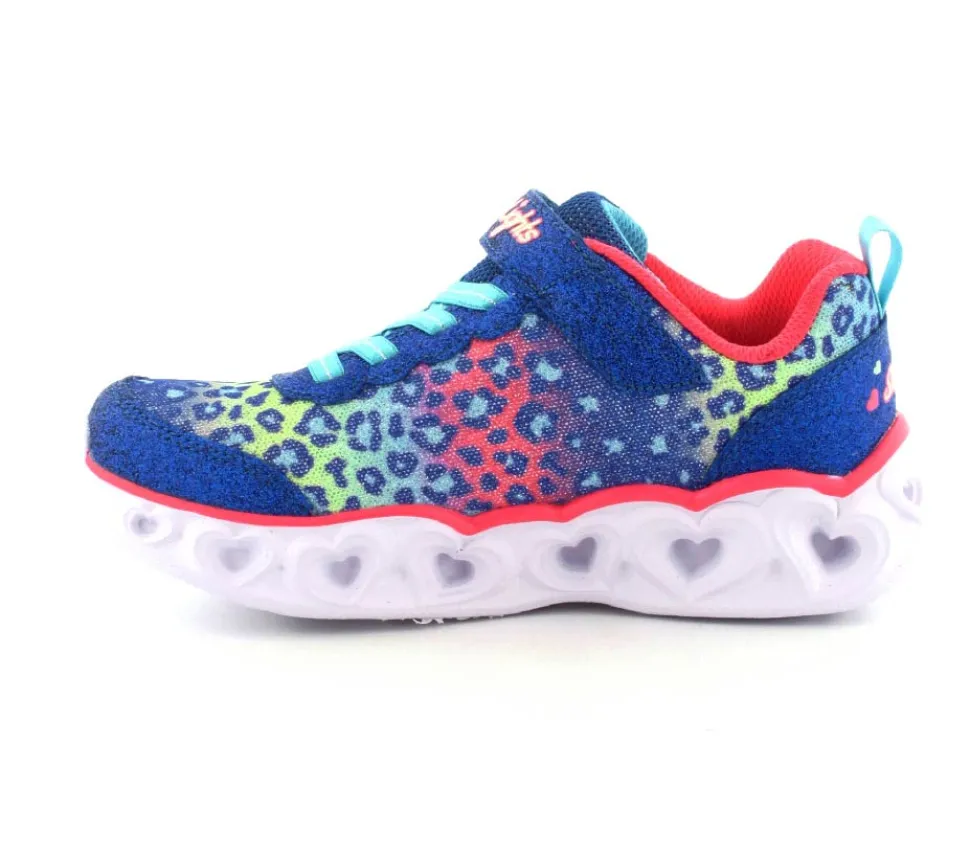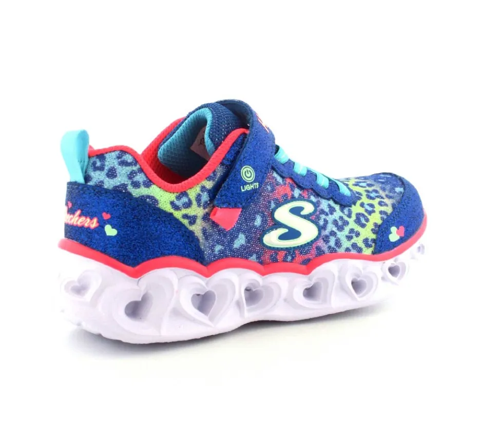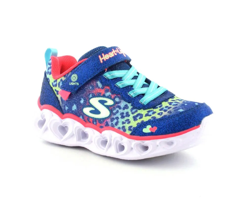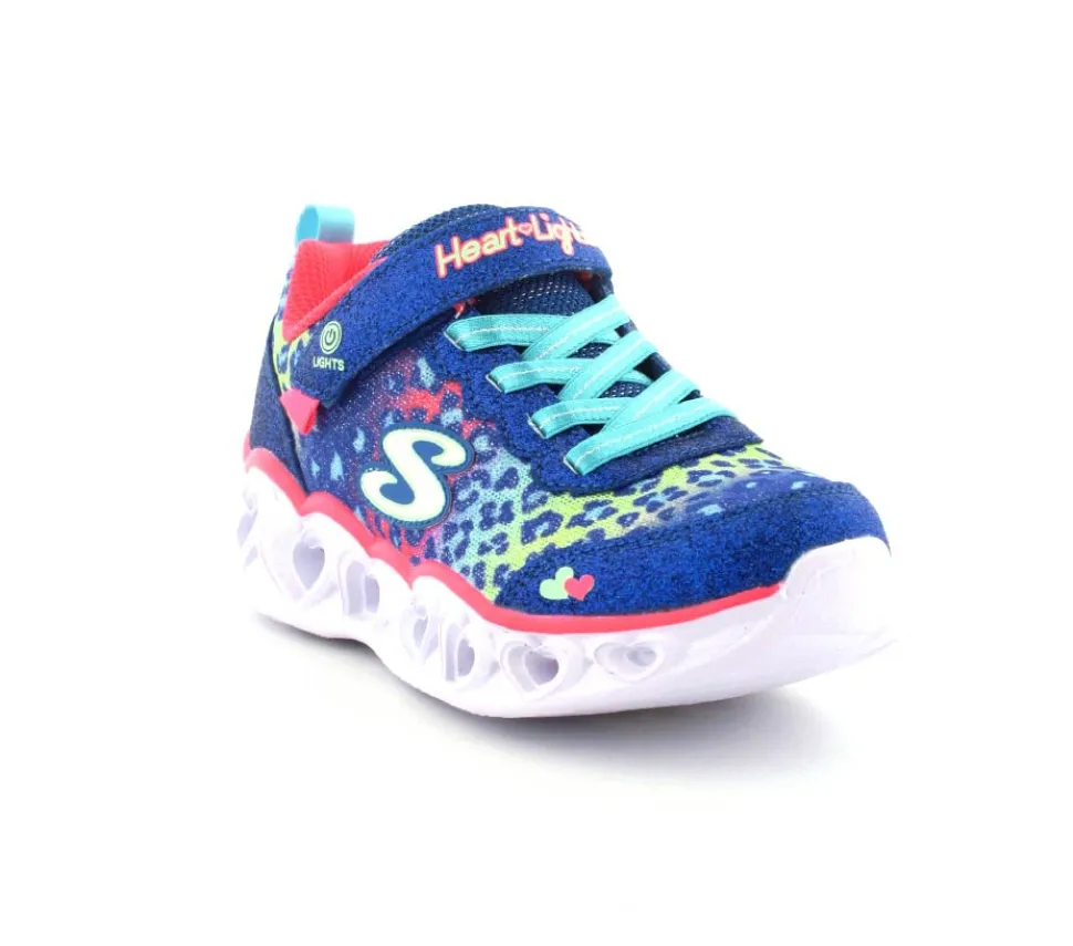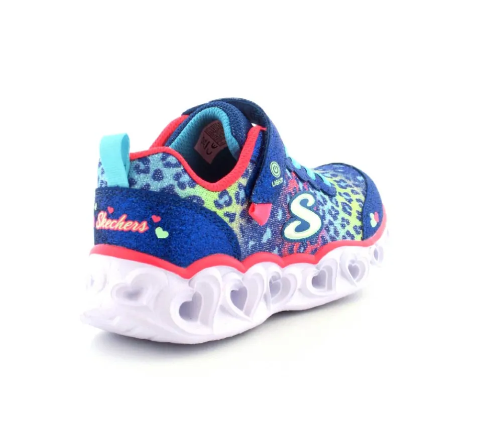 Super smarte blinkesko fra Skechers model Love Match, der blinker ved bevælgelse. Lyset kan slukkes for på remmen. Skoen er med elastiksnøre og velcrorem, og er en dejlig let sko. Den rummer godt og er stor i størrelsen, så tag gerne nummeret mindre end normalt.