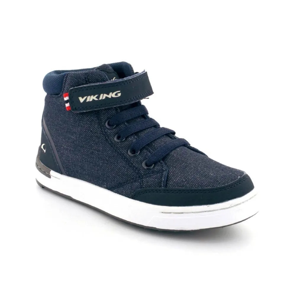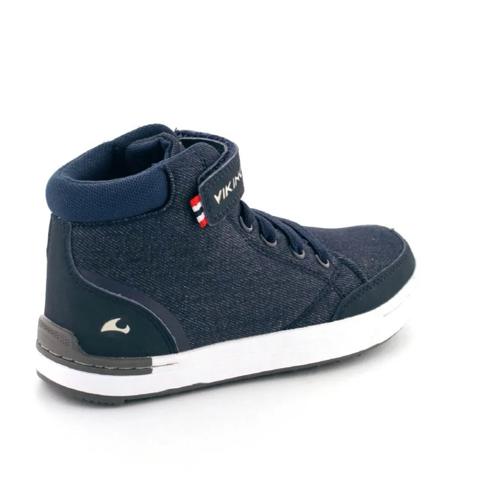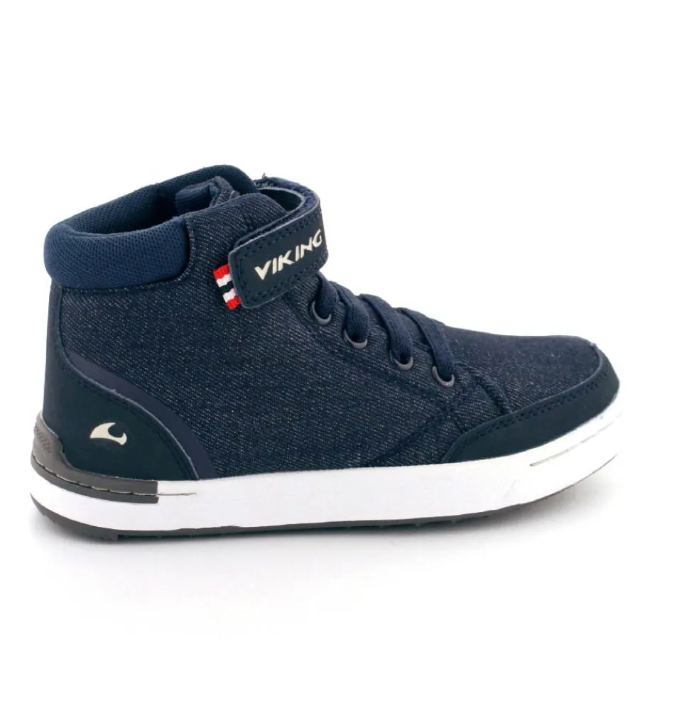 Super smarte overgangsstøvler fra Viking model Mark Mid i mørkeblåt kanvas. Støvlen er let at komme i med en regulerbar velcrorem og elastiksnøre. Der er god fast hælkappe og aftagelige indlægssåler. Støvlen fra Viking har lækre bløde gummisåler under bunden og kan vaskes på 30 grader skåneprogram.