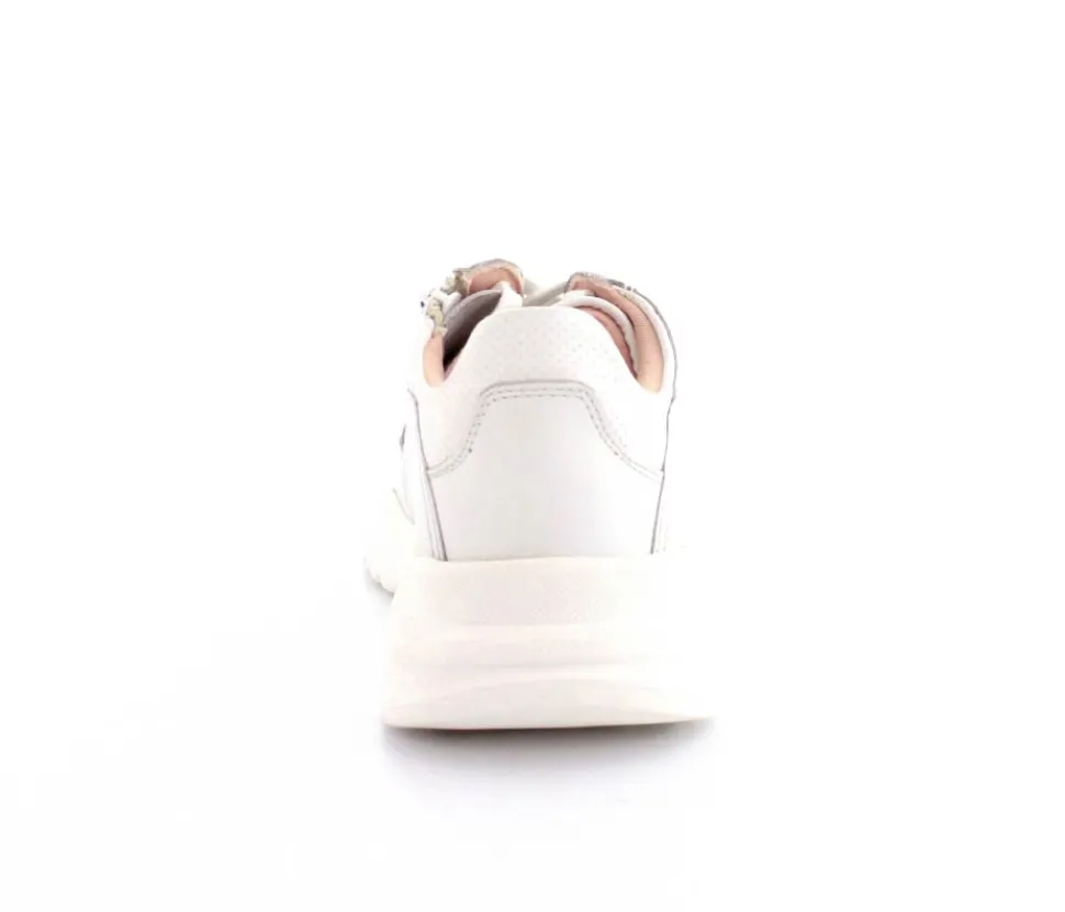 Super smarte hvide sneaks fra Copenhagen Shoes model Mia. Skoen er lavet i skind og til de store skolepiger. Den er med snørebånd, men der er lynlås på indersiden, så den er nem at komme i. Bløde fleksible gummisåler under hele bunden.