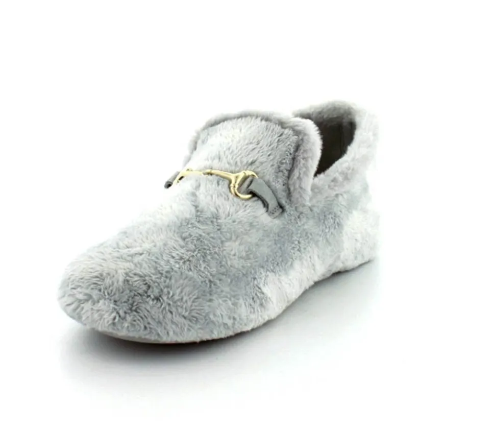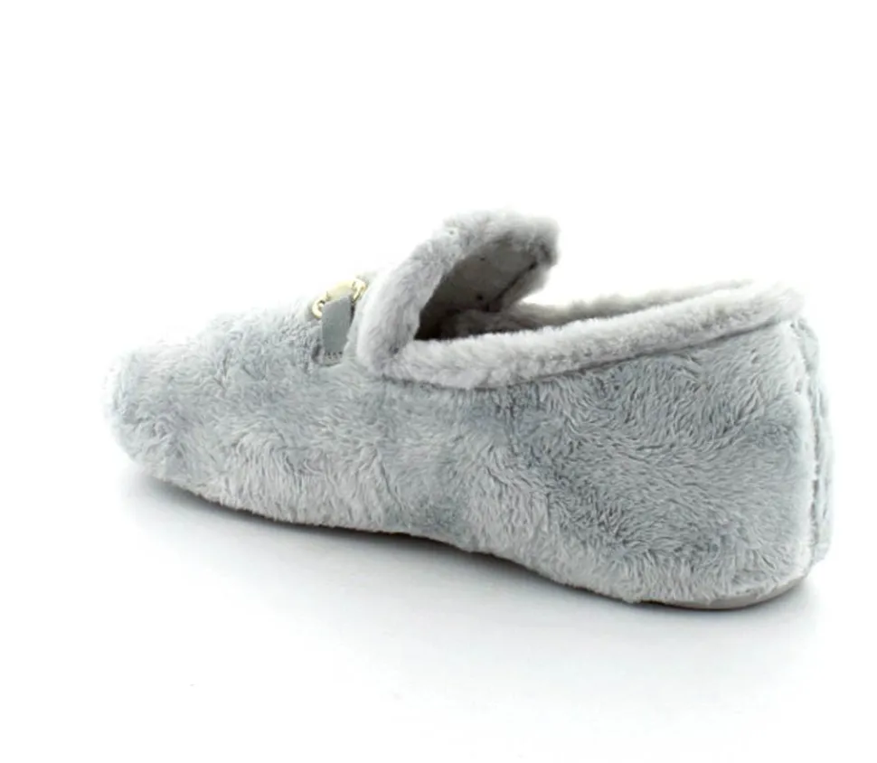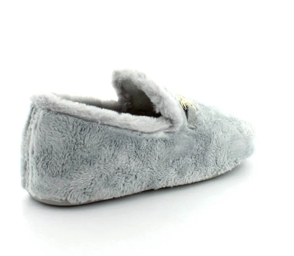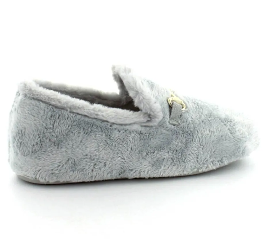 Super søde og fine hjemmesko fra Bella Moda i lyseblå plys. Dejlig bløde og lige til at trække på. Blød plysbund og gummisåler under hele bunden. Smart med guldbidsel på fronten.