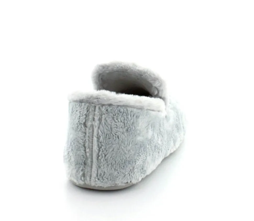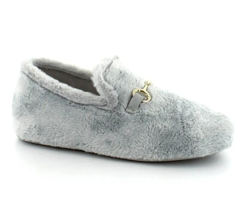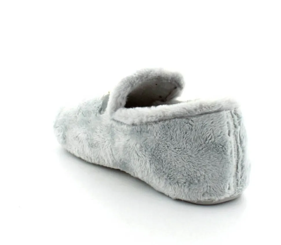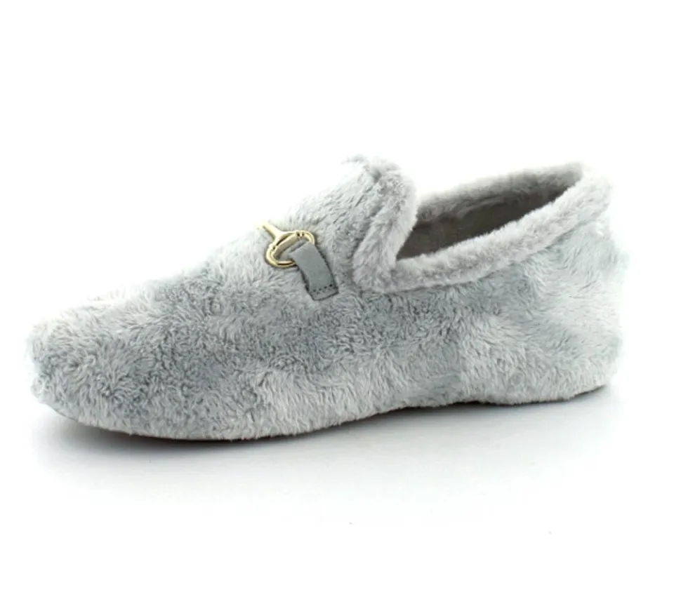 Super søde og fine hjemmesko fra Bella Moda i lyseblå plys. Dejlig bløde og lige til at trække på. Blød plysbund og gummisåler under hele bunden. Smart med guldbidsel på fronten.