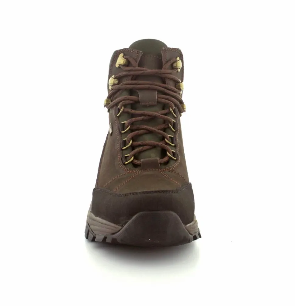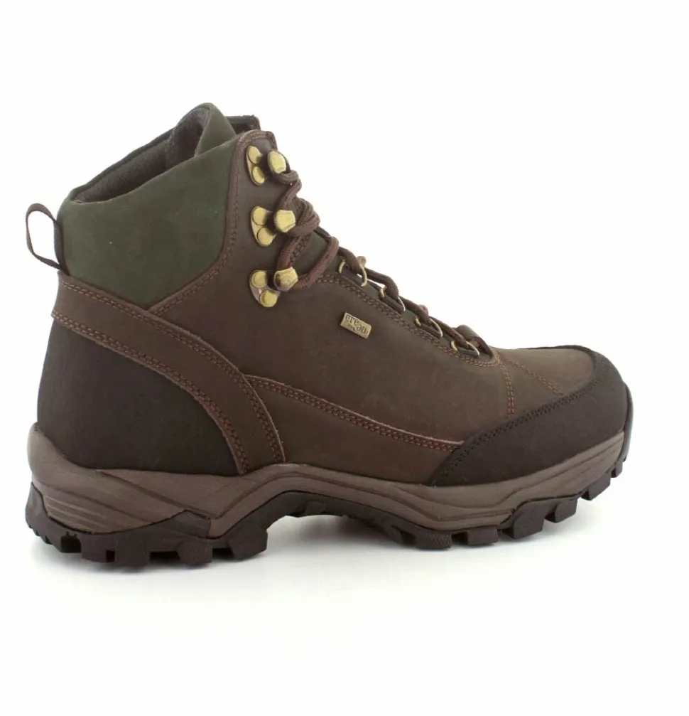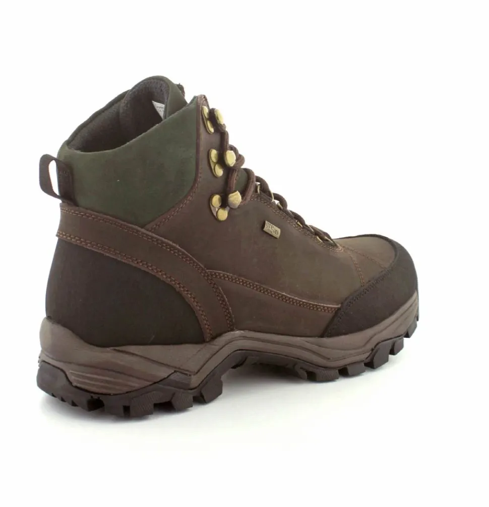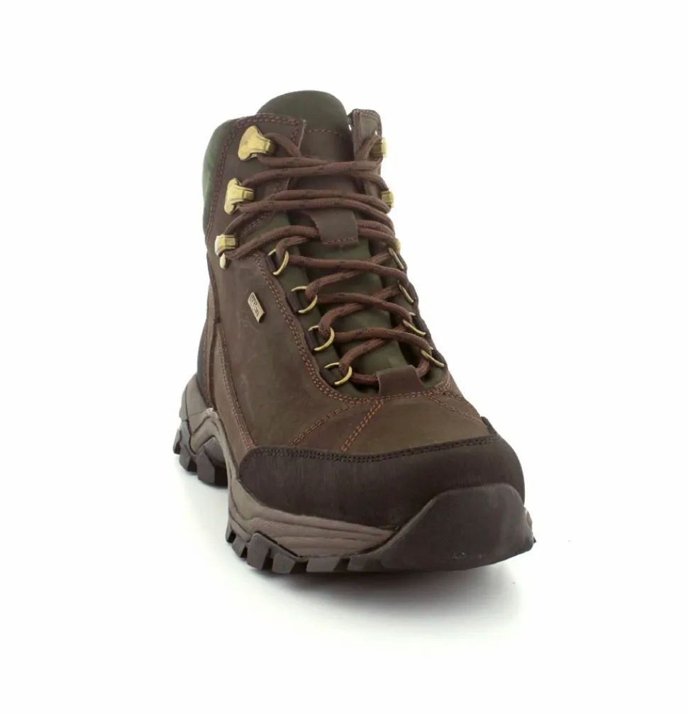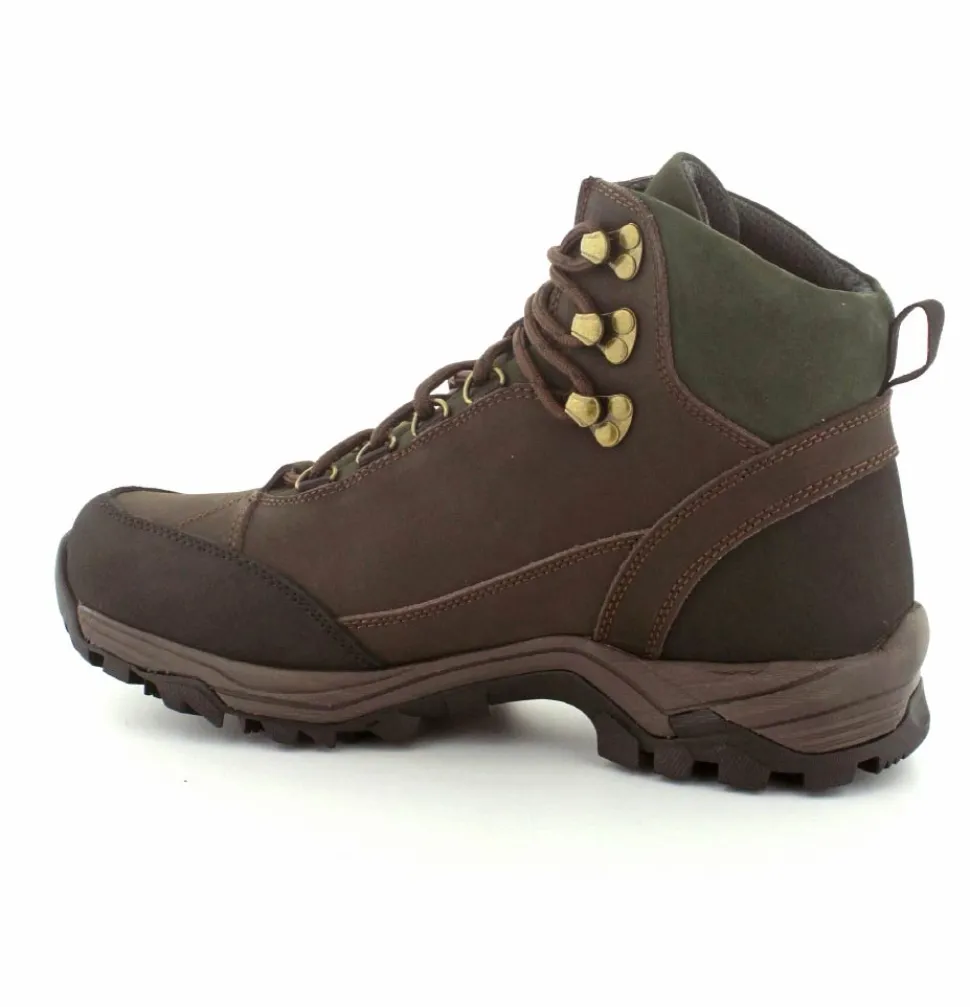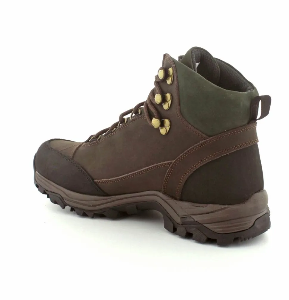 Super god vandrestøvle fra Green Comfort model North Outdoor. Støvlen er en snørestøvle i farven mørkebrun og mørk grøn. Den er lavet i skind og er med Tex-membran, så den også er vandtæt. Den aftagelig indlægssål er med ekstra svangstøtte. Gode solide gummisåler under hele bunden med god profil.
