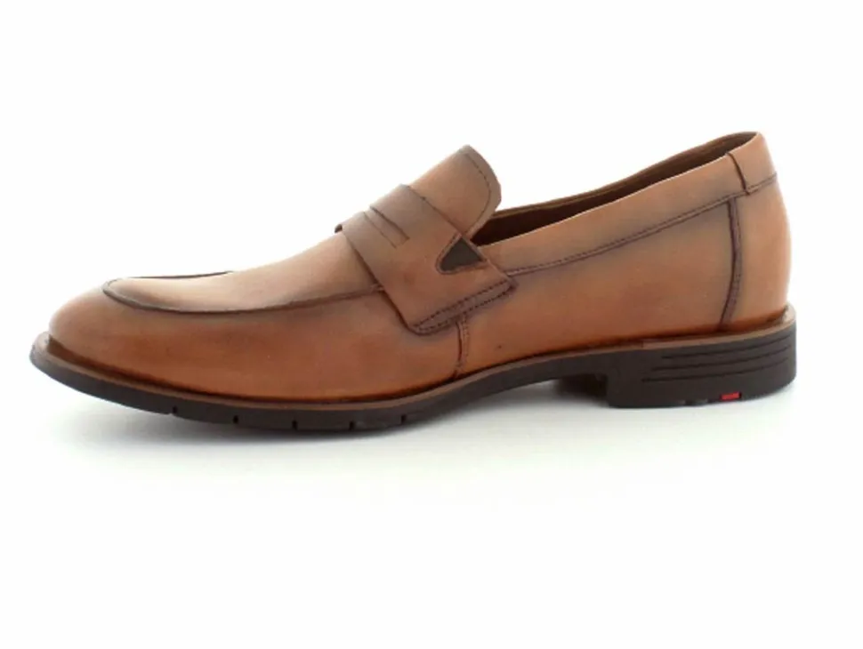 Super smarte loafers fra Lloyd model Otis i et flot cognacfarvet skind. Skoen er let og blød at træde i og har et rigtigt flot look. Skoen er til den store side.