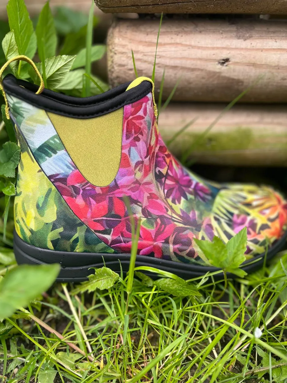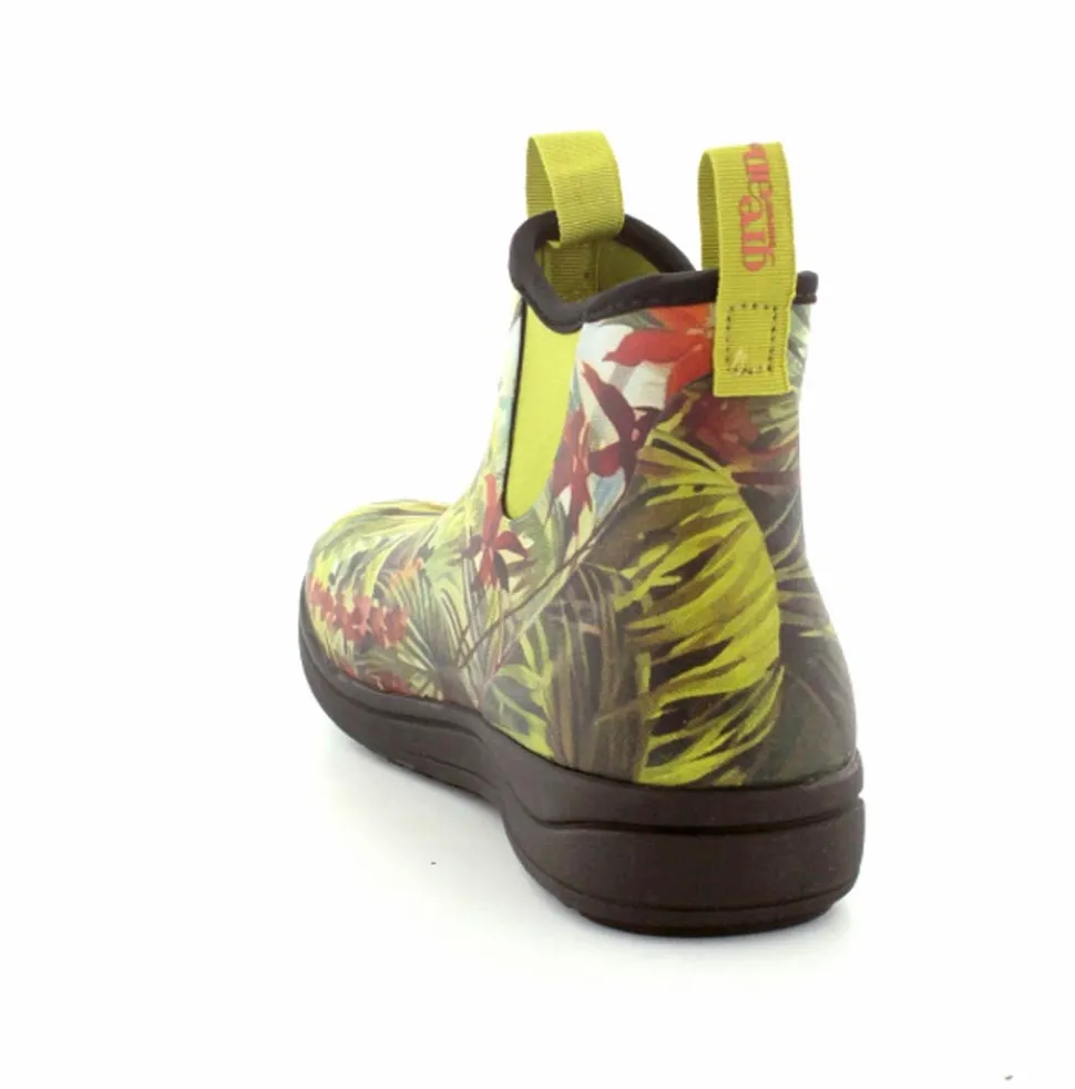 Super god gummistøvle fra Green Comfort til traveture med hunden. Modellen hedder Rain Hibiscus og er i mange forskellige farver. Nem at komme i med neopren foer og naturgummi udvendigt. Gode travesåler og en aftagelig indlægssål med ekstra svang og stødabsobering. God rummelig i bredden.