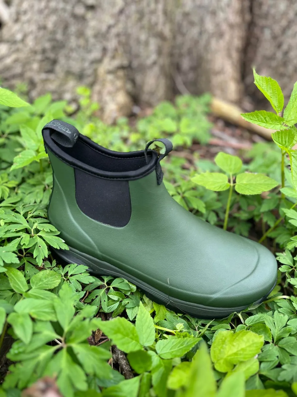 Smarte grønne og korte gummistøvler til herre fra Green Comfort model Rain. Støvlen er med neopren indeni og lige til at trække på. Rigtig gummi og lækre bløde indlægssåler med ekstra svang indeni. Super gode til gåture med hunden.