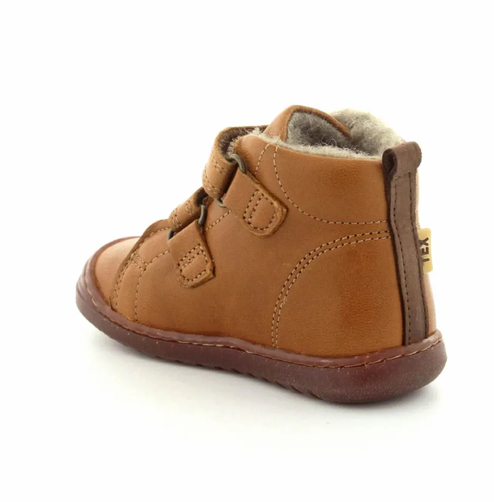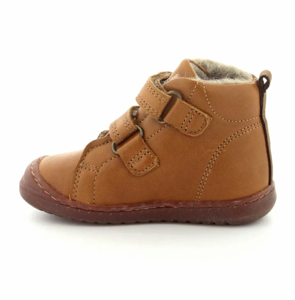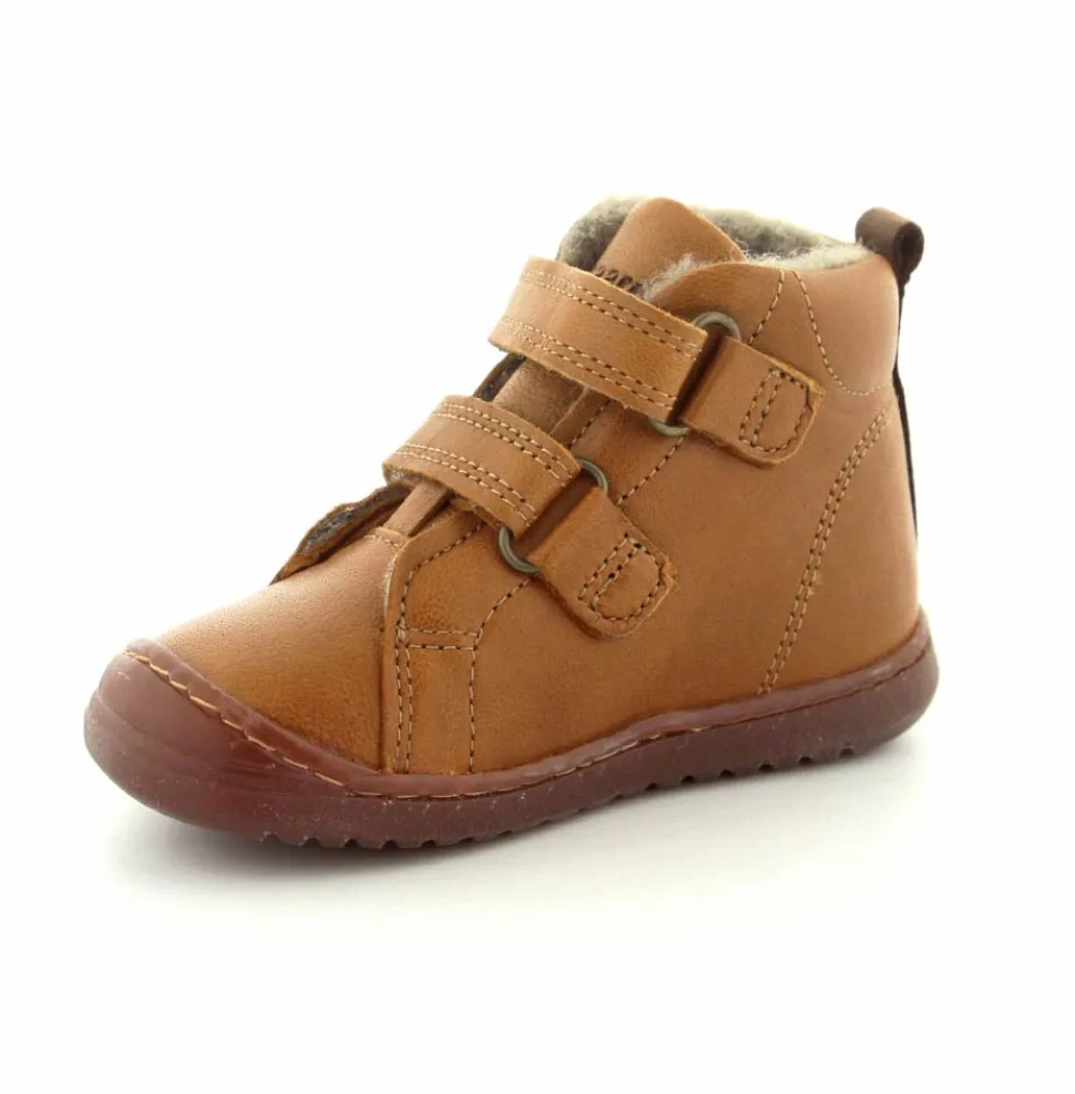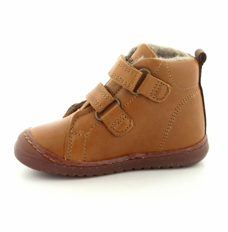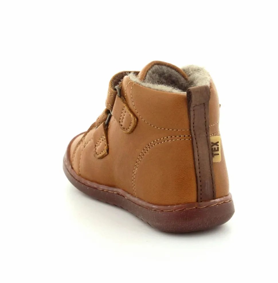 Super god vinterstøvle til de små fra Bisgaard model Rudi Tex. Støvlen er i en flot cognacfarvet skind og der er to regulerbare velcroremme, så den er nem at indstille. Støvlen er med tex membran og uldfoer, så den kan klare sne og kulde. Støvlen støtter godt op om barnets fod og ankel og der er bløde og fleksible gummisåler under hele bunden og op på snuden.