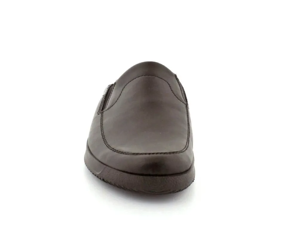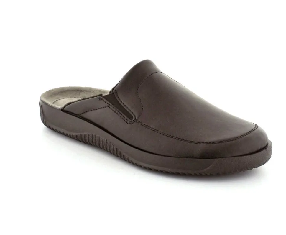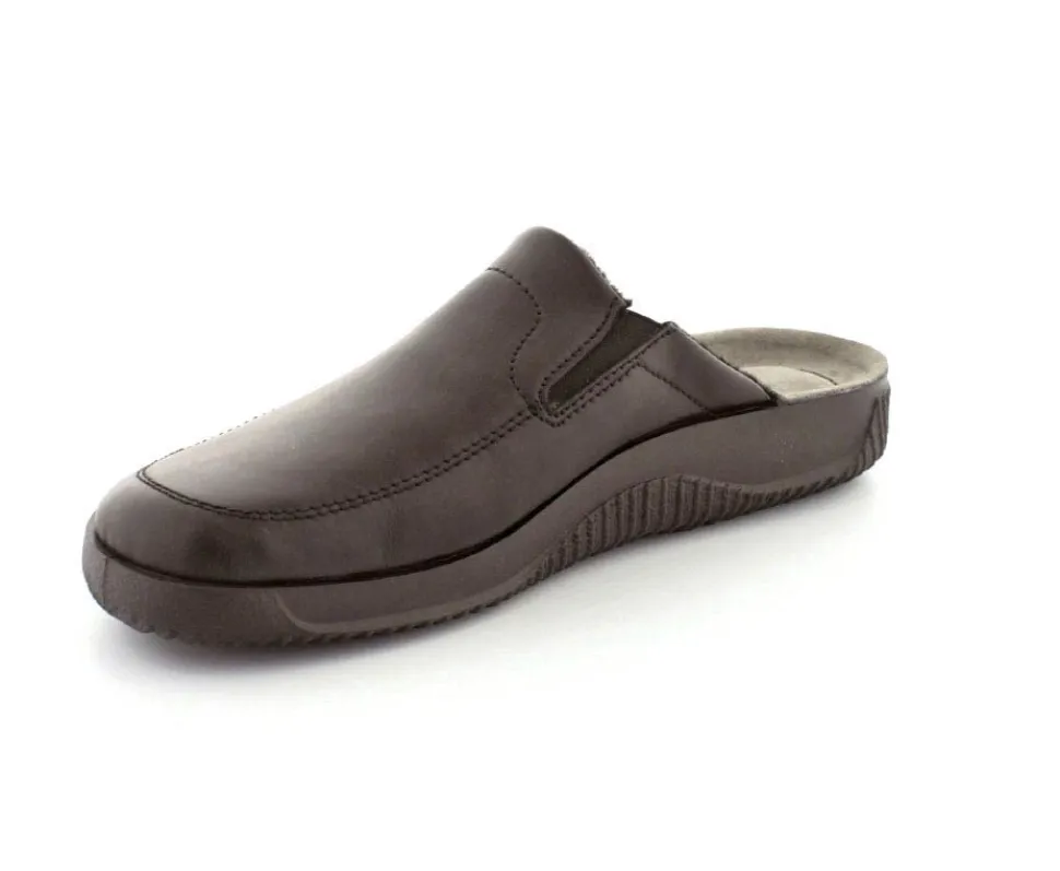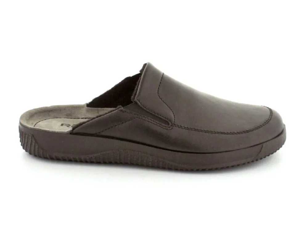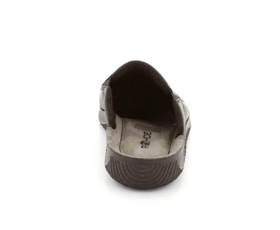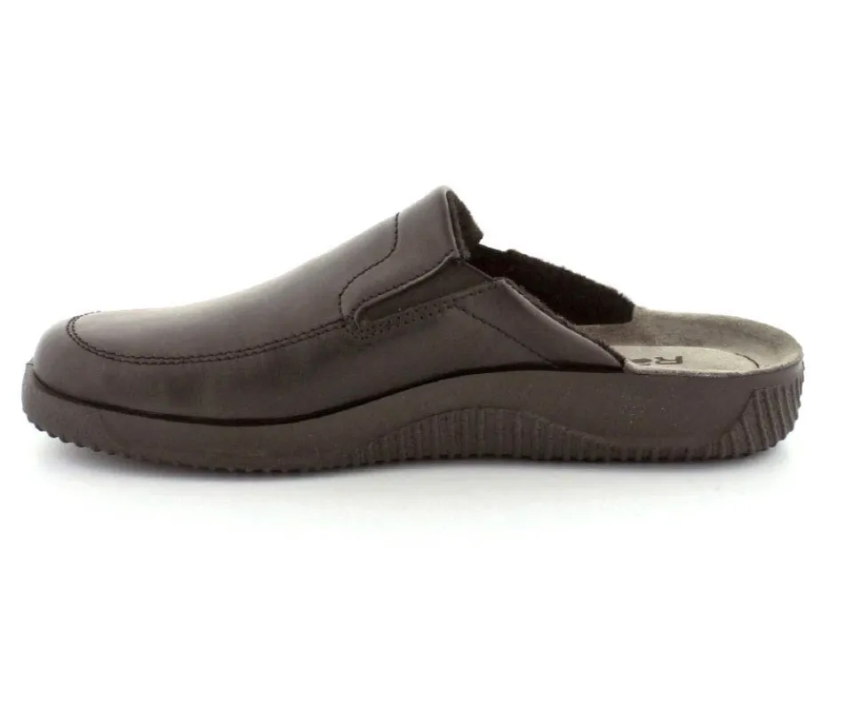 Rigtig god hjemmesko fra Rohde i sort skind. Modellen er en slippers model, så den er lige til at smutte i. Den rummer godt i bredden og har elastik på begge sider af vristen, så den kan give sig efter behov. Hjemmeskoen fra Rohde er varmt foeret indeni og har ruskindssåler i bunden. Blød og lækker at gå på. Der er gode solide gummisåler under hele bunden.