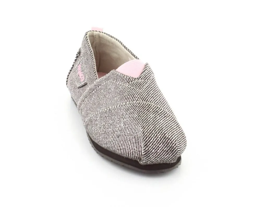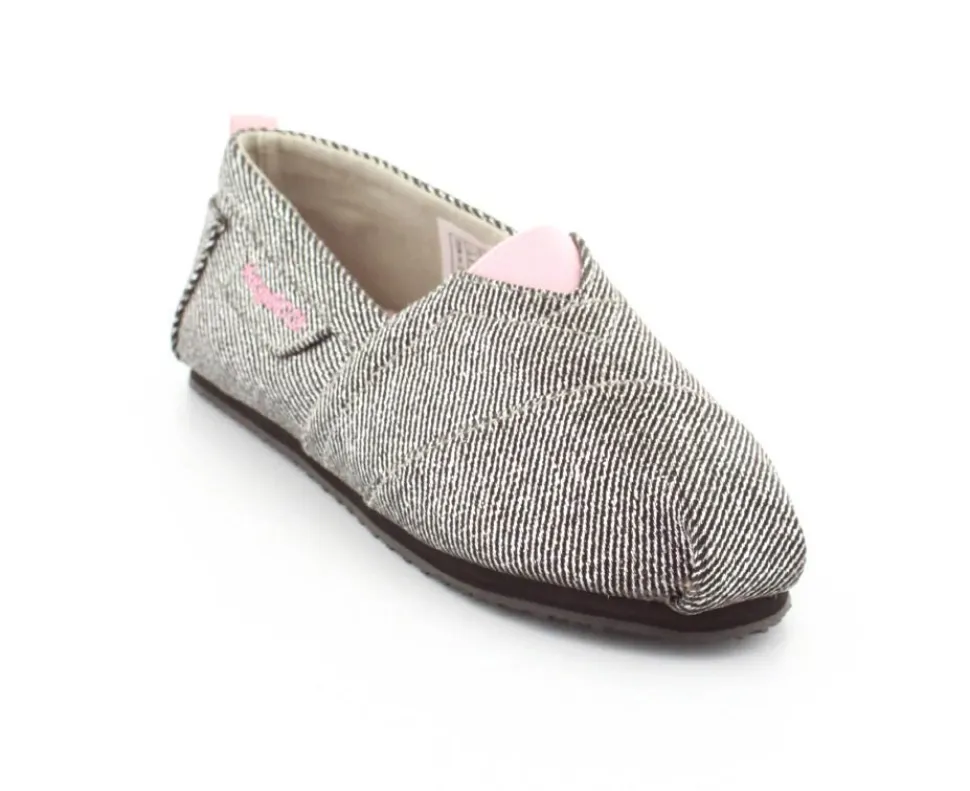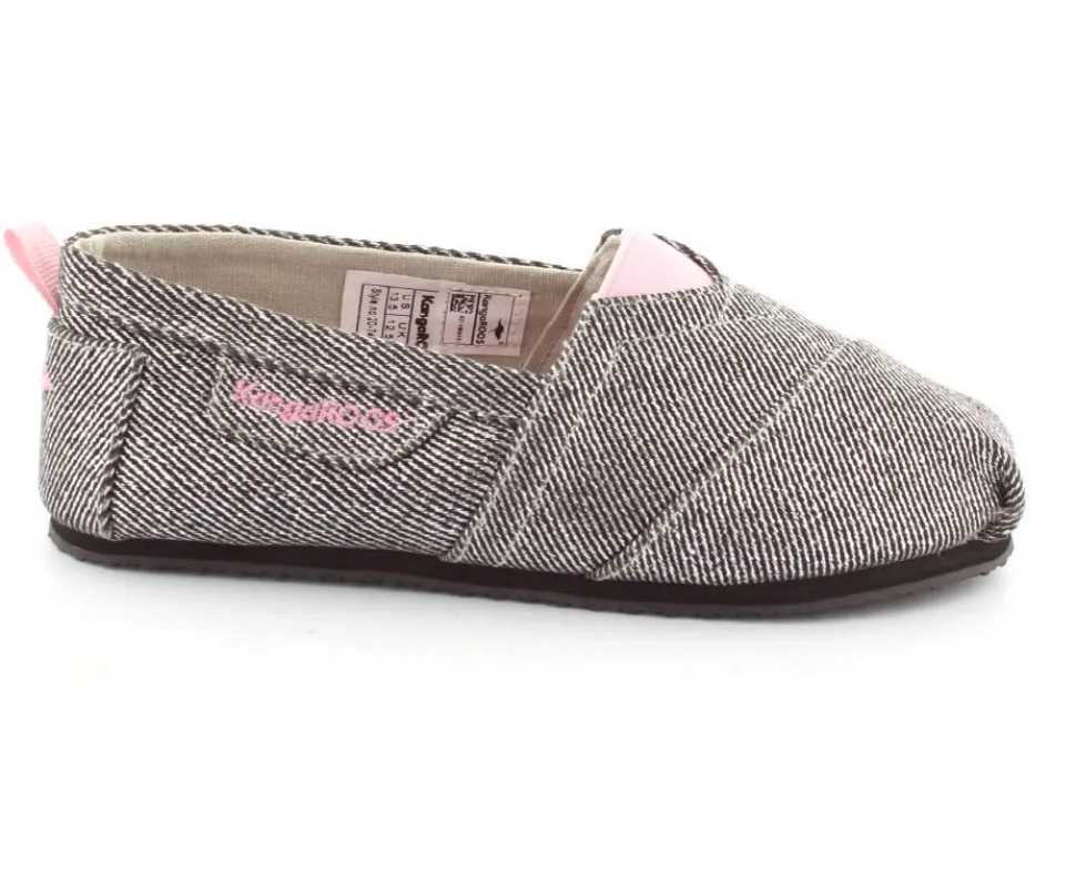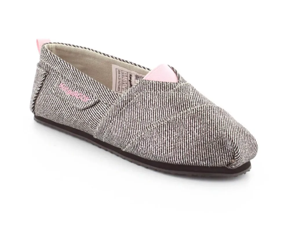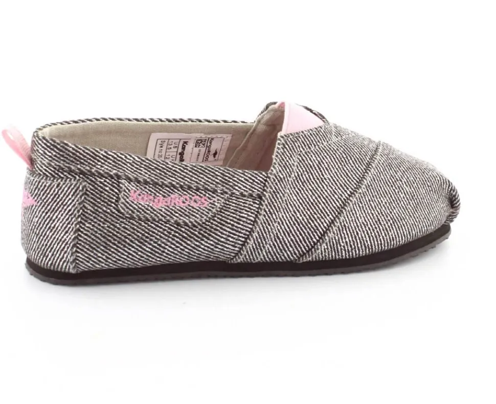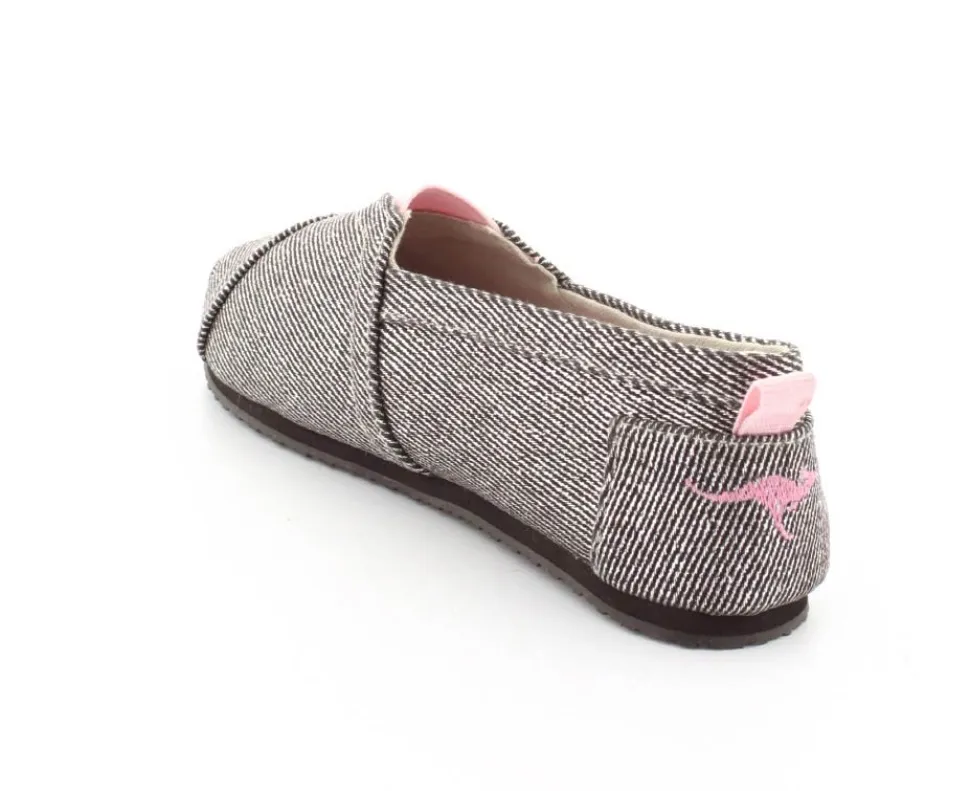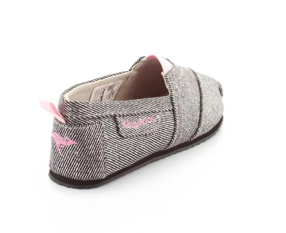 Super fin og smart sko fra Kangaroos, som både kan bruges som sommersko eller hjemmesko. Skoen er lige til at smutte i og lavet i sølvfarvet kanvas med rosa farvet elastik ved vristen. Blød sål indvendigt og gummisåler under bunden.