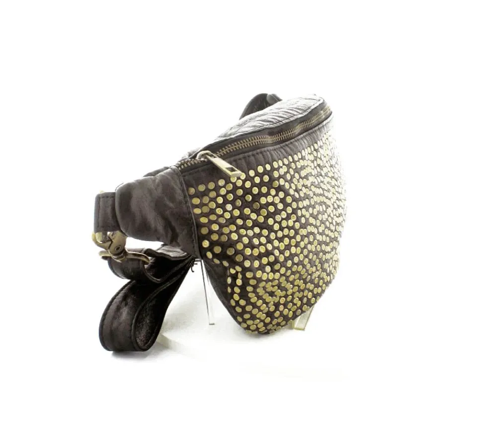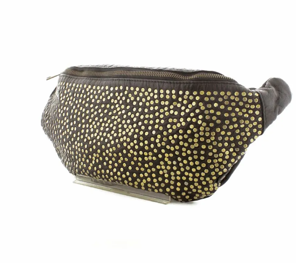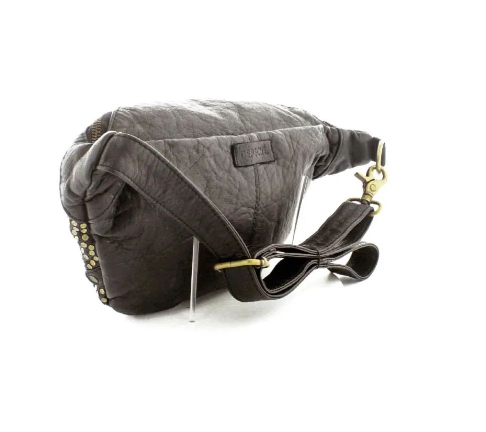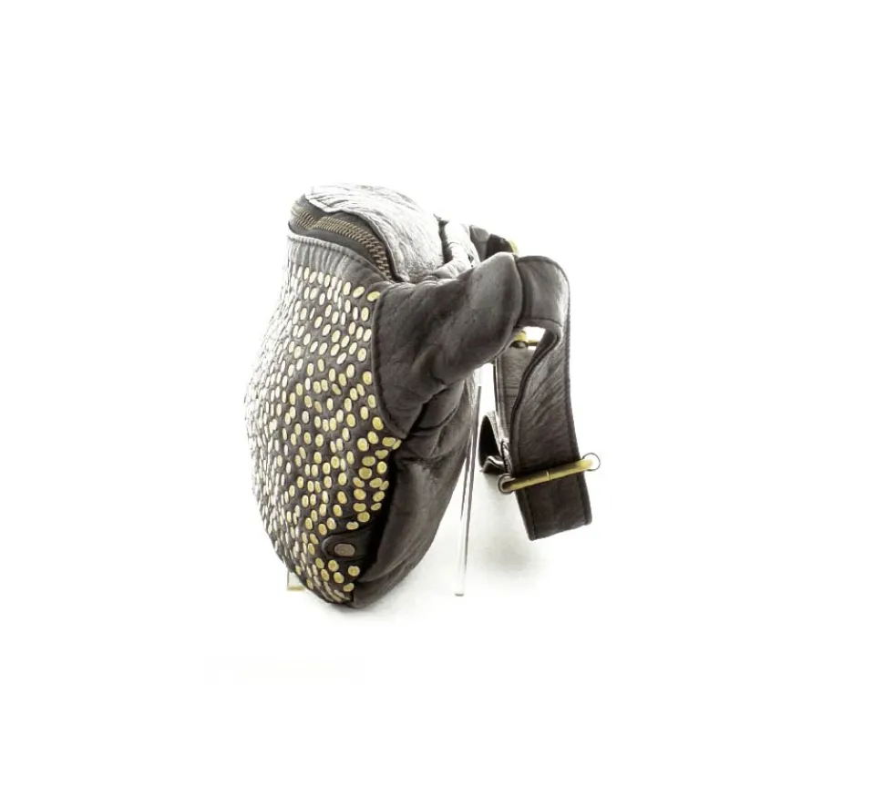 Super lækker bumbag fra Depeche i sort skind med guldnitter på. Tasken er en af de størrere modeller, så der er god plads indeni og med ekstra små rum og lynlåslomme. Tasken har en regulerbar skulderrem, så den både kan bruges som crossover, på ryggen og som bæltetaske.