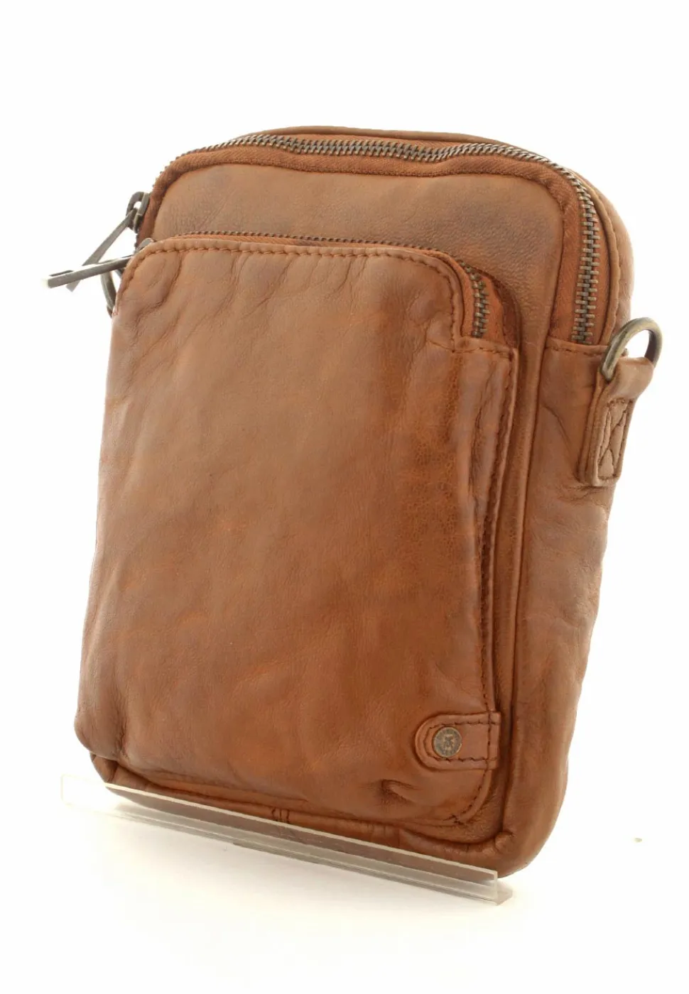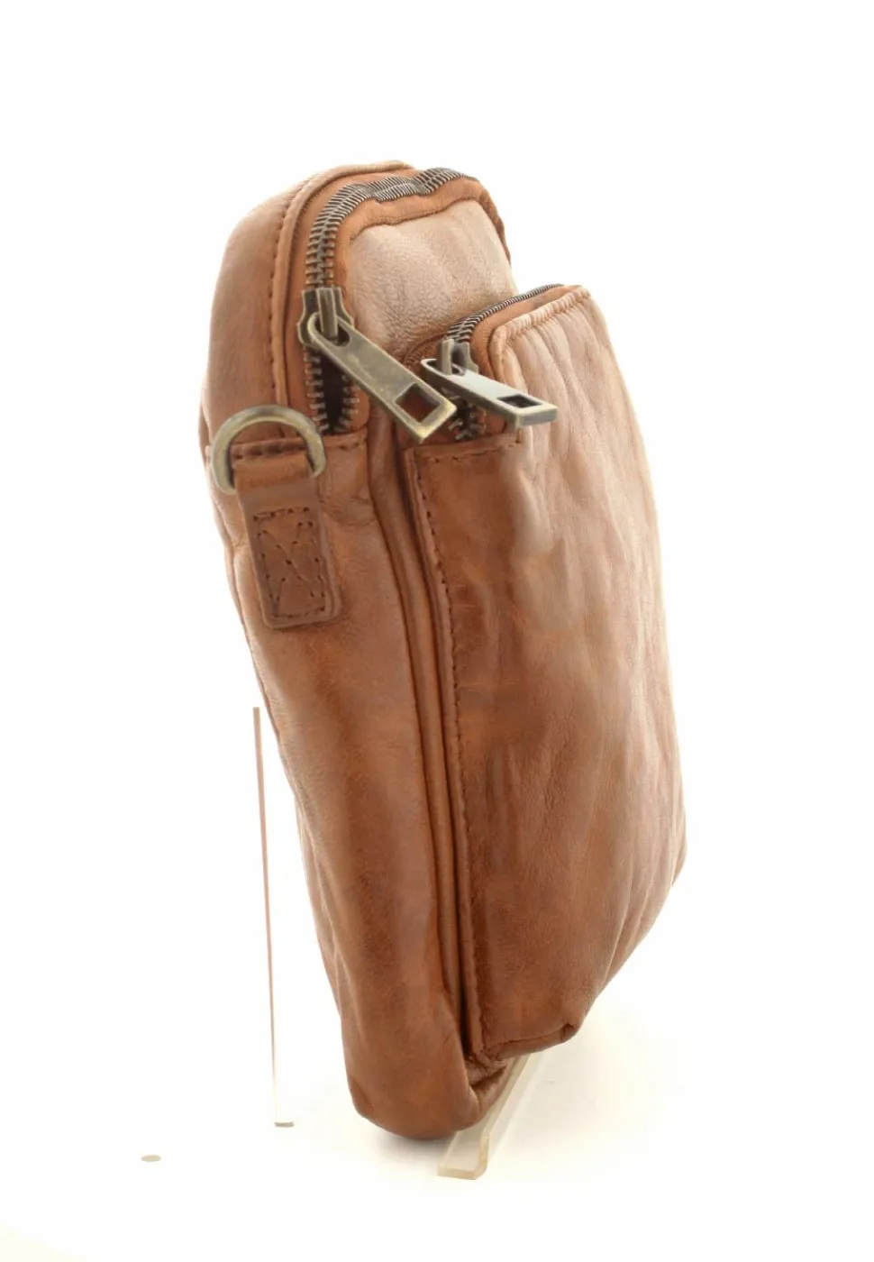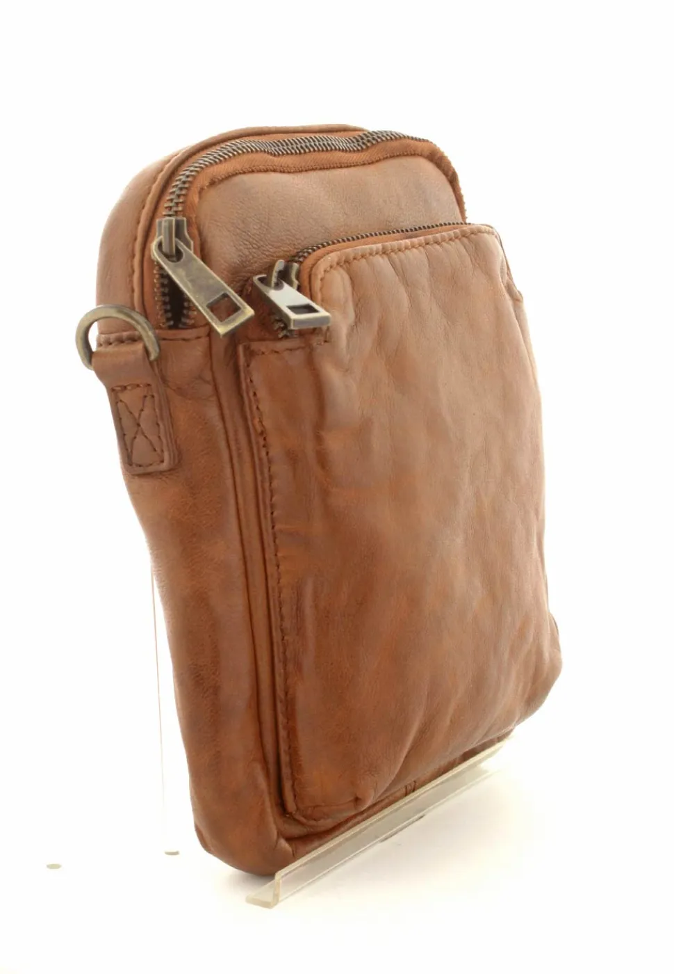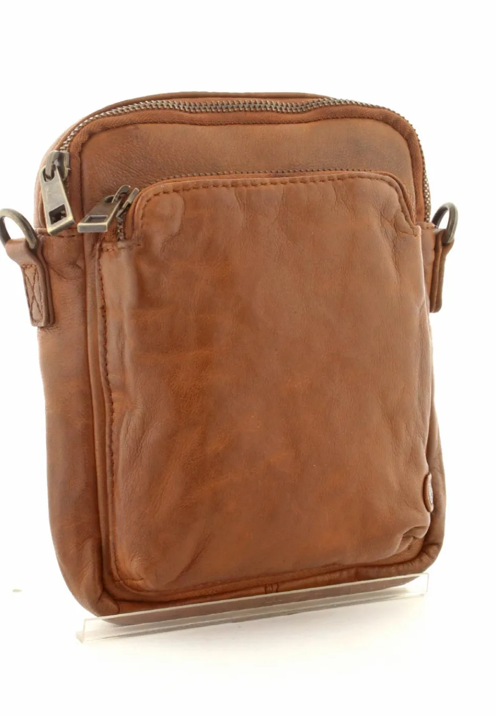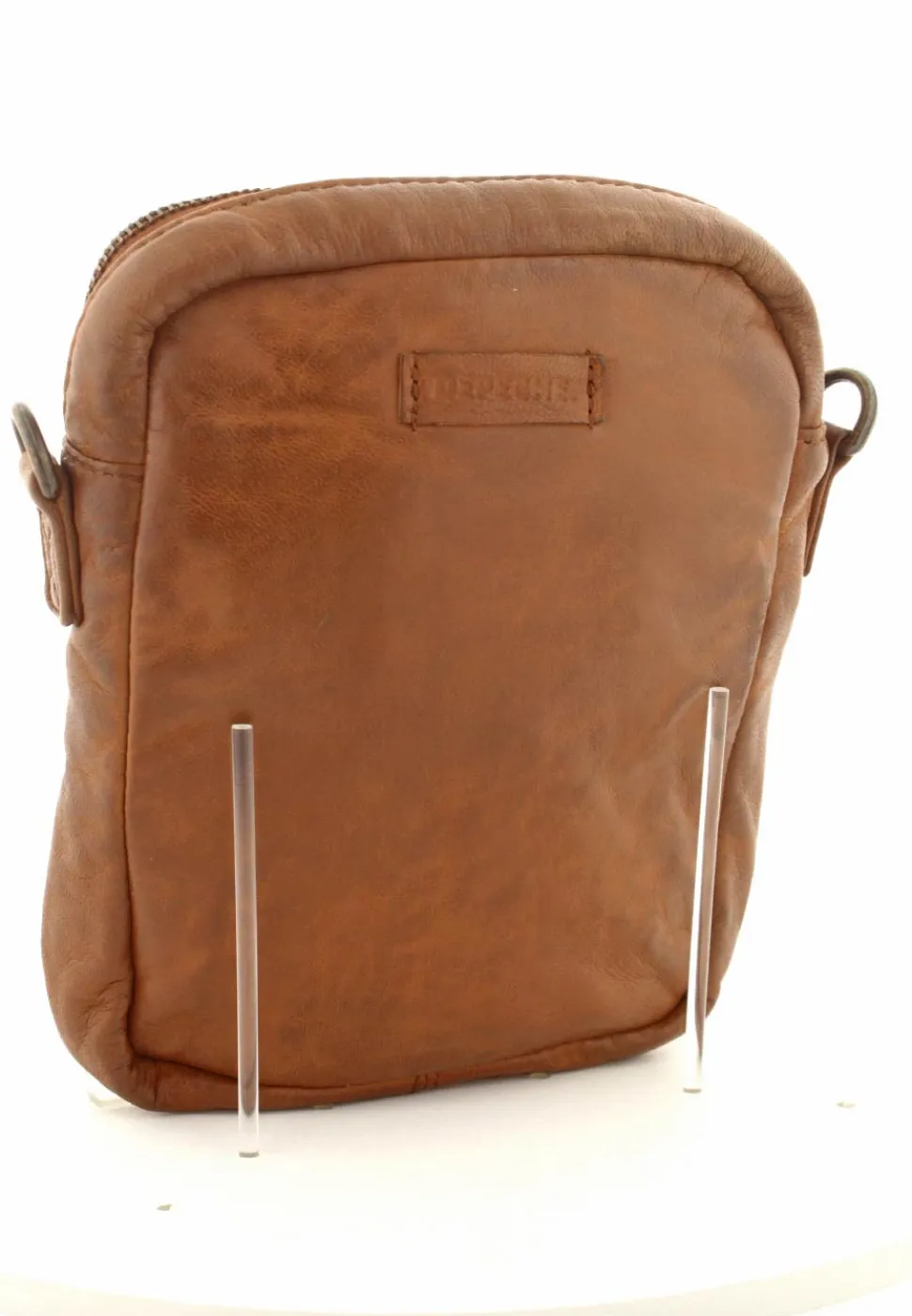 Super flot mobiltaske i cognac farvet skind fra Depeche. Tasken har en god størrelse og to gode lynlåsrum. I det store rum er der også to små rum. Der er en lang regulerbar skulderrem, så den kan bruges som crossover.