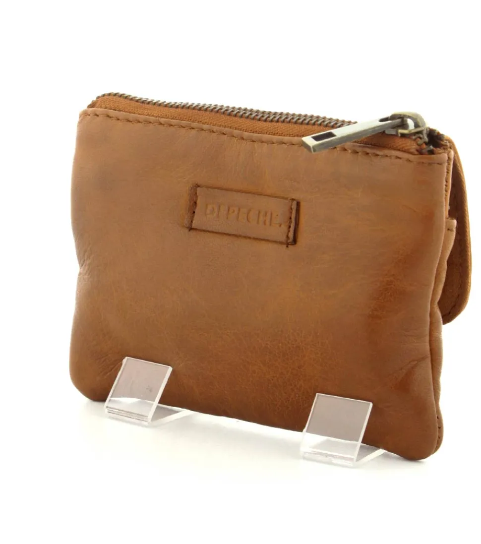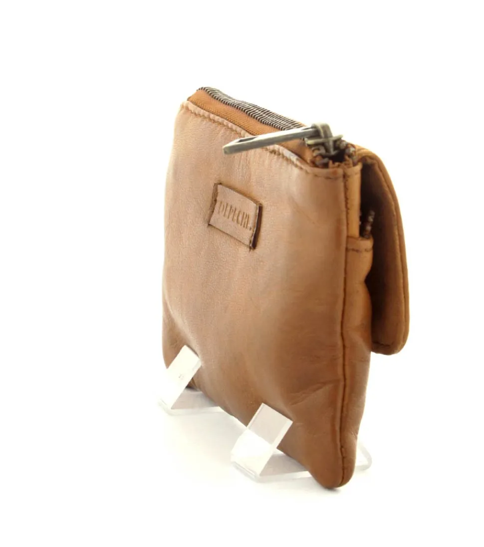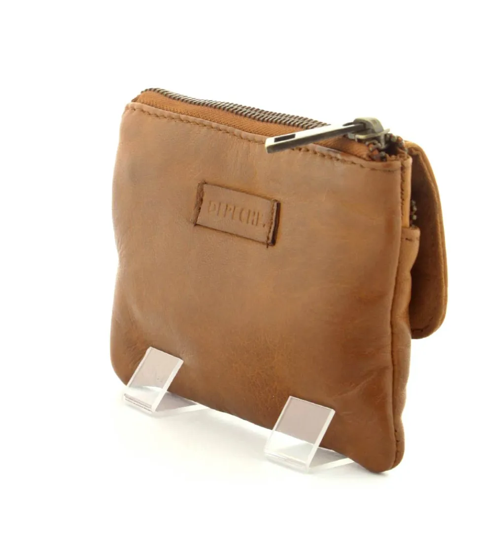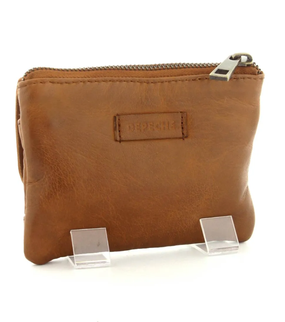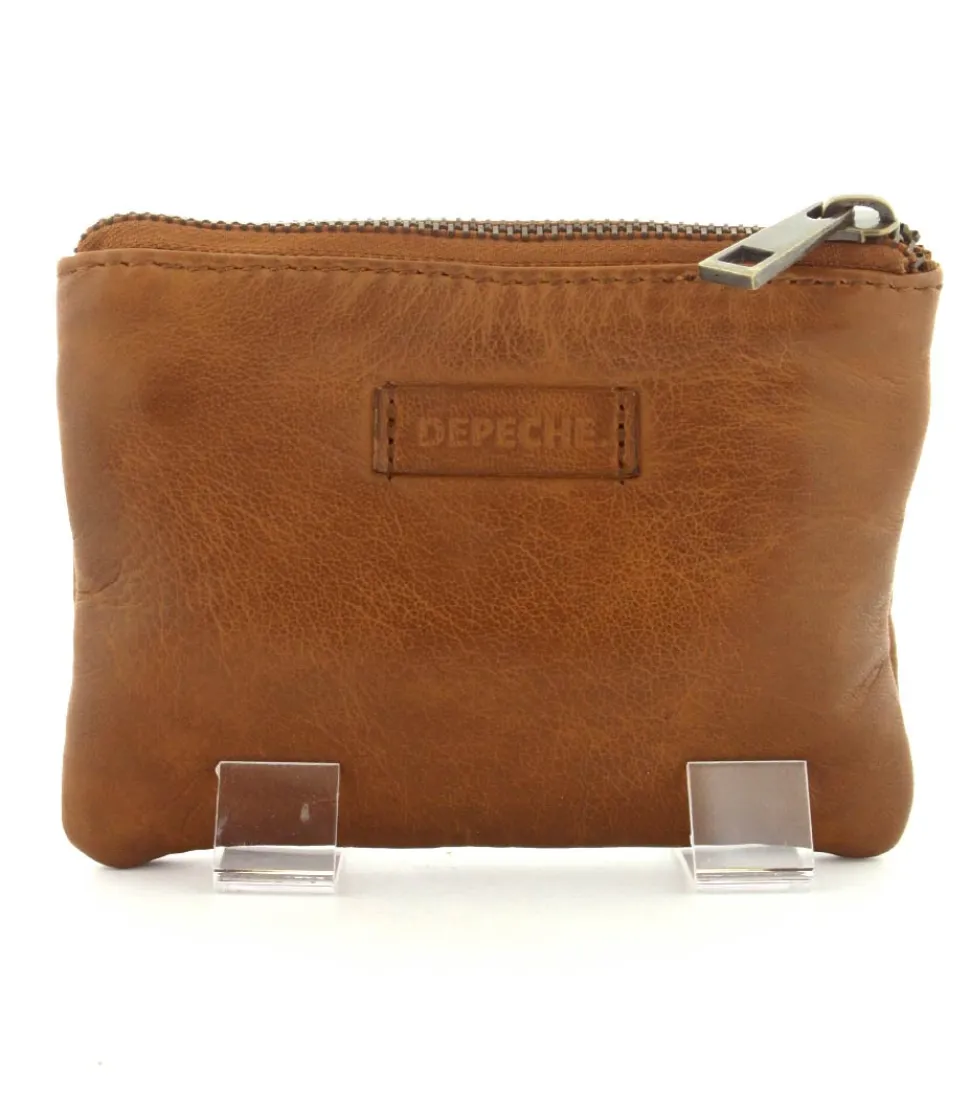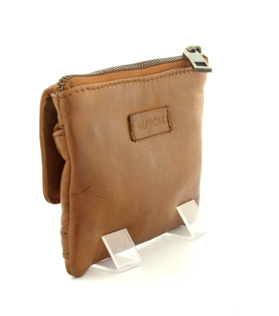 Smart lille skindpung fra Depeche i en flot cognac farve. Pungen har en klap på den ene side, hvor der indenunder er en lynlåslomme til mønter. På den anden side er der en stor lynlåslomme med små rum til kreditkort indeni. Smart lige at have med i tasken eller lommen.