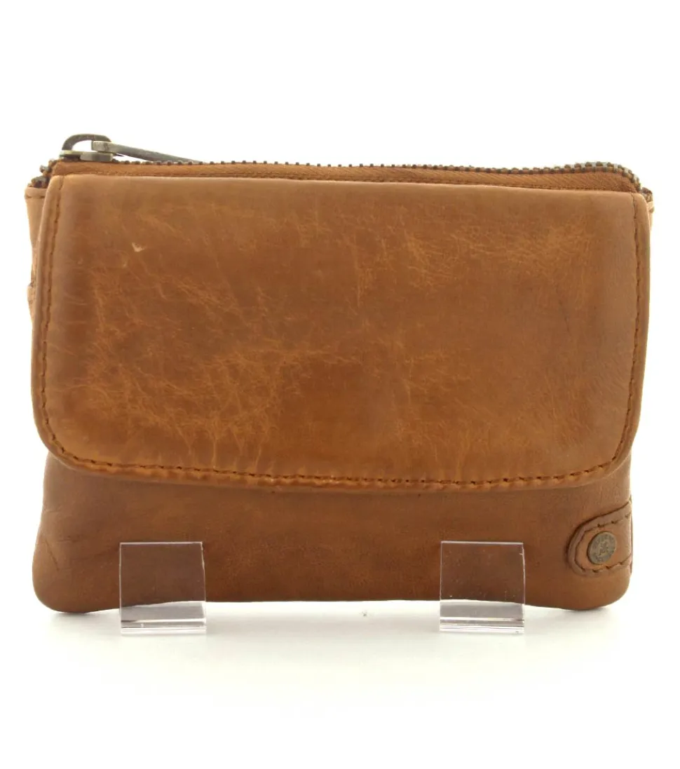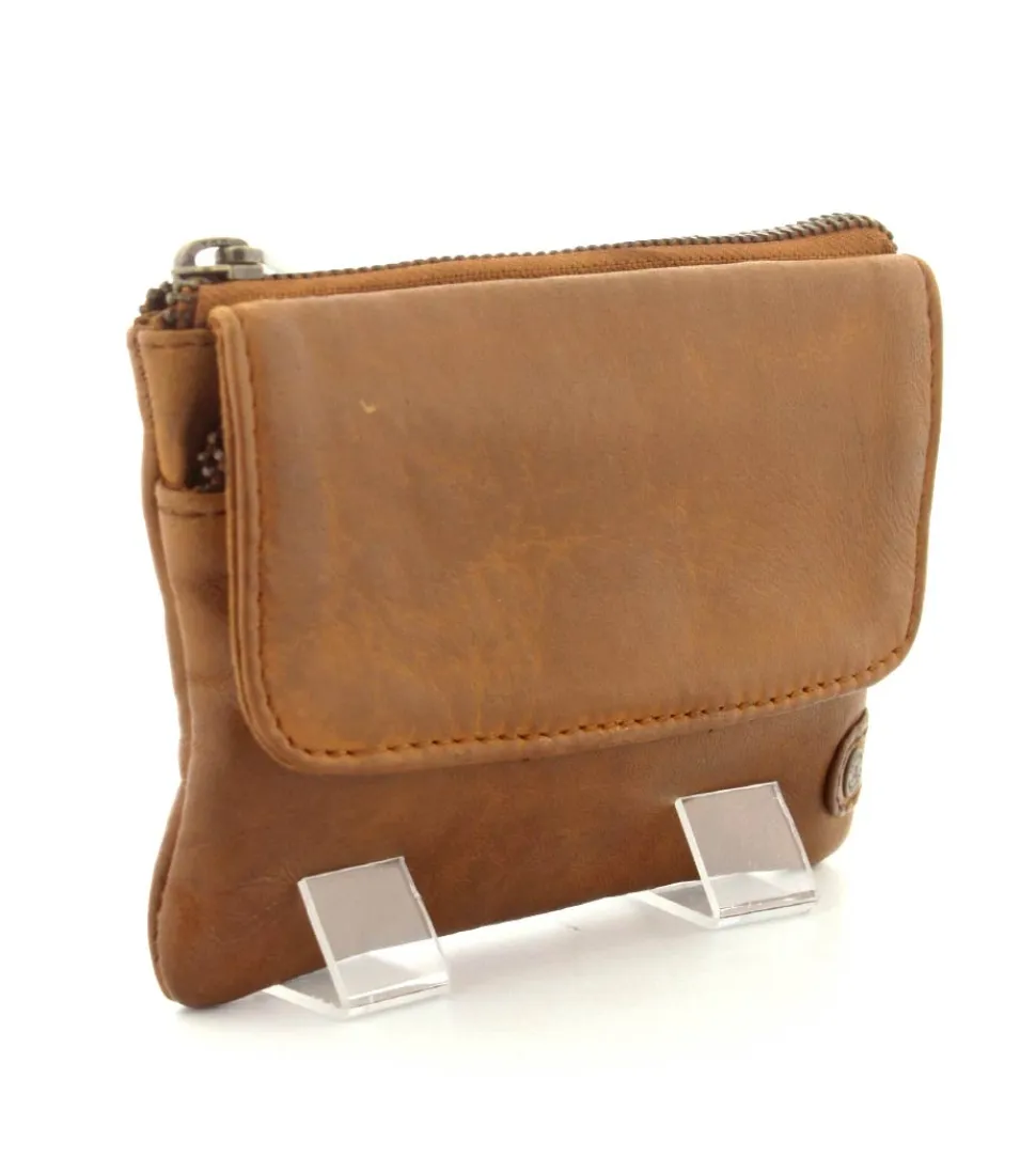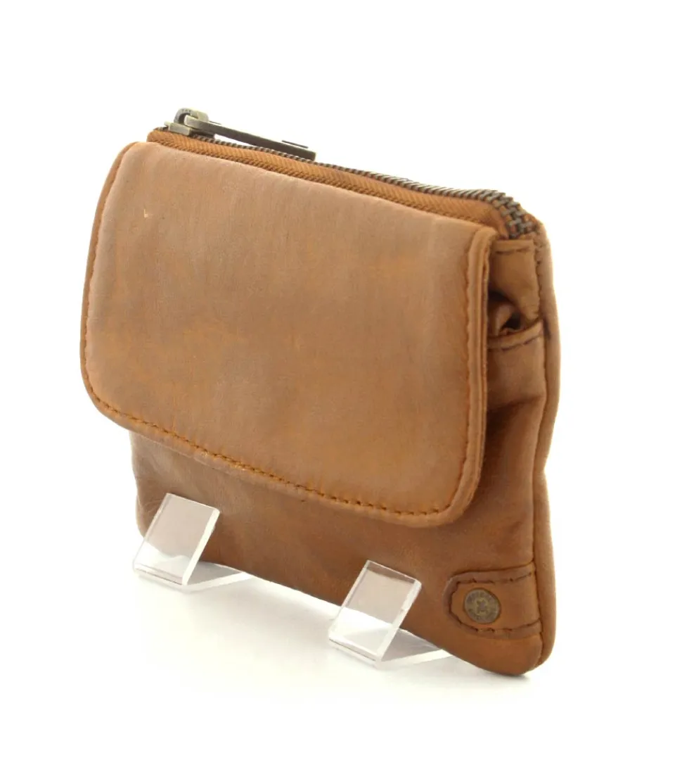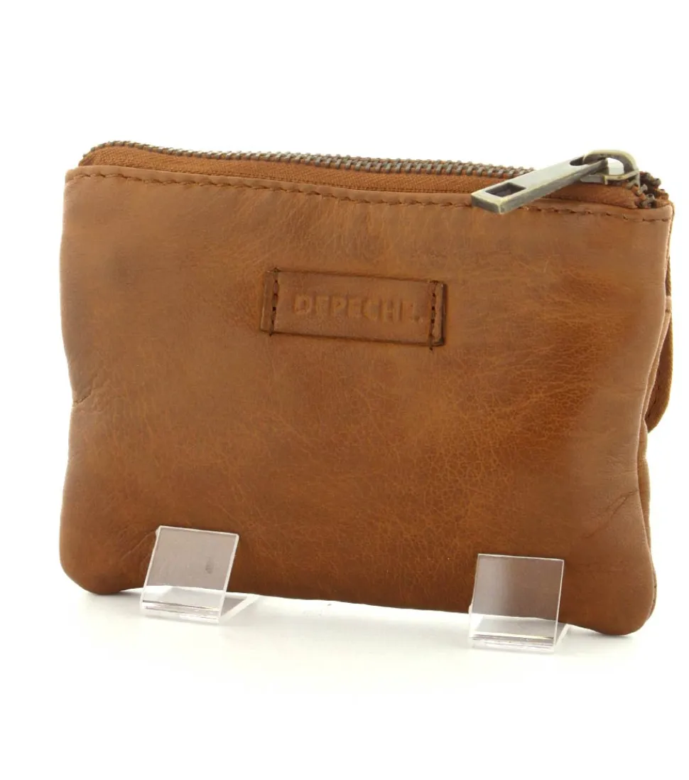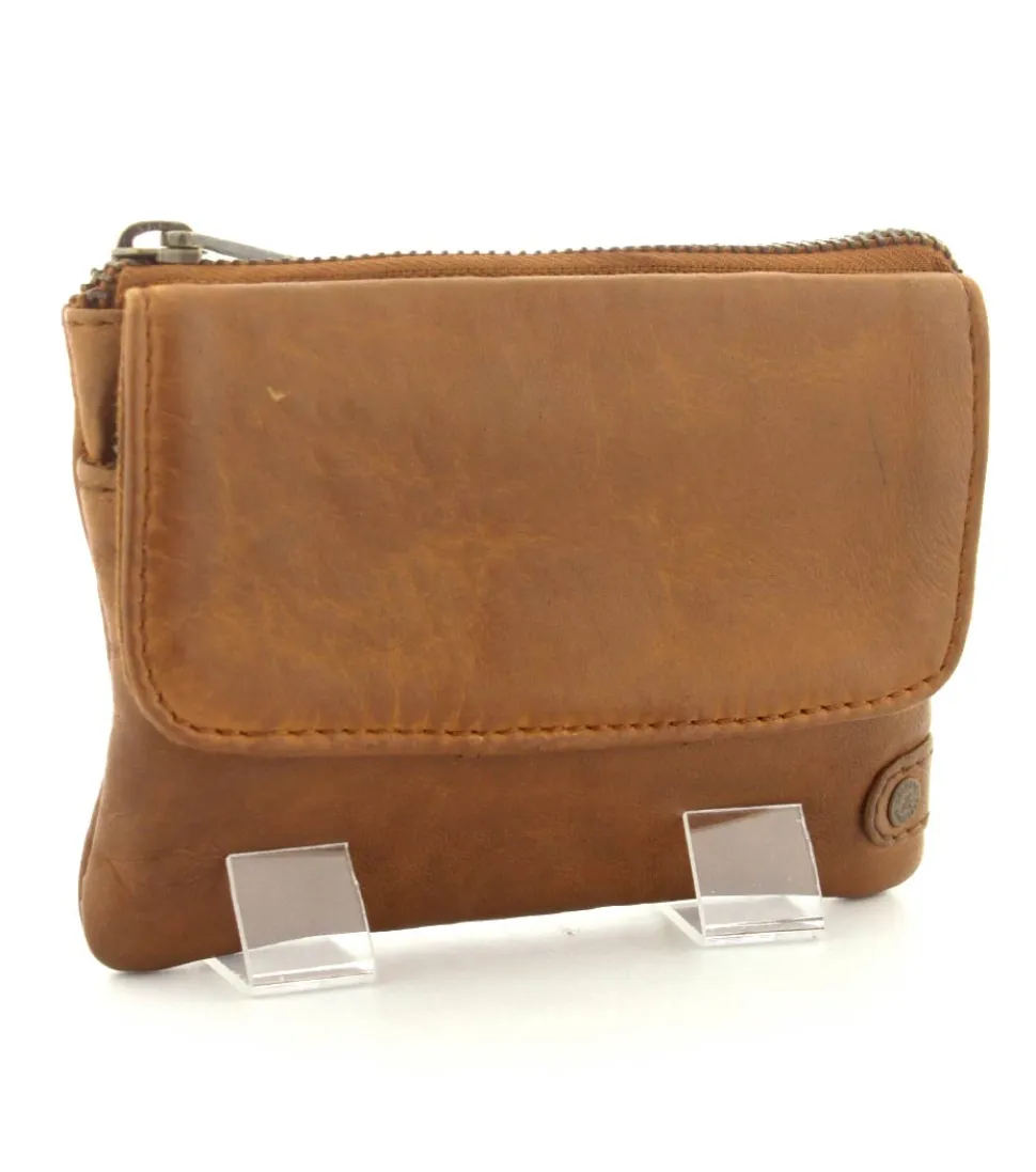 Smart lille skindpung fra Depeche i en flot cognac farve. Pungen har en klap på den ene side, hvor der indenunder er en lynlåslomme til mønter. På den anden side er der en stor lynlåslomme med små rum til kreditkort indeni. Smart lige at have med i tasken eller lommen.