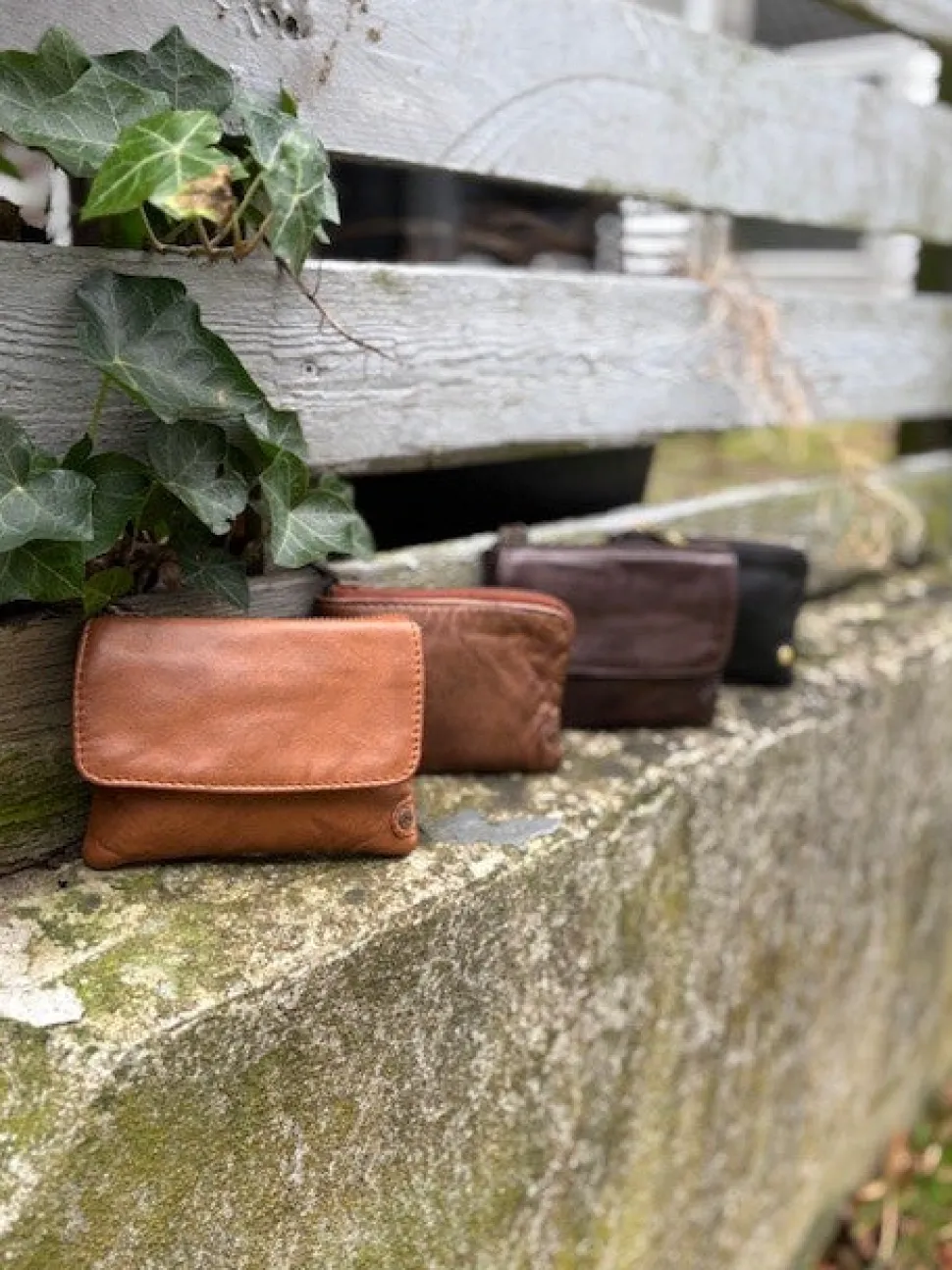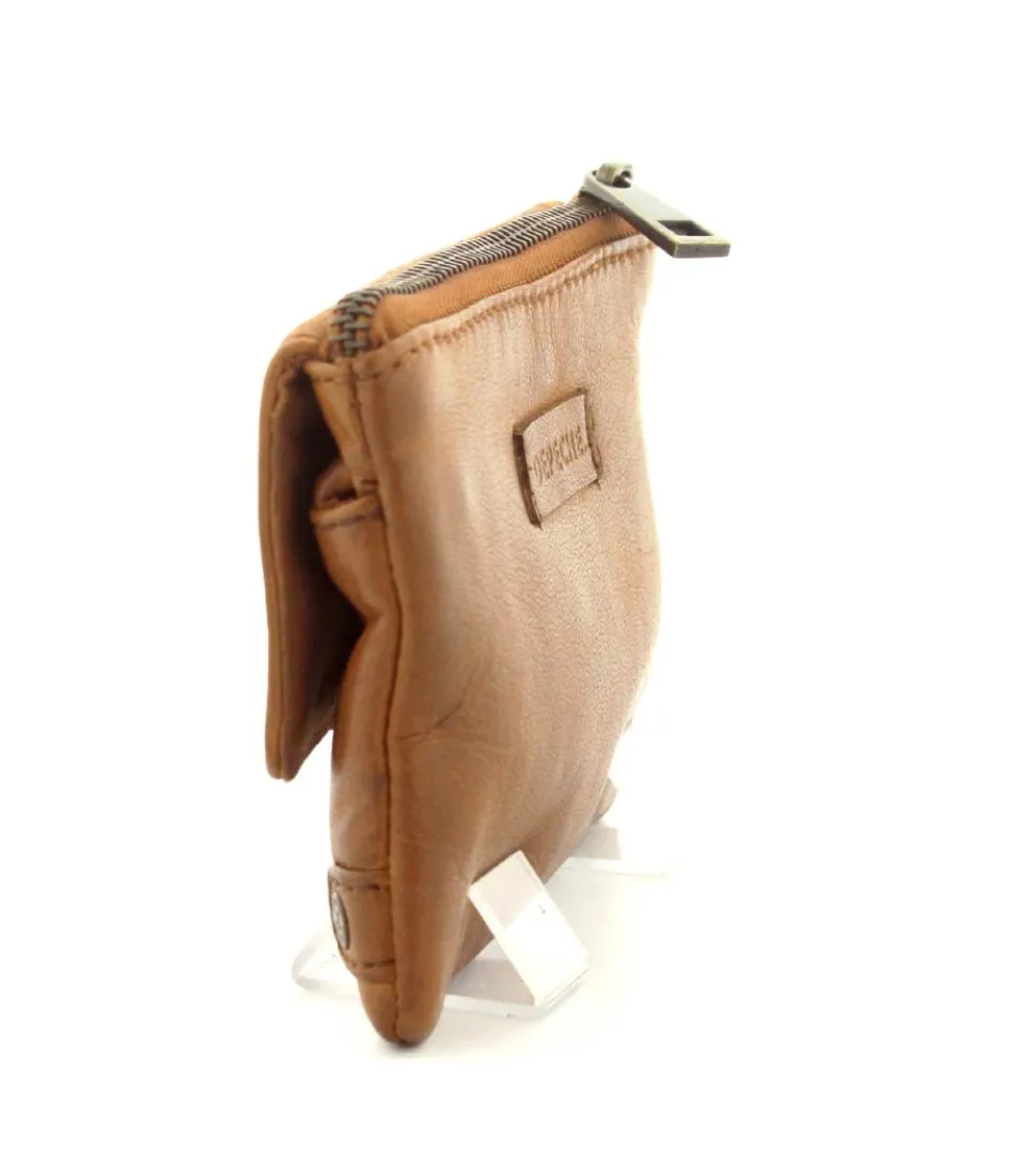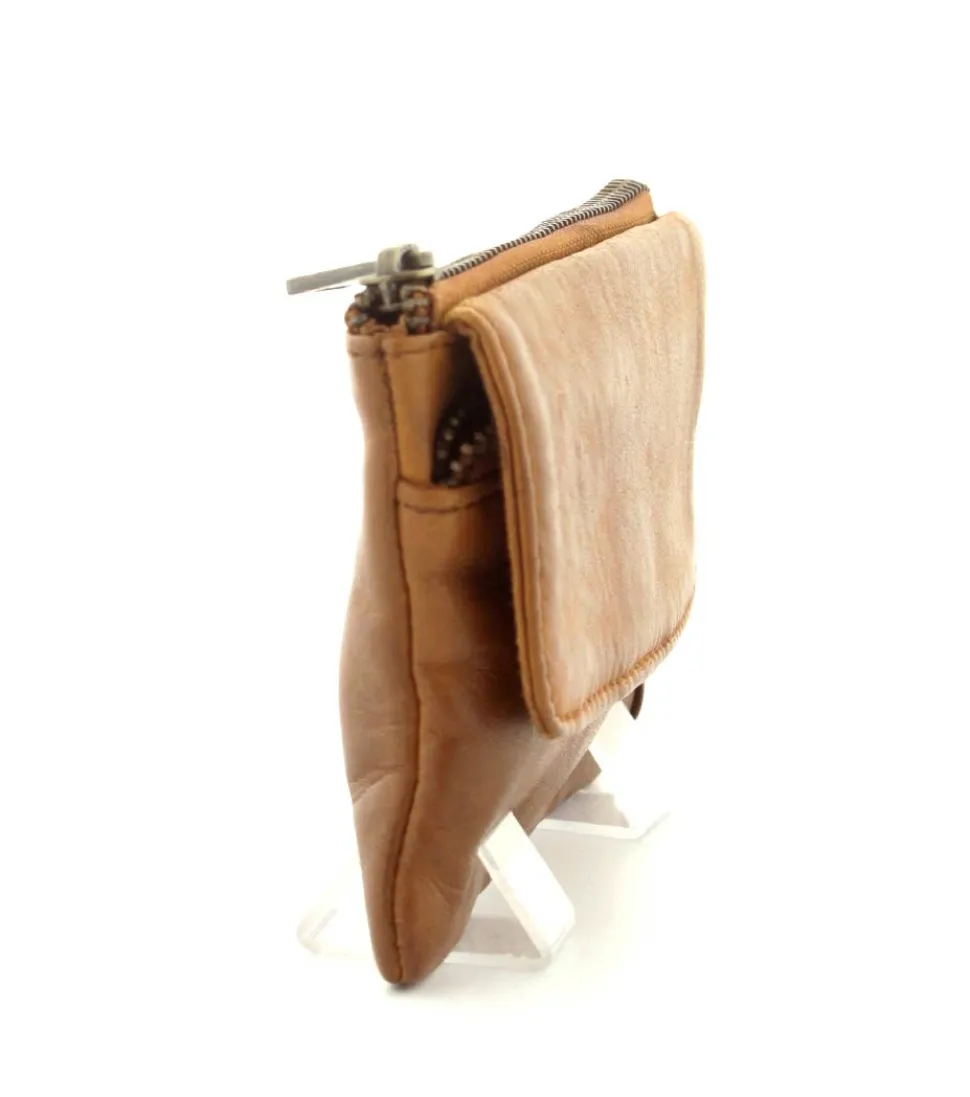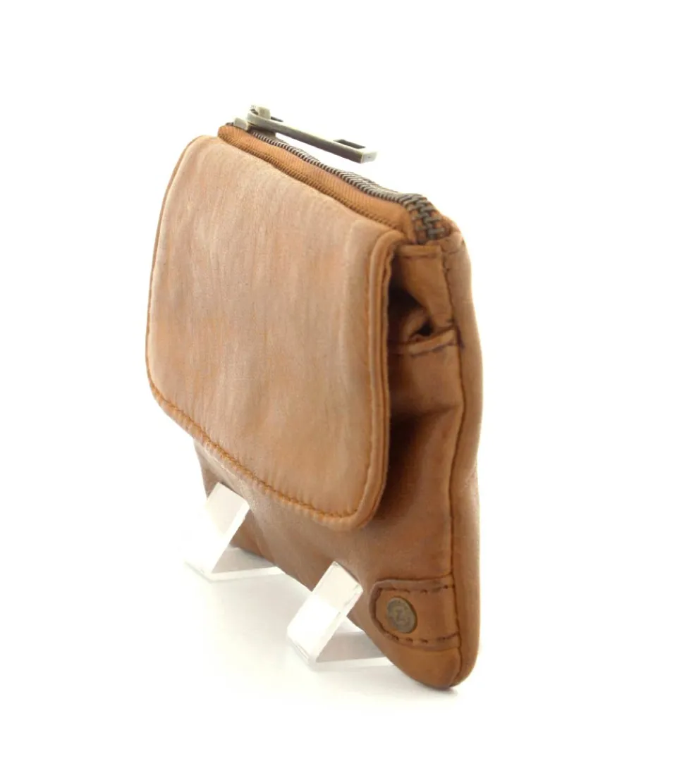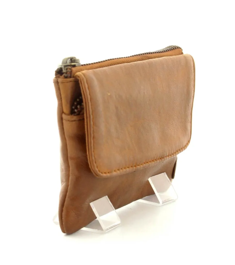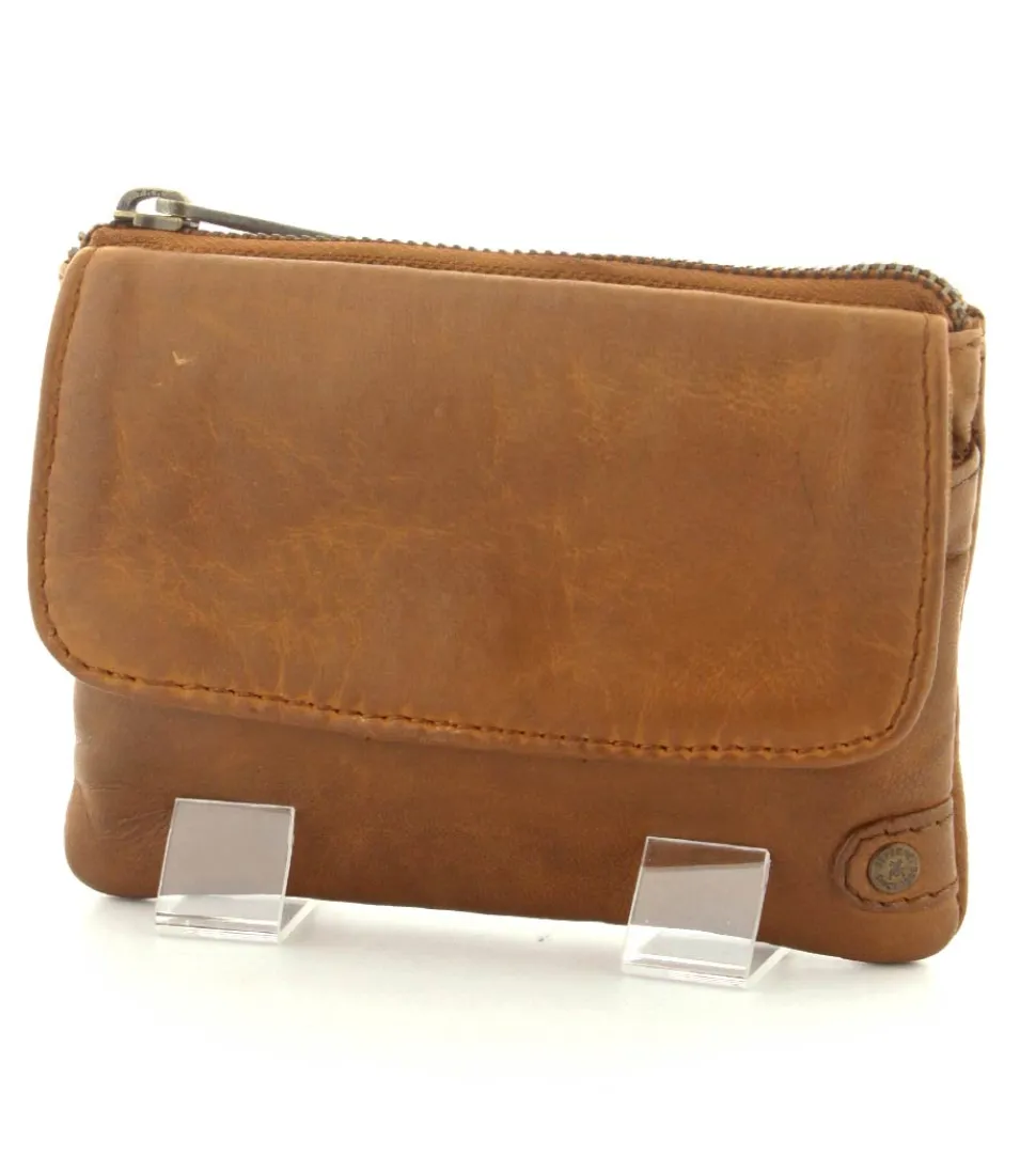 Smart lille skindpung fra Depeche i en flot cognac farve. Pungen har en klap på den ene side, hvor der indenunder er en lynlåslomme til mønter. På den anden side er der en stor lynlåslomme med små rum til kreditkort indeni. Smart lige at have med i tasken eller lommen.