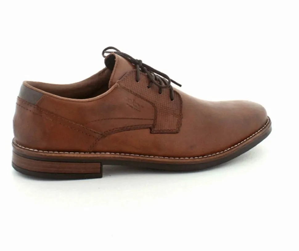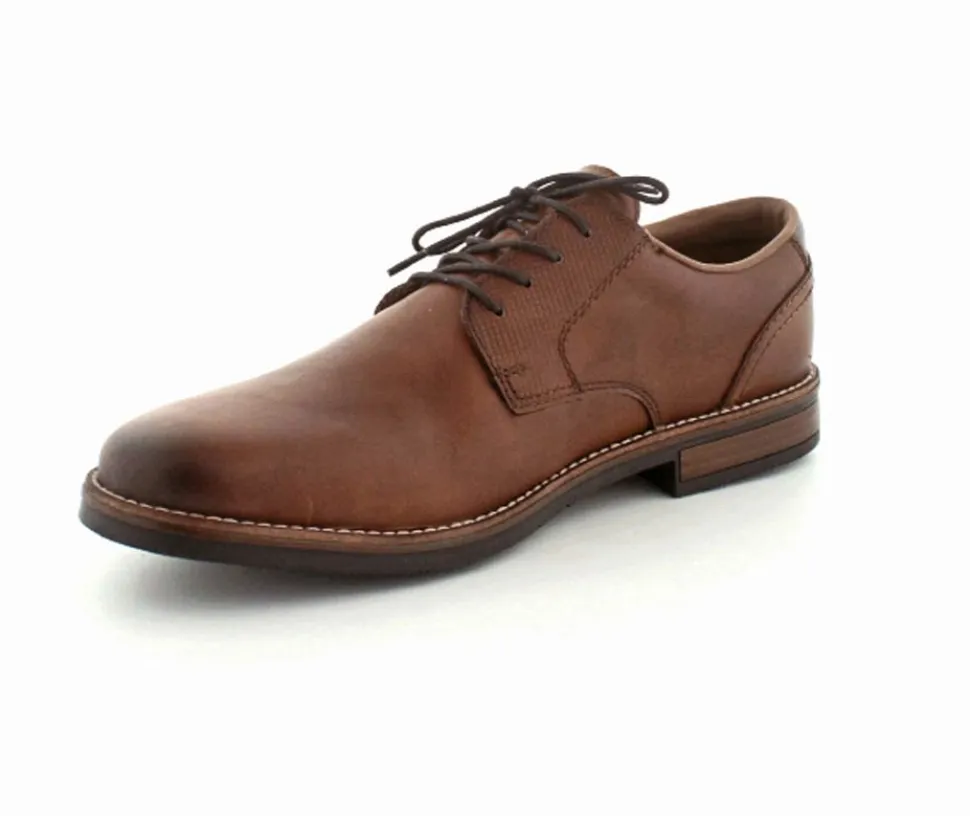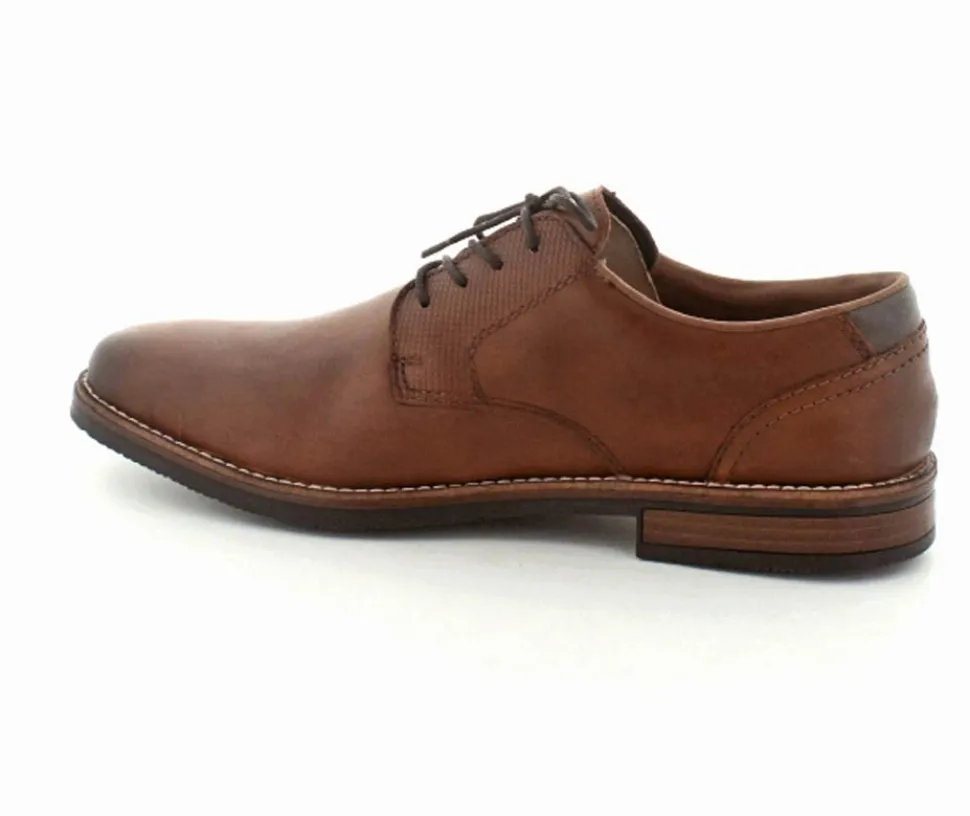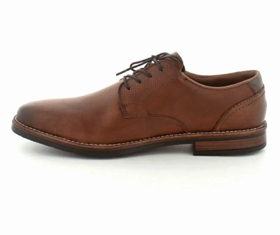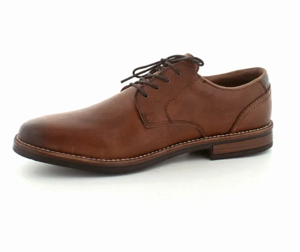 Flot og klassisk model fra Rieker i cognacfarvet skind. Skoen er en snøresko med antistress såler indeni og gummisåler under hele bunden. Blød og behagelig at gå i på job eller til fest.