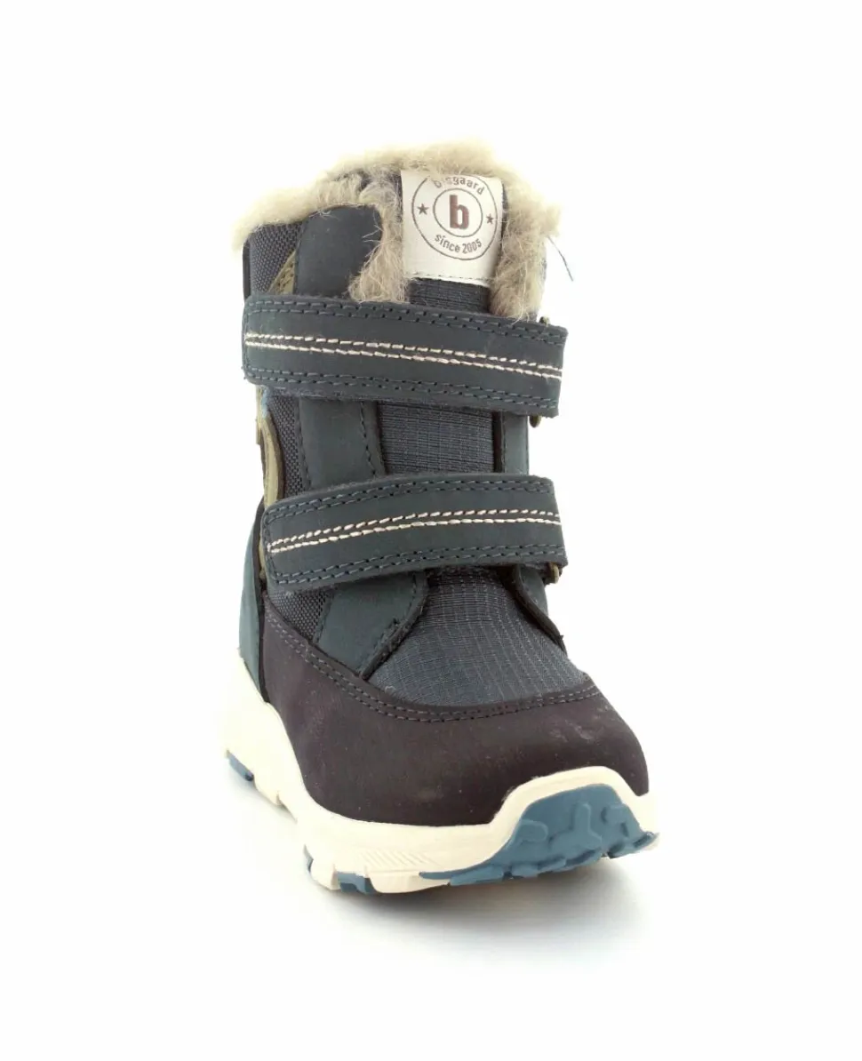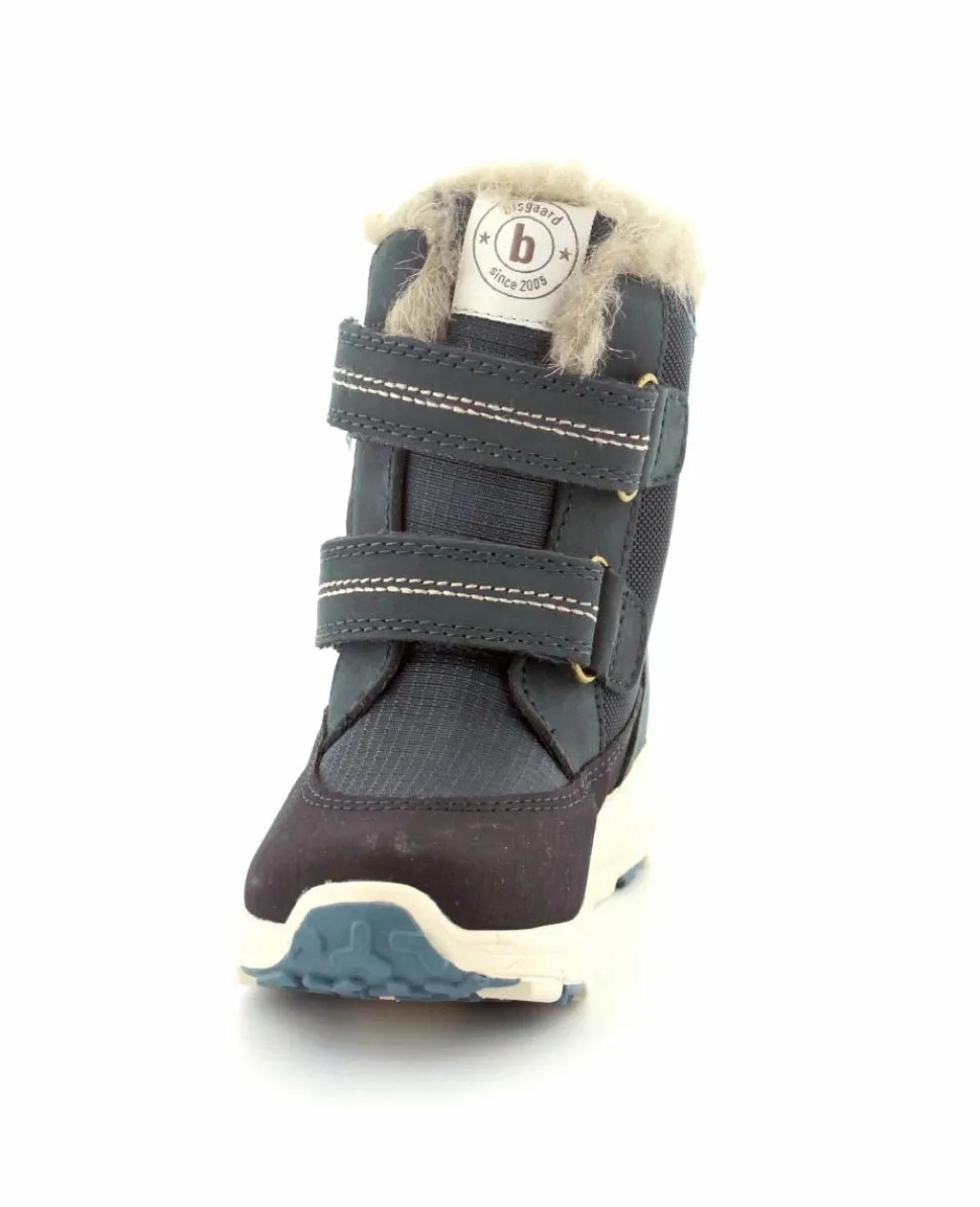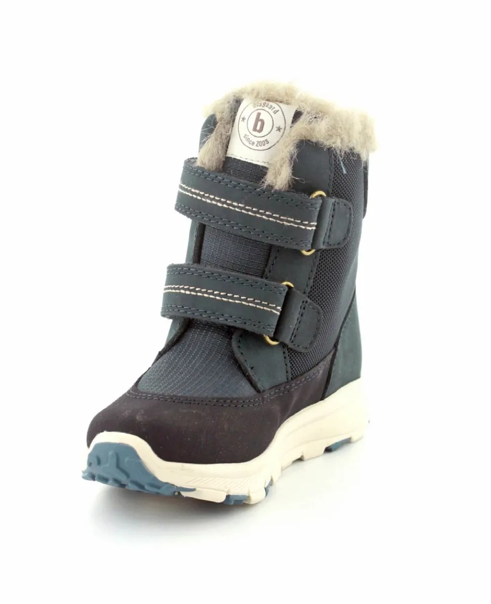 Skønne og lette vinterstøvler fra Bisgaard model Spencer i en flot blå farve. Støvlen er nem at komme i med to regulerbare velcroremme. Varmt foer indeni og pelskant i toppen. Der er aftagelige uldsåler indeni. Støvlen er med texmembran, så den også er vandtæt.