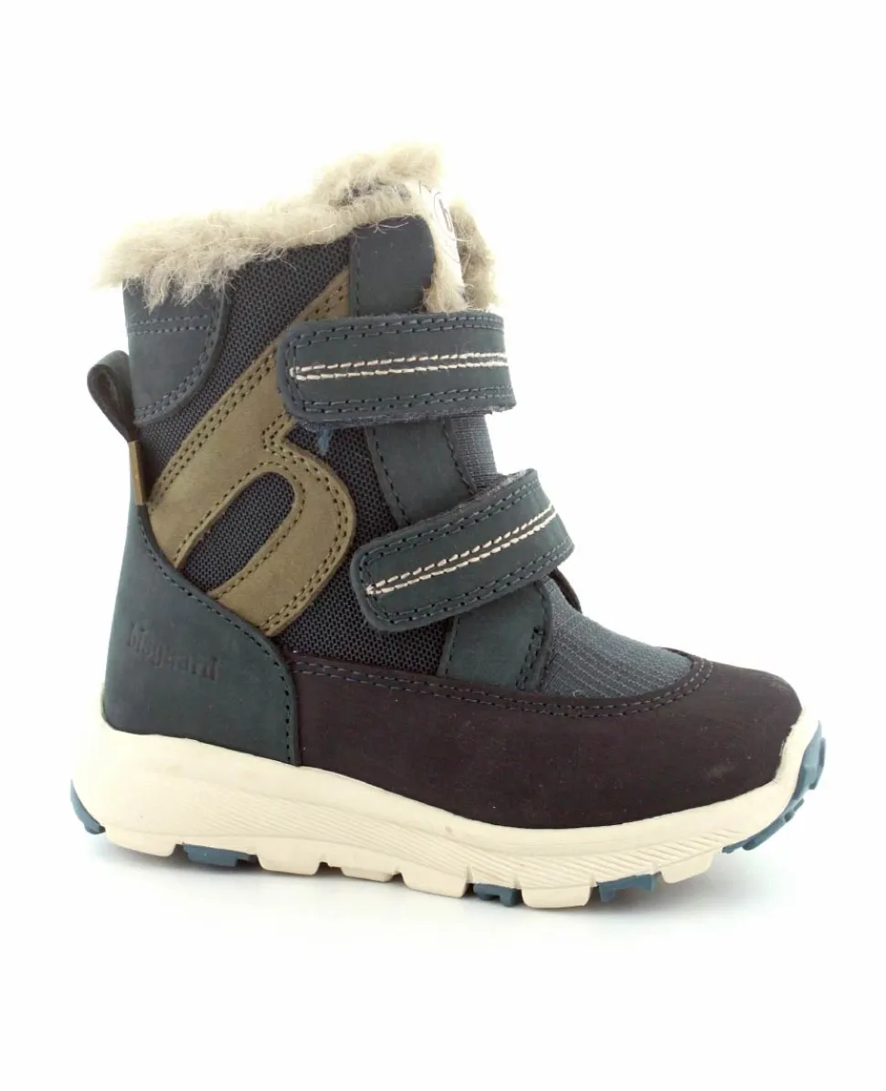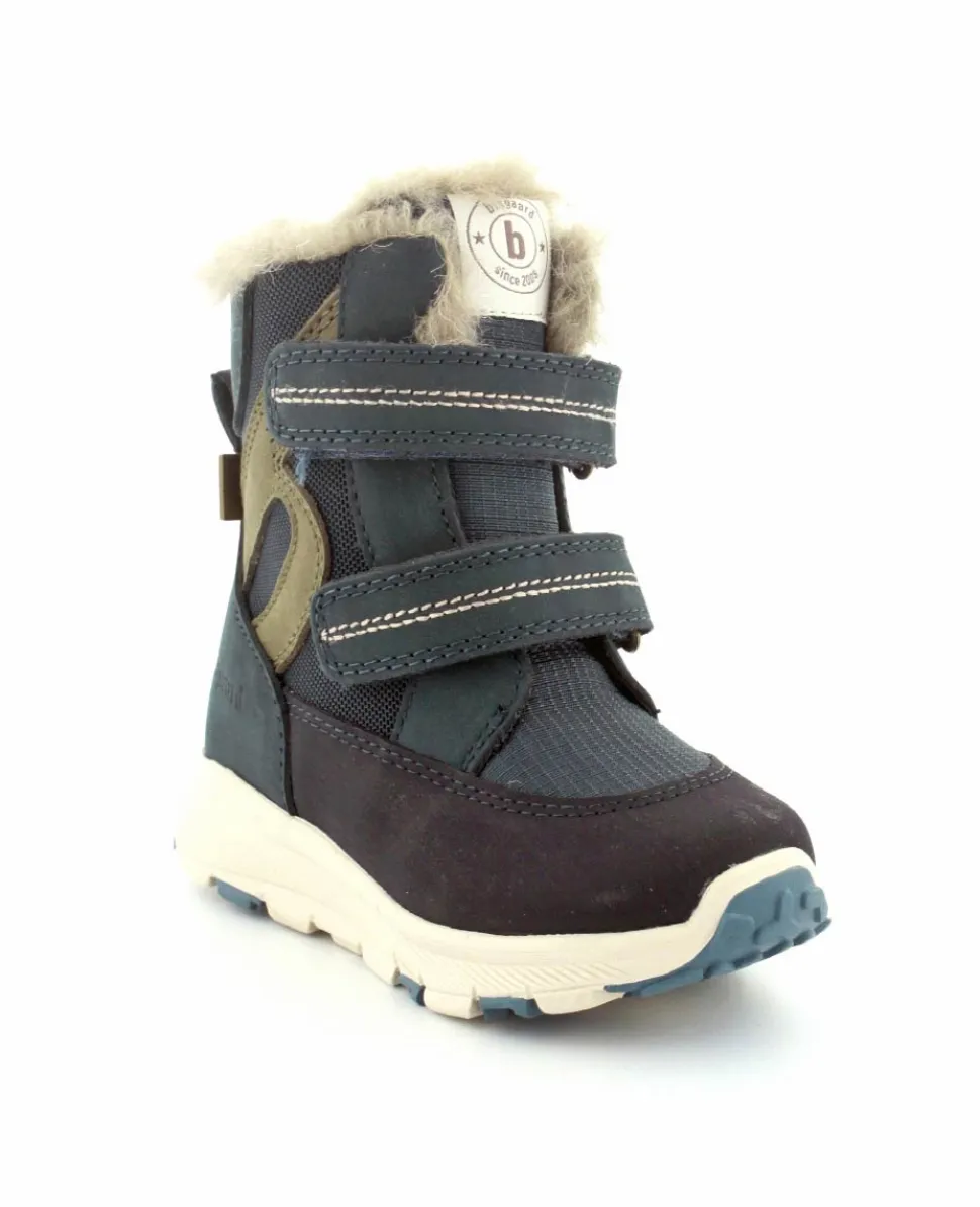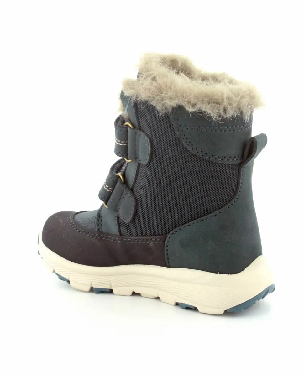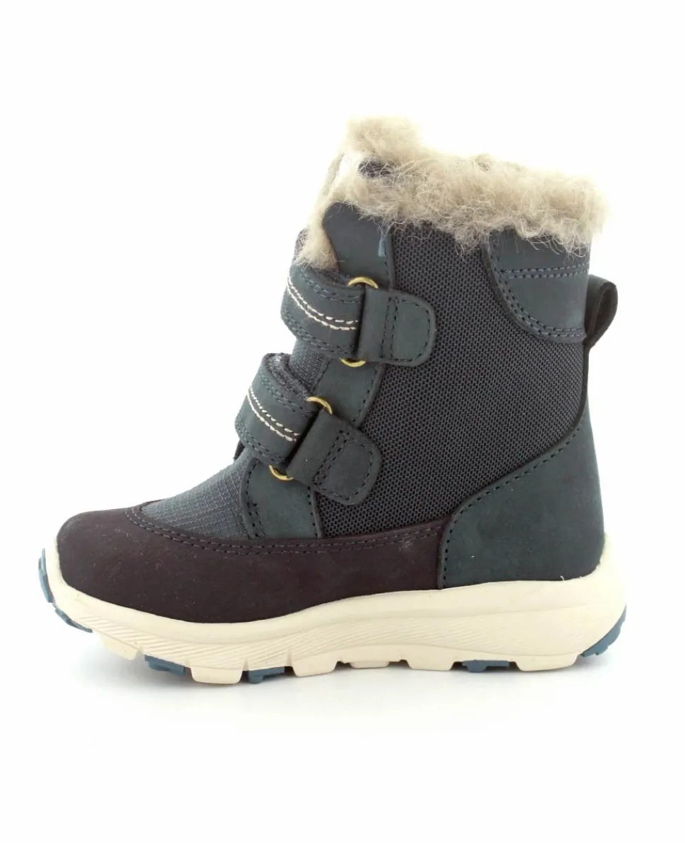 Skønne og lette vinterstøvler fra Bisgaard model Spencer i en flot blå farve. Støvlen er nem at komme i med to regulerbare velcroremme. Varmt foer indeni og pelskant i toppen. Der er aftagelige uldsåler indeni. Støvlen er med texmembran, så den også er vandtæt.