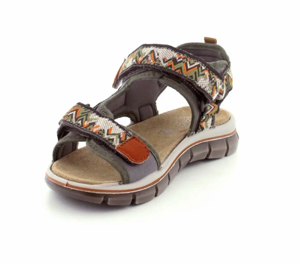 Smart og sporty sandal fra Primigi model Tevez i flotte grønne farver. Sandalen har et godt hold på foden og har to regulerbare velcroremme. Neopren foer og blødt ruskind i sålen. Sålerne er meget lette og stødabaoberende. Sandalen er til den smalle side, så passer bedst til en smal og normal fod. Husk den er meget lille i størrelsen.