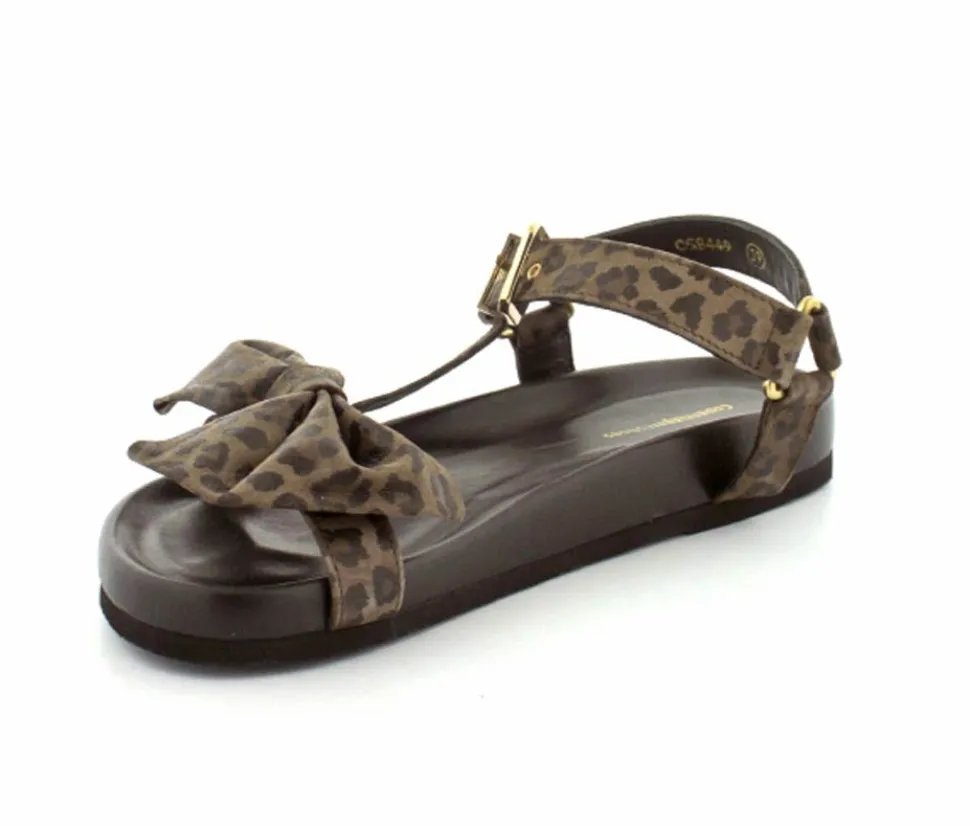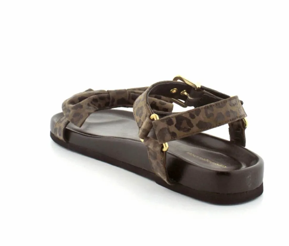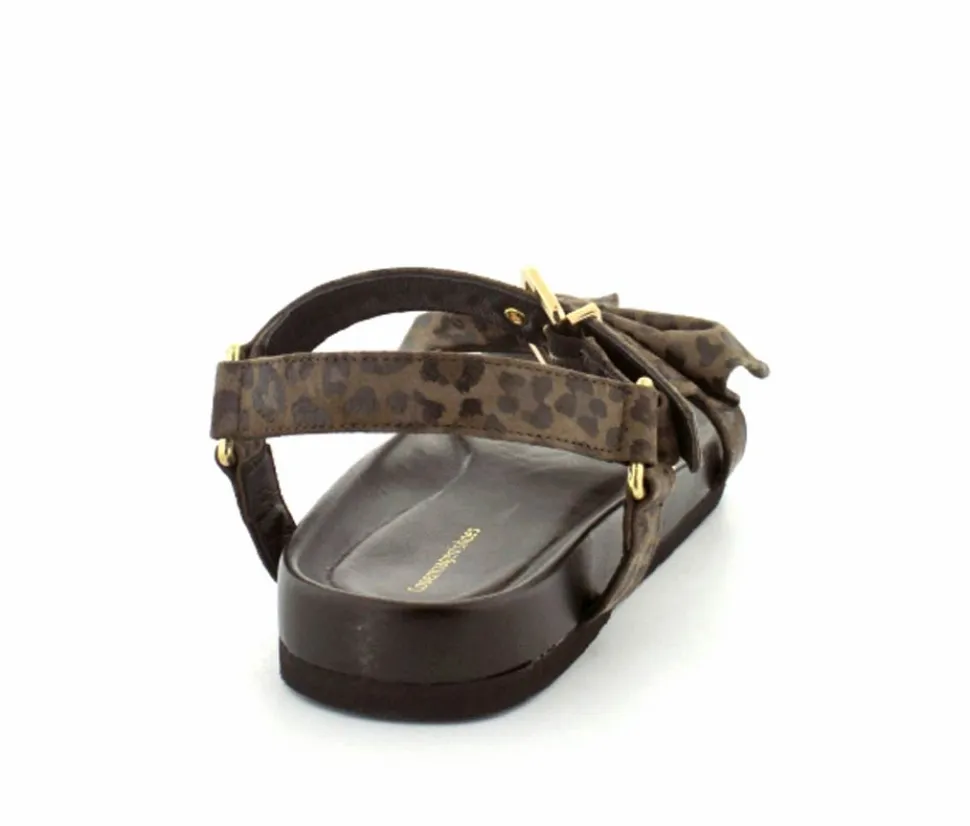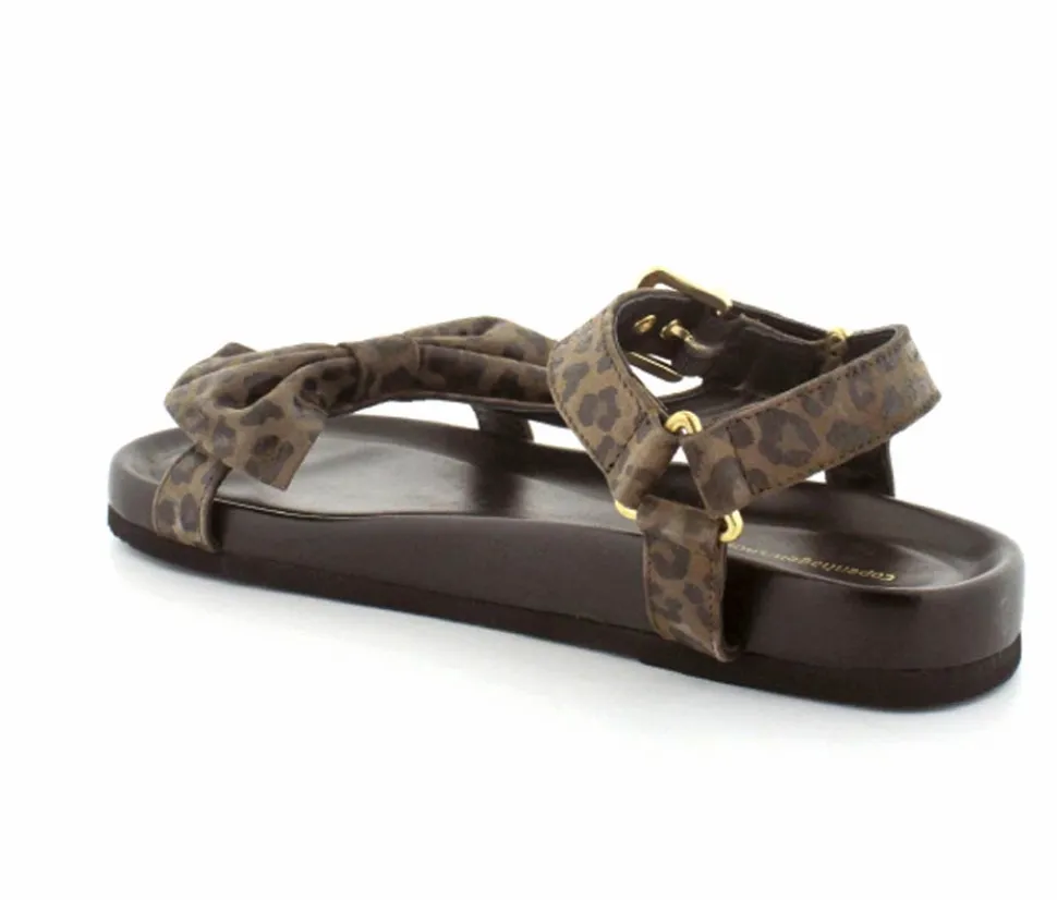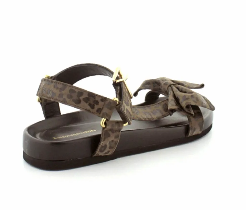 Super fin sandal fra Copenhagen shoes model Summer Breeze i ruskind med leoprint. Bløde og lette såler med en regulerbar rem. Lidt til den lille side.