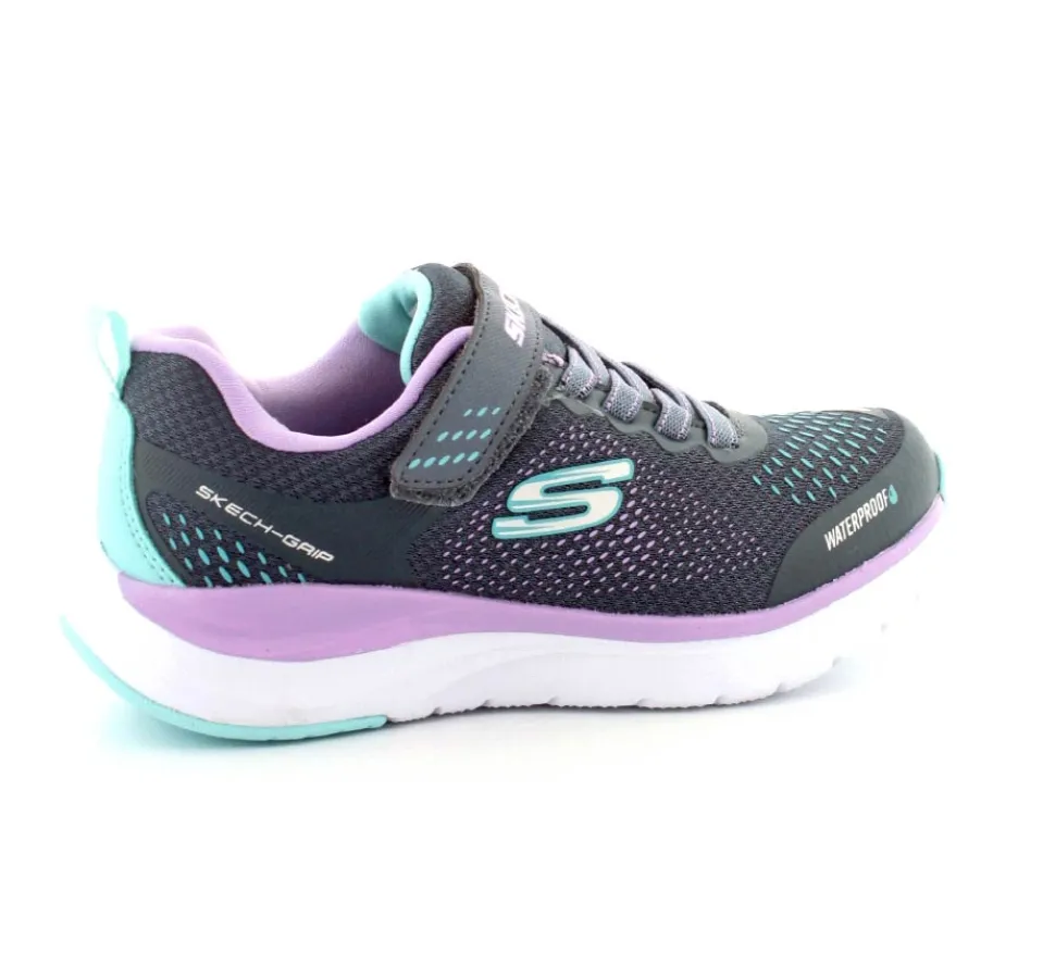 Super smarte vandtætte sko fra Skechers model Ultra Groove i flotte dusede farver. Der er elastiksnøre og velcrorem, så den er nem at komme i og stramme til. Lette og stødabsoberende såler under hele bunden. Den er lidt stor i størrelsen.