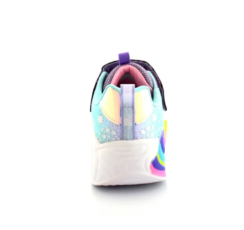 Super fin blinkesko fra Skechers med enhjørning på. Skoen er med elastiksnøre og velcro rem. Den blinker ved bevægelse. Husk den er stor i størrelsen.