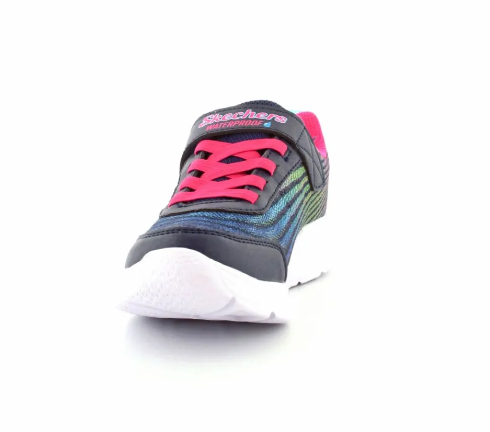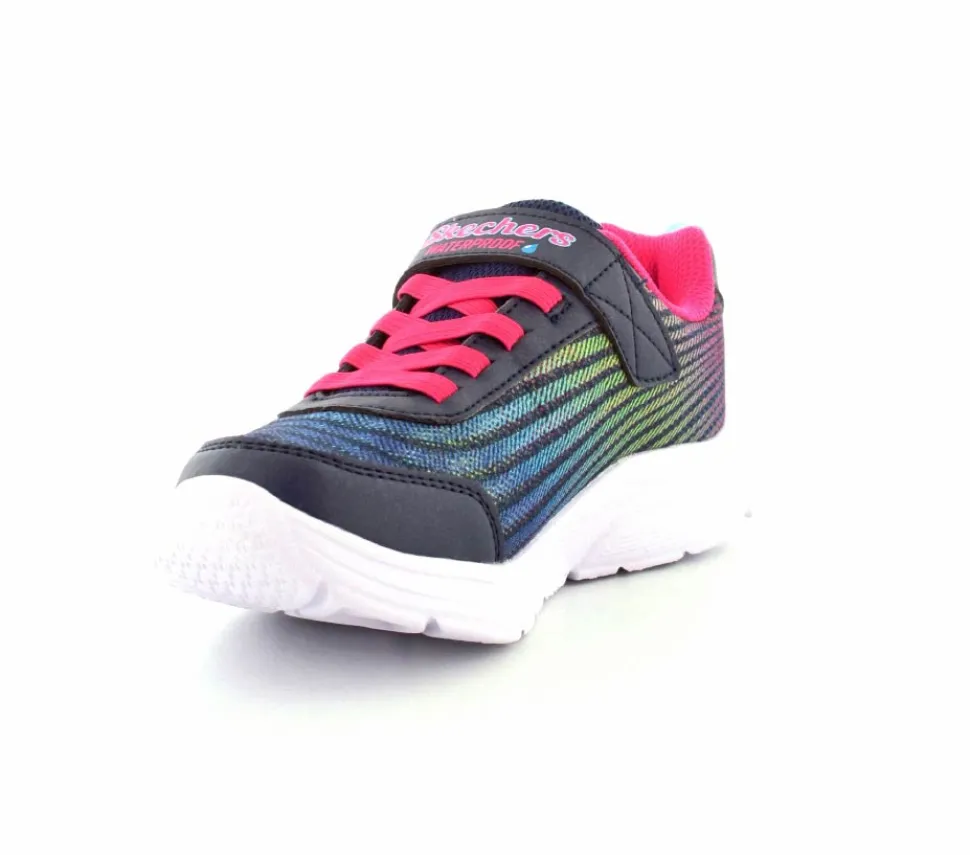 Smarte vandtætte sneakers fra Skechers model Wavy Lites i flotte farver. Skoen er med elastiksnøre og velcrorem. Meget let sko med stødabsoberende såler. God rummelig og lidt stor i størrelsen.