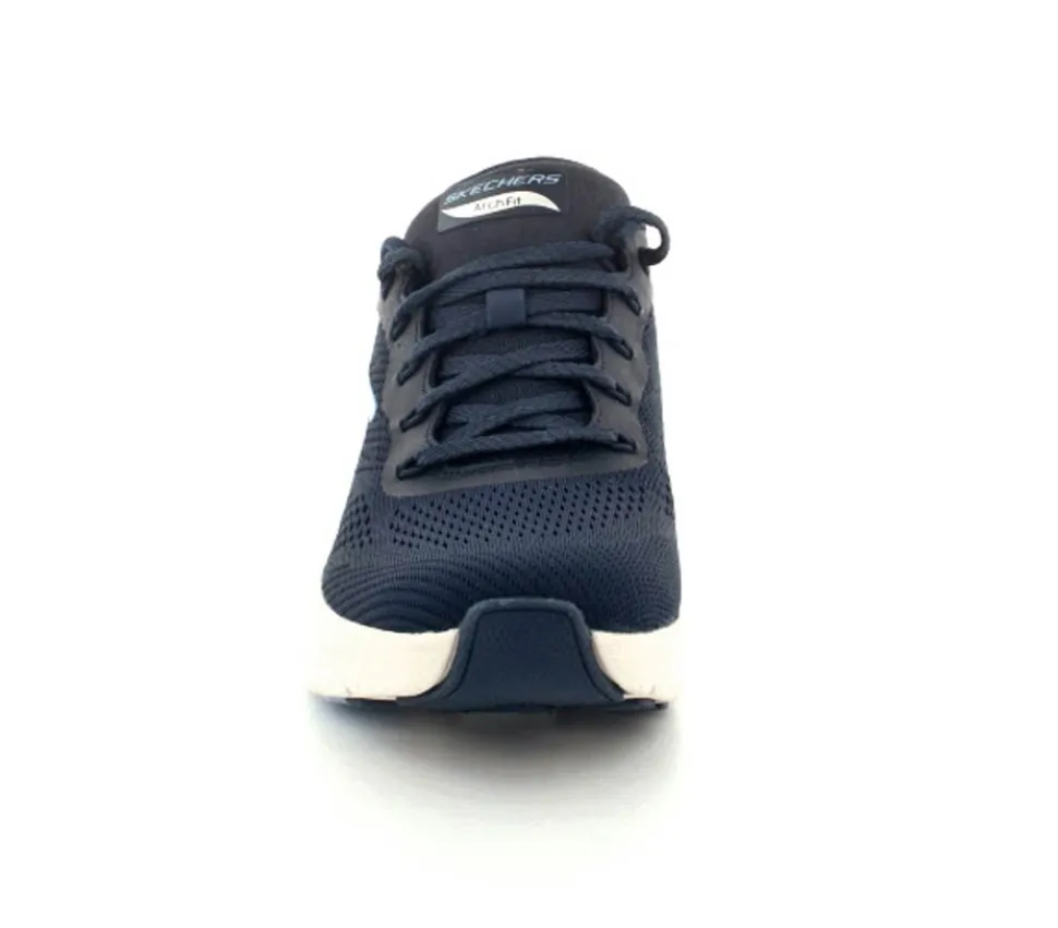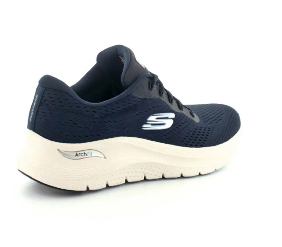 Skønne sneakers fra Skechers model Arch Fit Big i en flot mørkeblå. Skoen er med ekstra svangstøtte og aftagelige indlægssåler. Den har et super godt hold på foden og kan fint bruges til hverdag og til træning. Den er til den store side af størrelsen. Lette og stødabsoberende såler under hele bunden.
