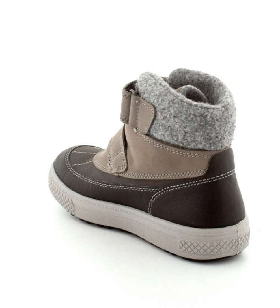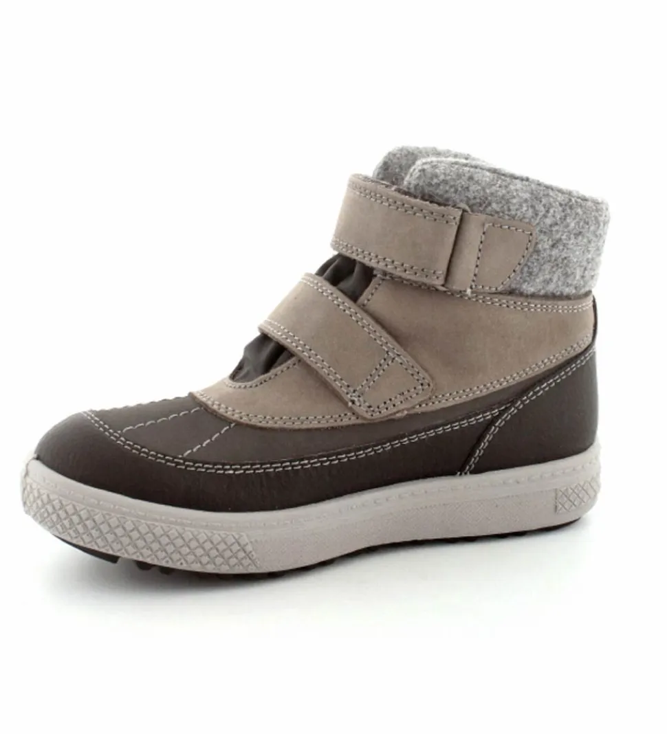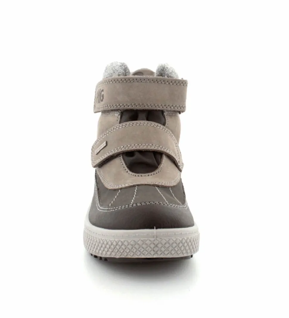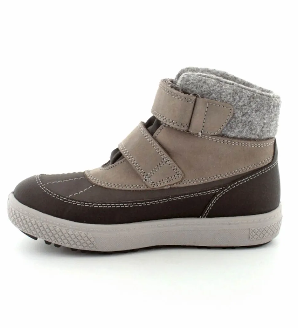 Skønne og smarte vinterstøvler til de mindste fra Primigi. Støvlen er lavet i grå nubuck og sort imiteret skind med to regulerbare velcroremme. Nem at give på og nem at tilpasse foden. Der er god fast hælkappe, så den støtter barnets fod godt. Støvlen fra Primigi er varmtfoeret og har Gore-Tex membran, så den er åndbar og vandtæt. Meget lette, fleksible og stødabsoberende såler under hele bunden. Støvlen rummer godt og er lidt til den store side.