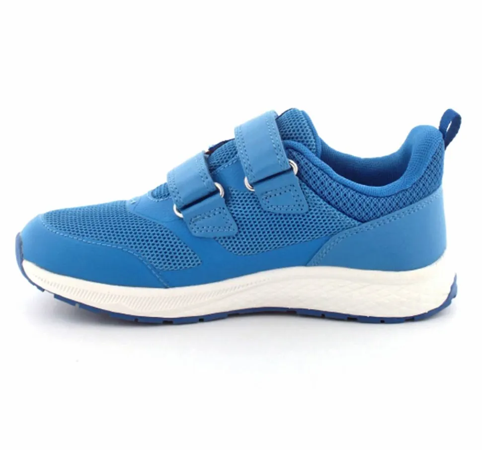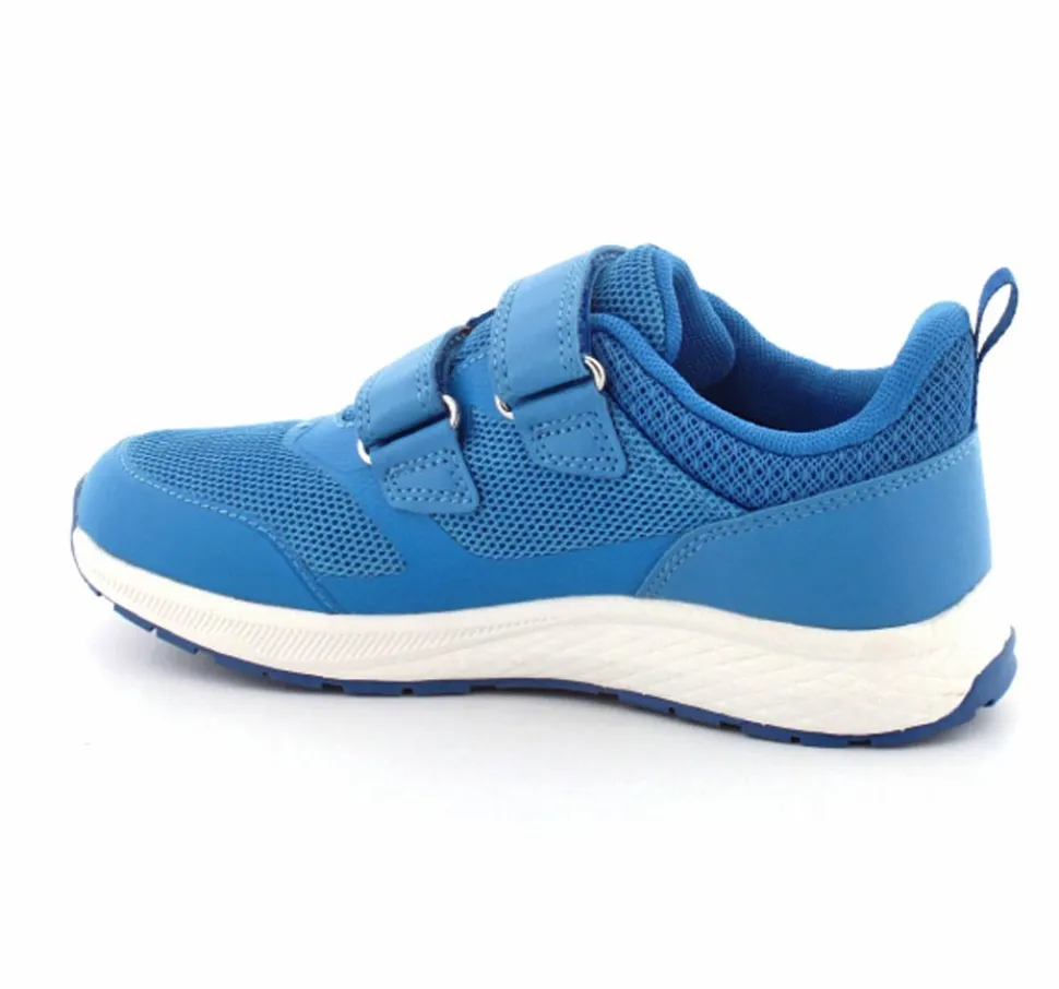 Super smart sneakers fra Viking model Bouncy Waterproof i blå. Skoen er med to regulerbare velcroremme og god fast hælkappe. Der er tex membran i skoen så den er vandtæt. Bløde fleksible gummisåler under hele bunden. Kan vaskes på 30 grader skånevask.