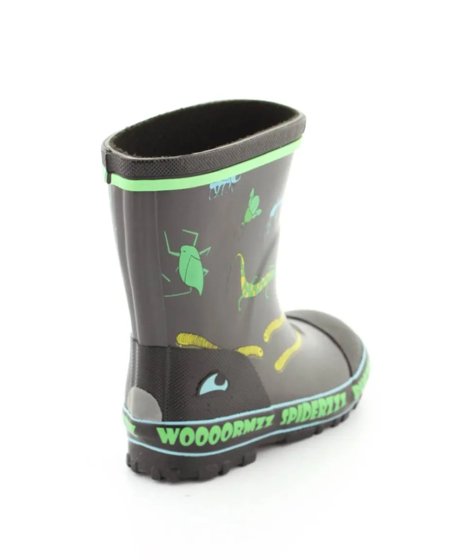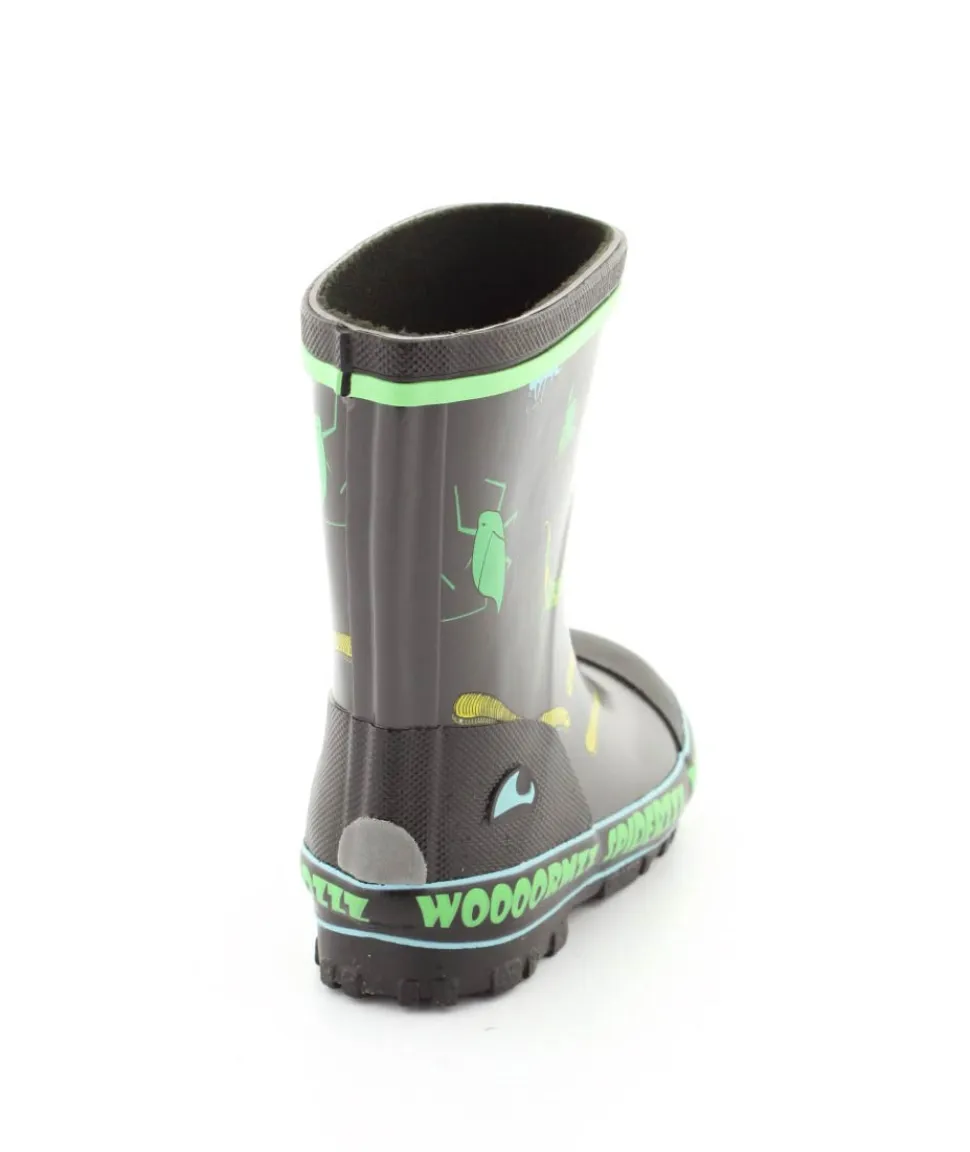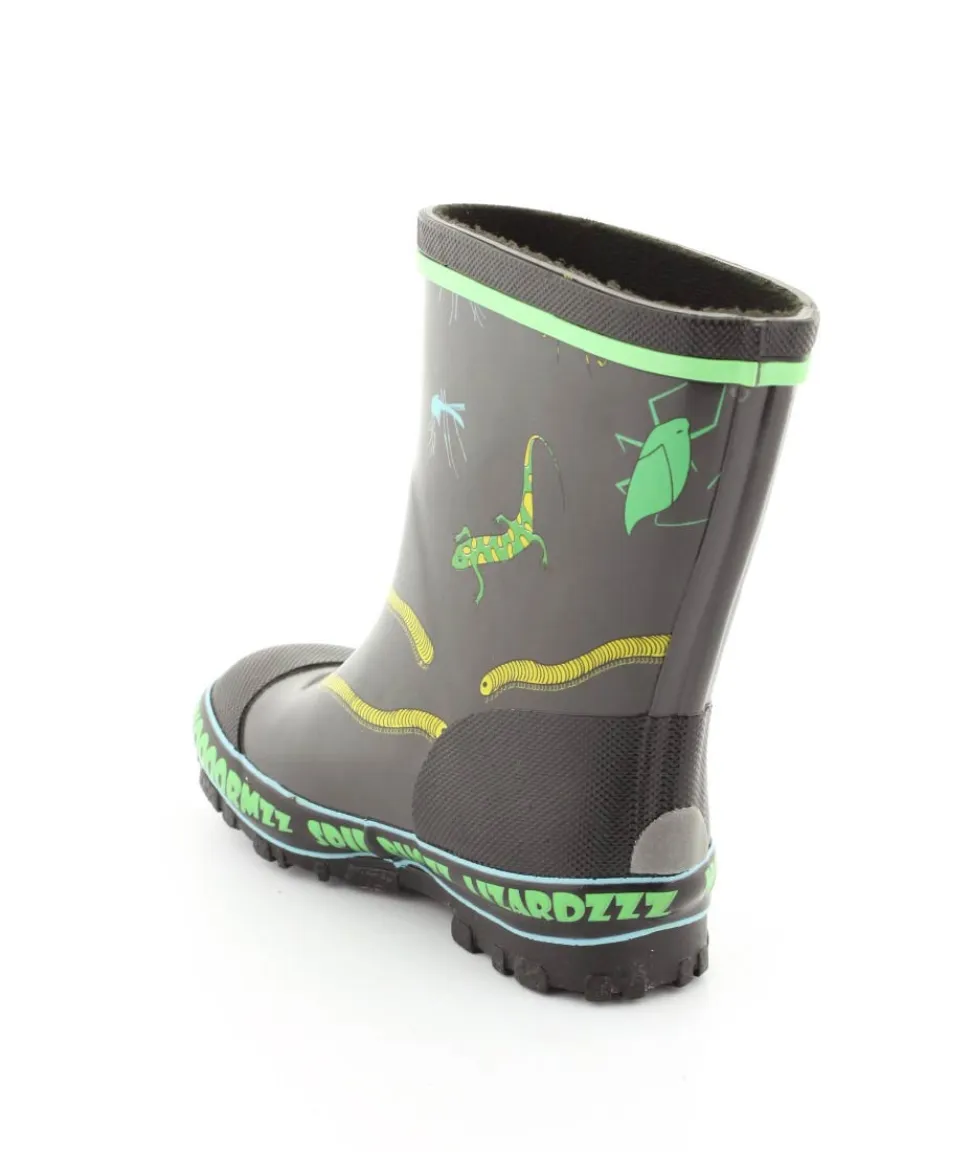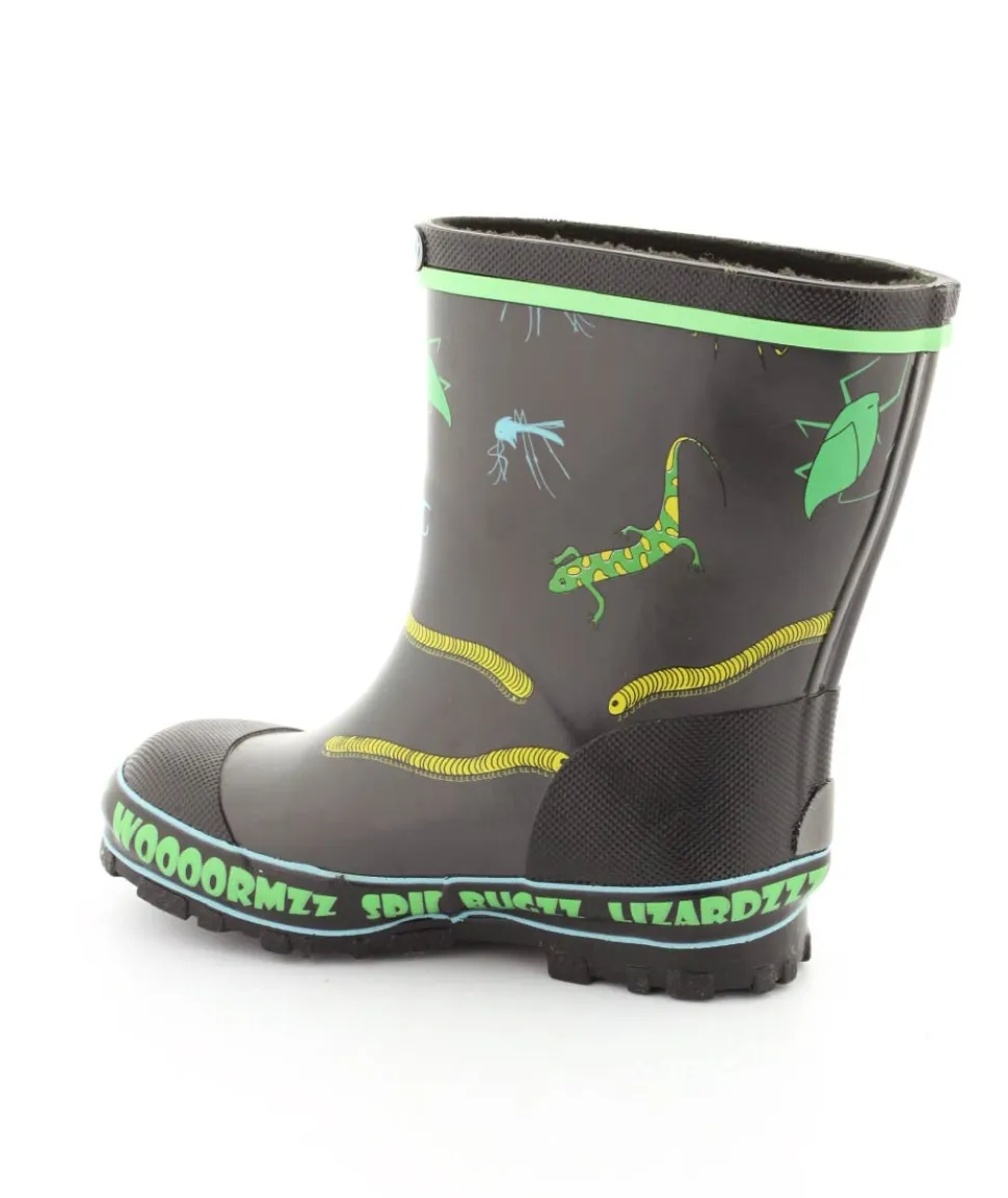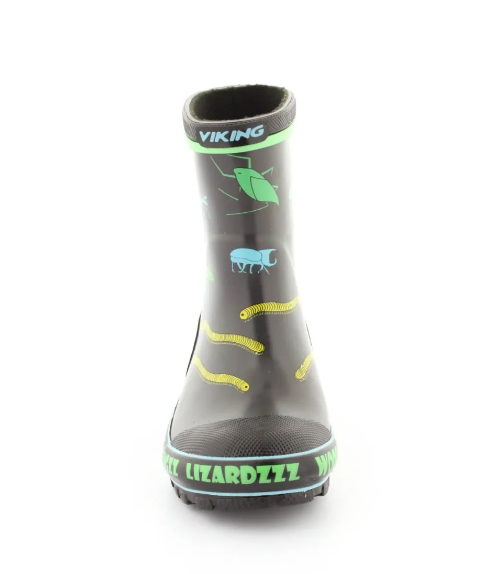 Rigtig fed gummistøvle til drenge fra Viking. Gummistøvlen er grå med motiver af forskellige insekter. Den er lavet i blødt naturgummi og sålerne er meget bløde og fleksible. Gummistøvlen fra Viking har en rigtig god pasform og sidder godt til om barnets fod. Støvlen er hverken for lang til barnet eller for kort.