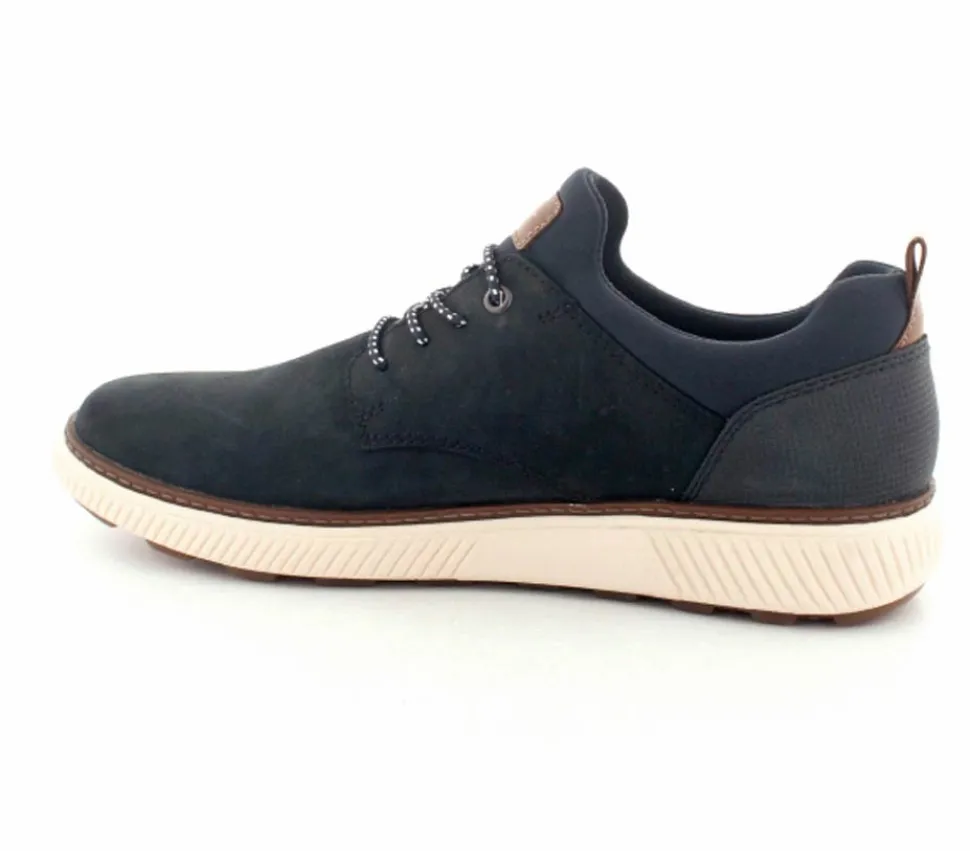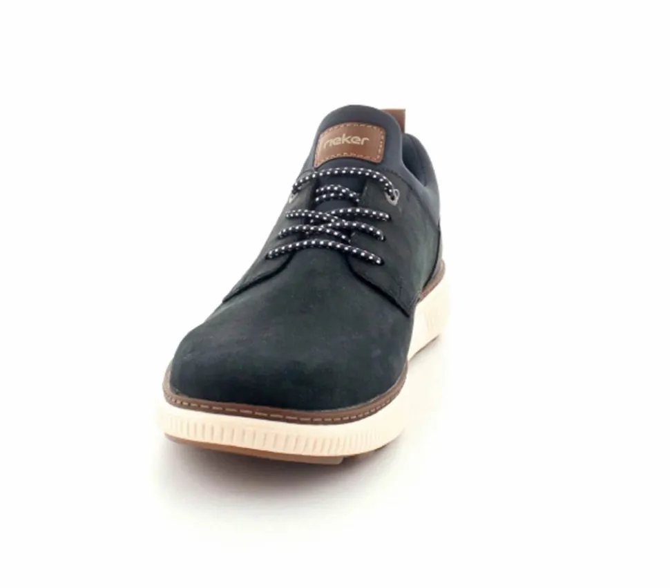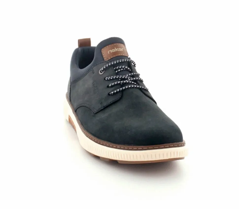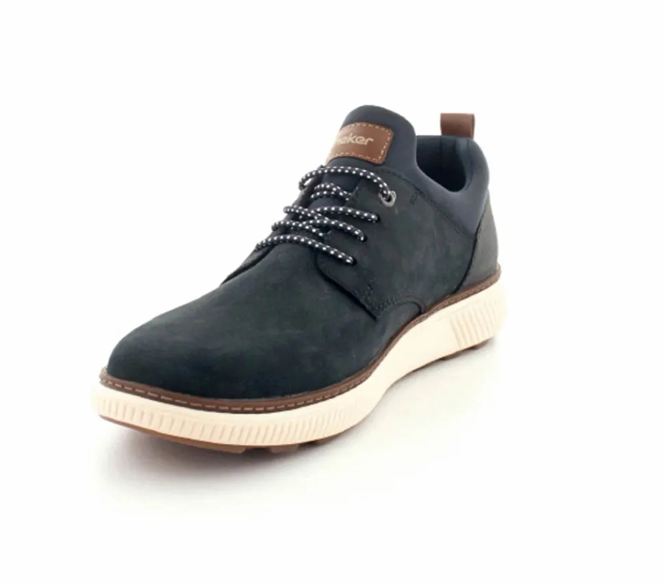 Super smarte sko fra Rieker i mørkeblå nubuck skind. Skoen er lige til at trække på, da der er elastiksnøre i. Lækker blød stødabsoberende indersål og gode solide gummisåler under hele bunden.